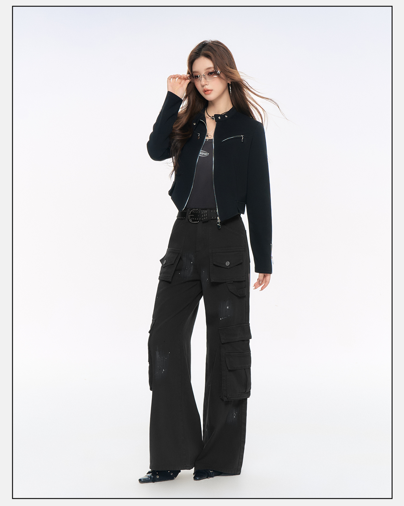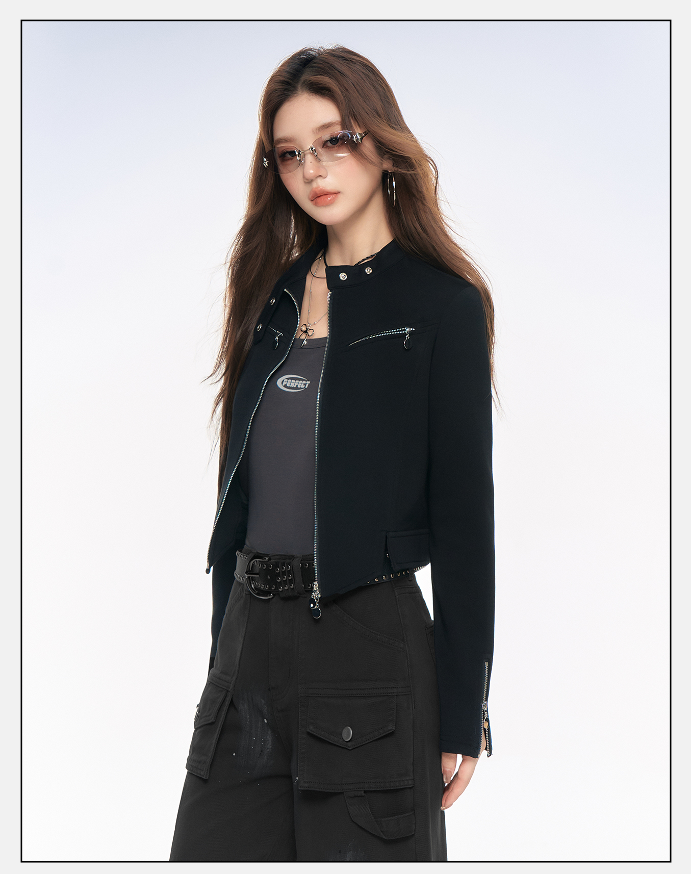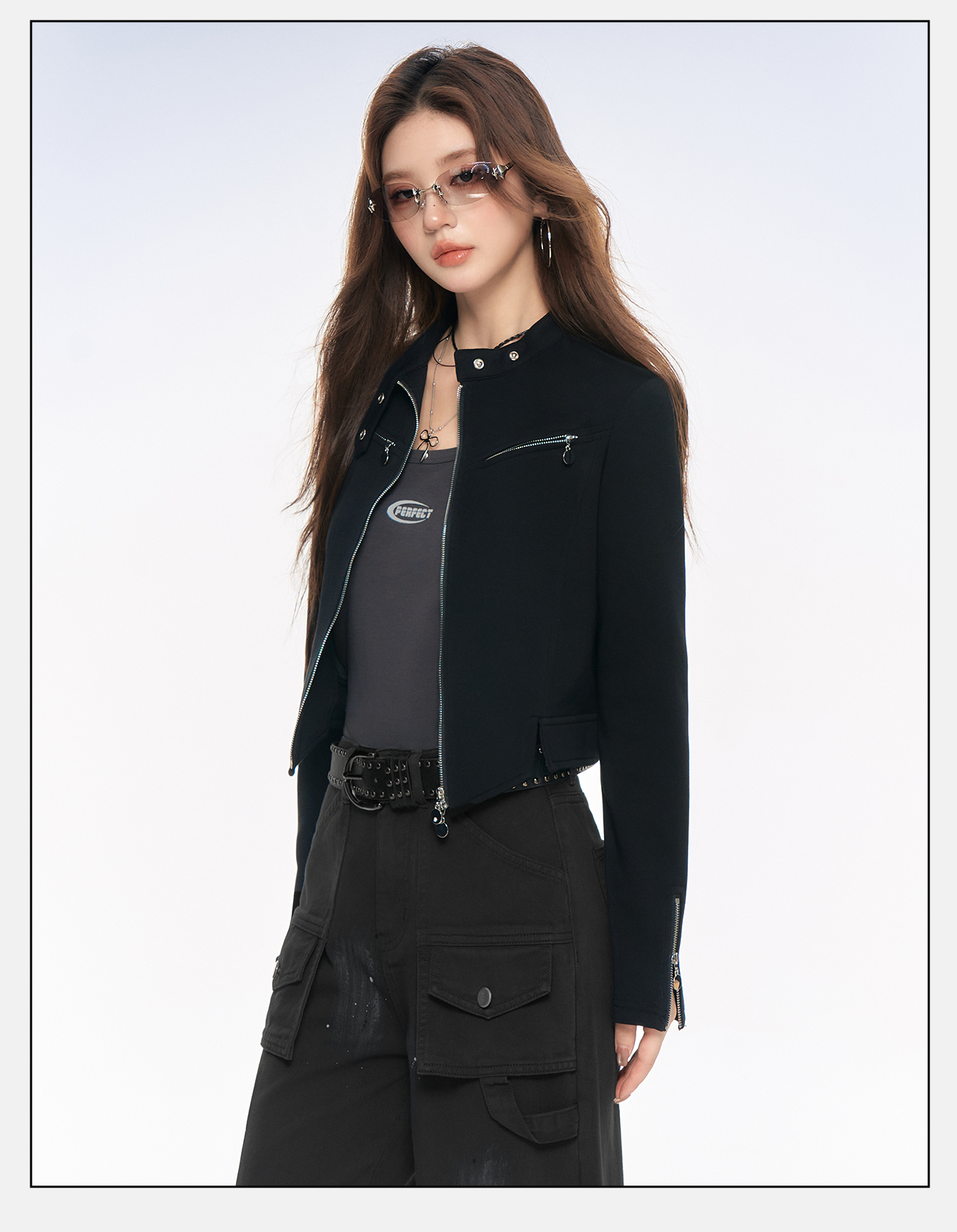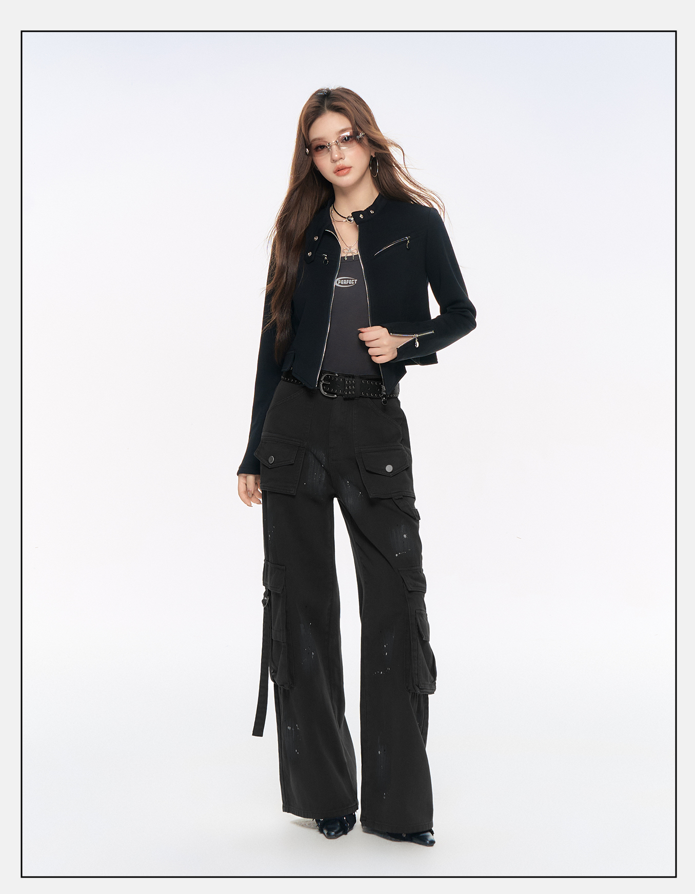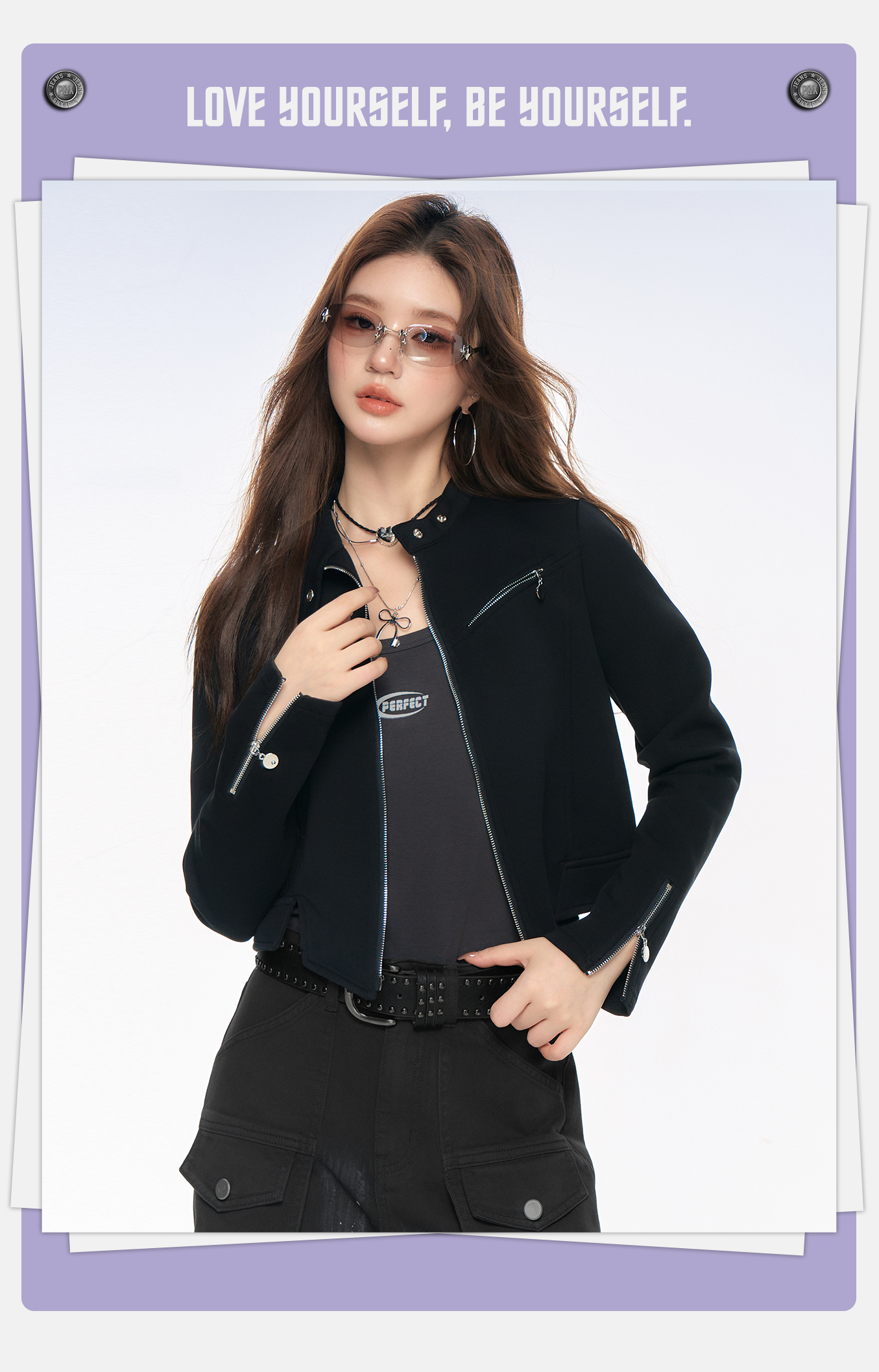 P&X设计师女装2025秋新款短款百搭女夹克针织外套 825313198 黑色