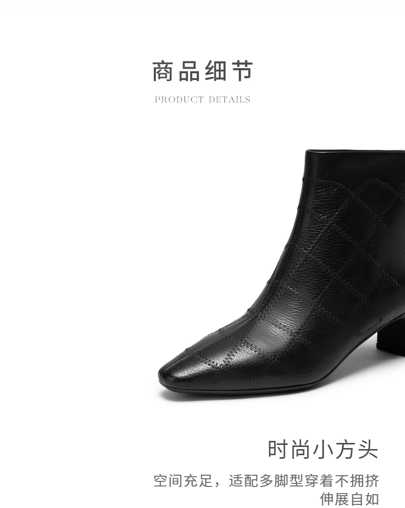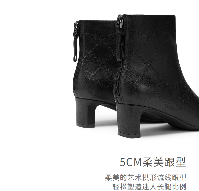 natursun法式时装靴秋冬季方头显瘦高跟靴气质舒适不累脚短靴N24506214