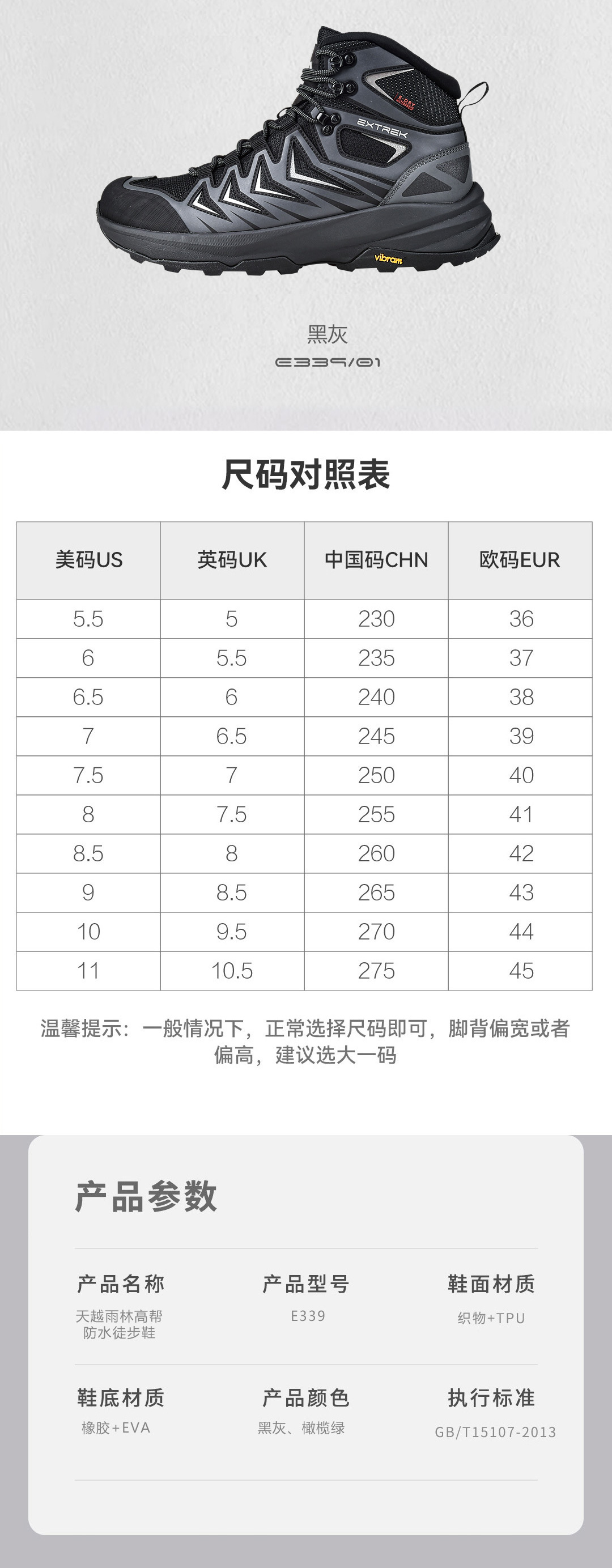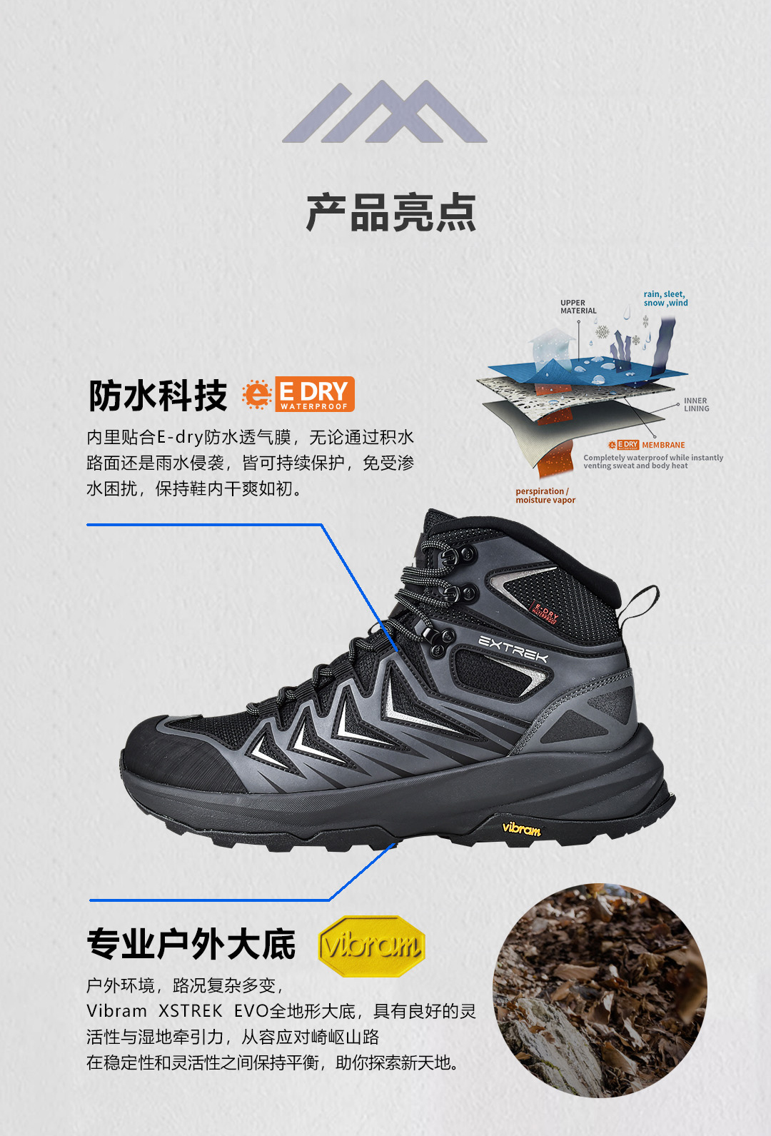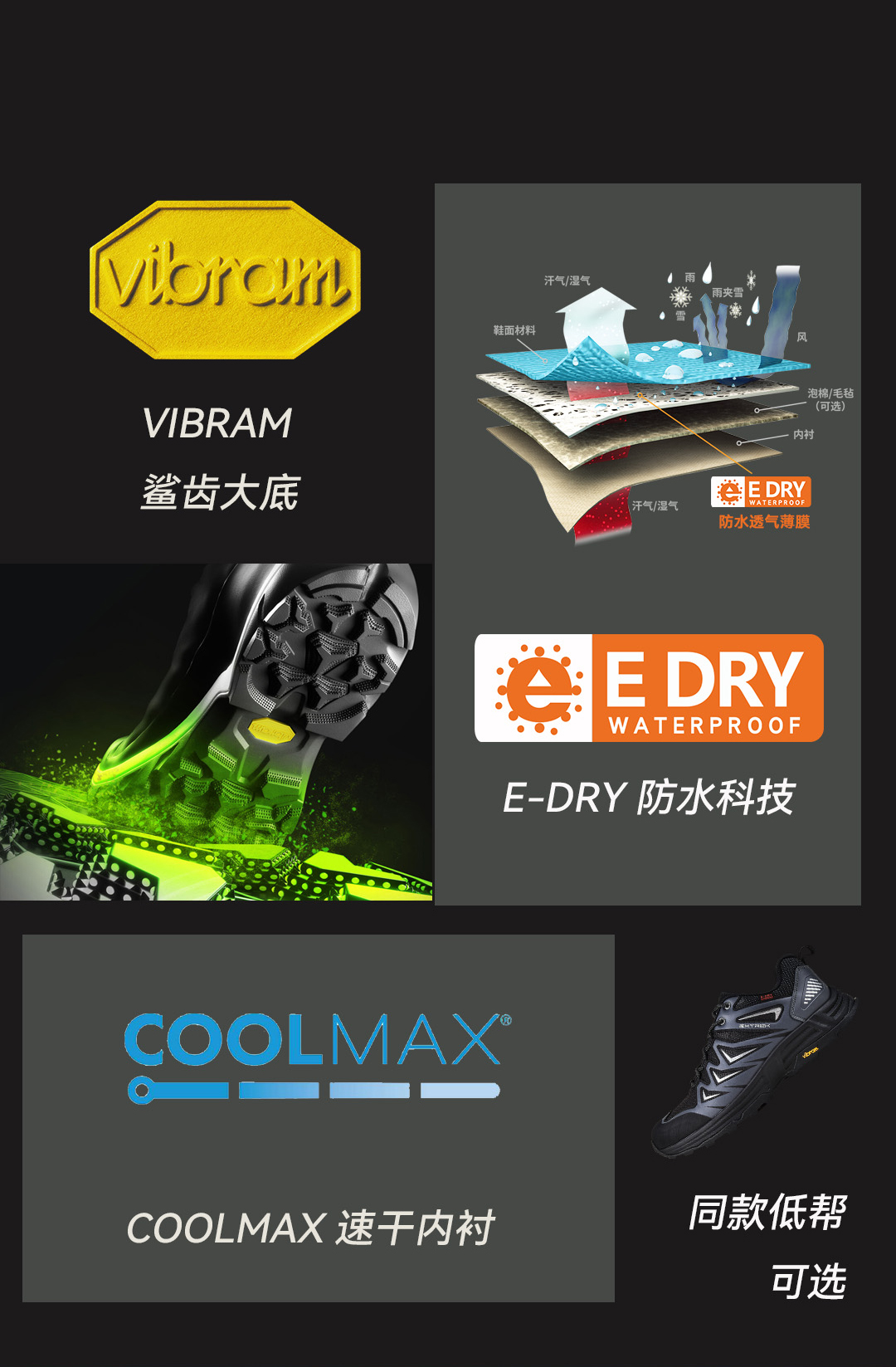 【史低!中高帮】天越雨林VIBRAM 大底+E-DRY全防水徒步鞋 E339