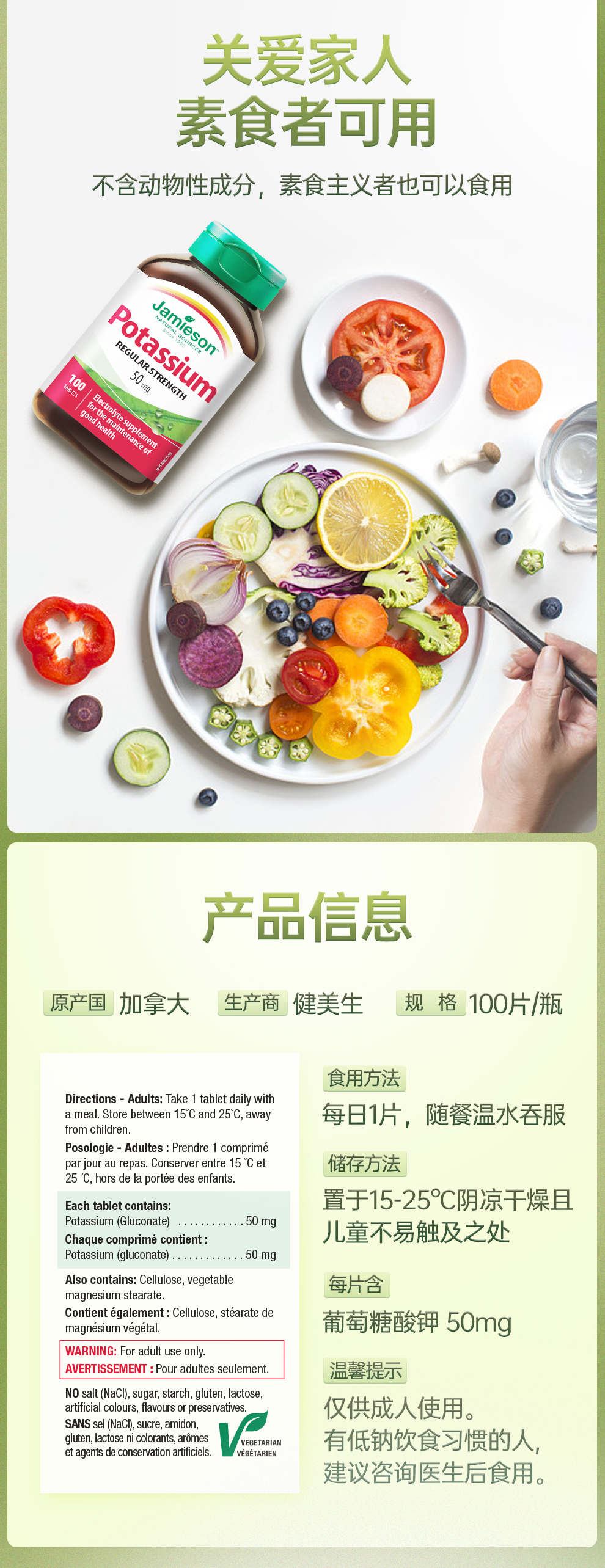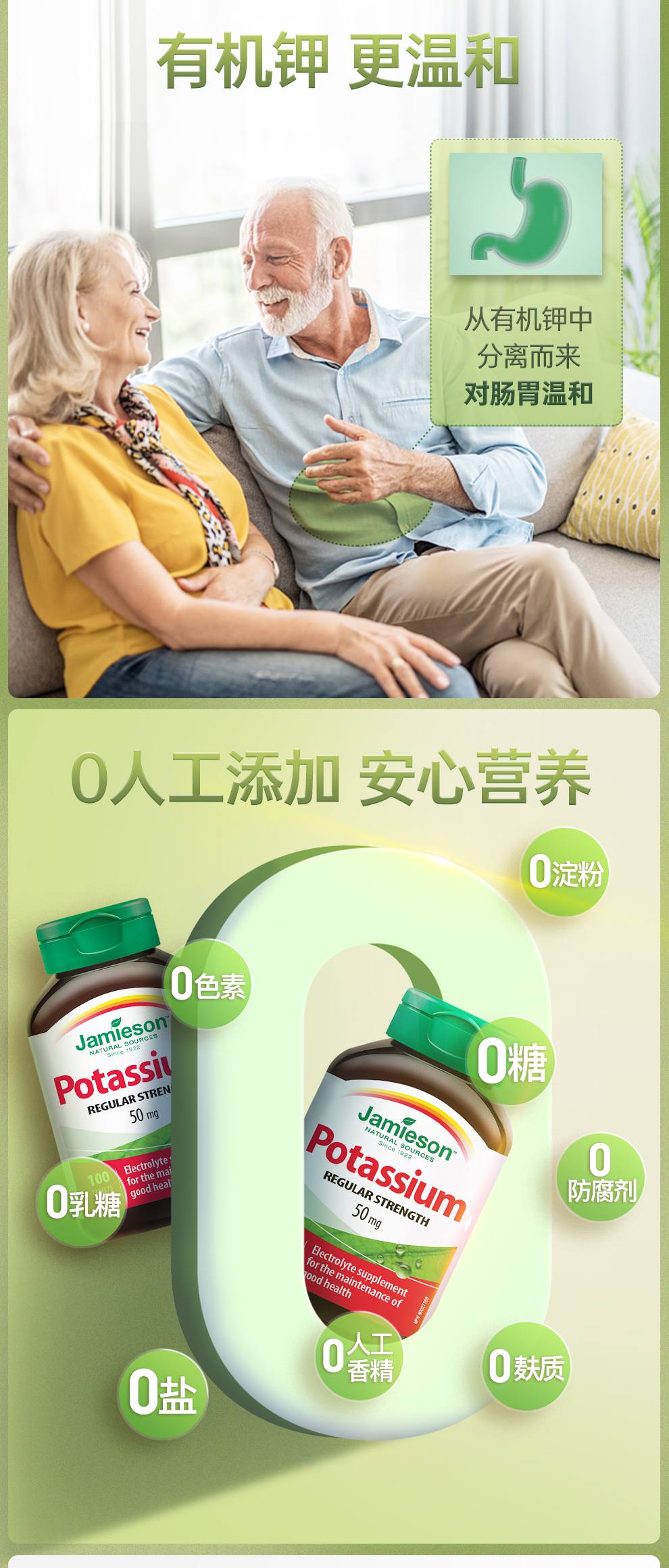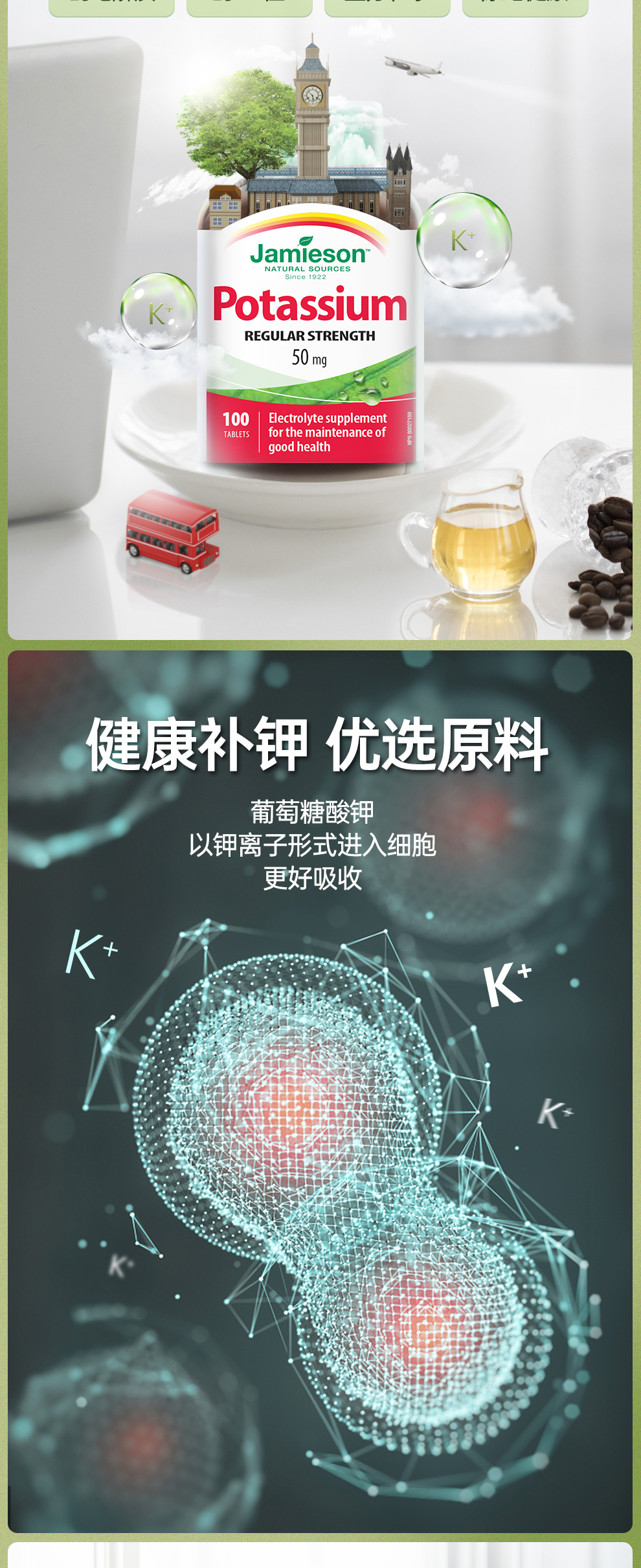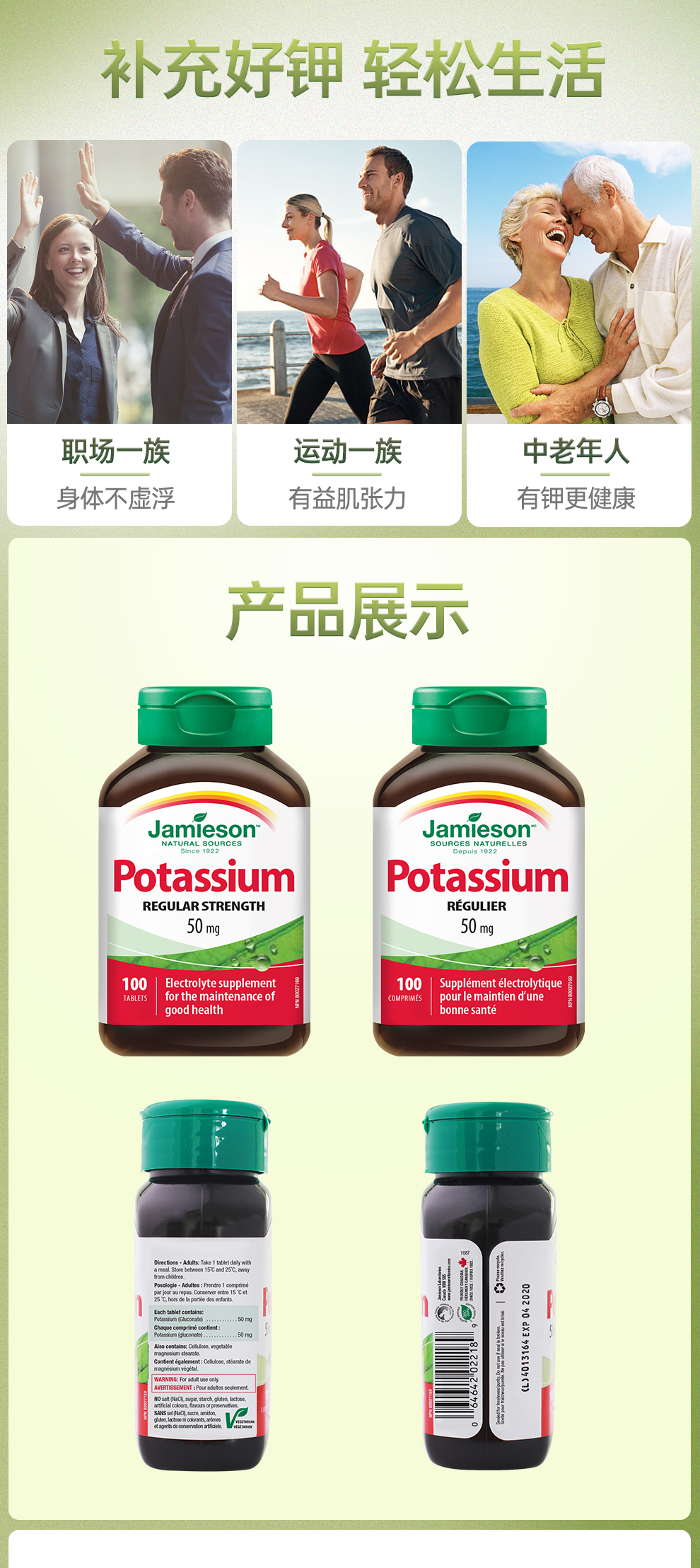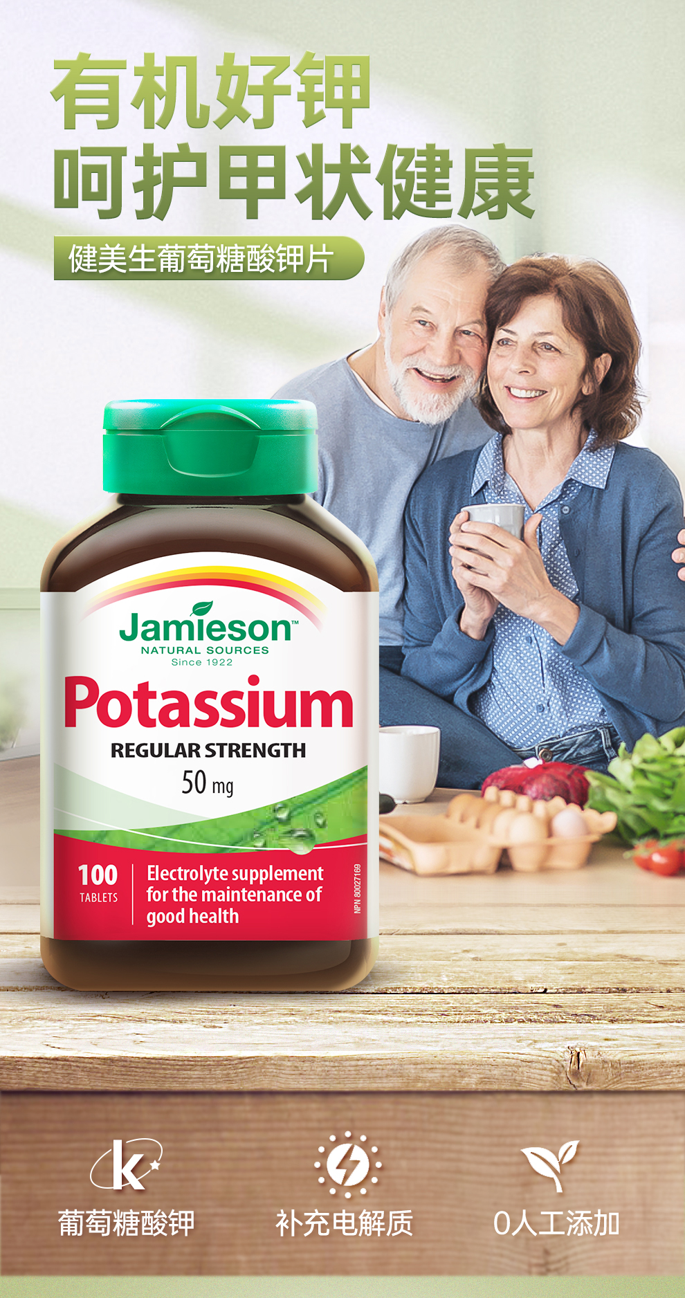 【分销】Jamieson健美生葡萄1糖酸钾片50mg100片