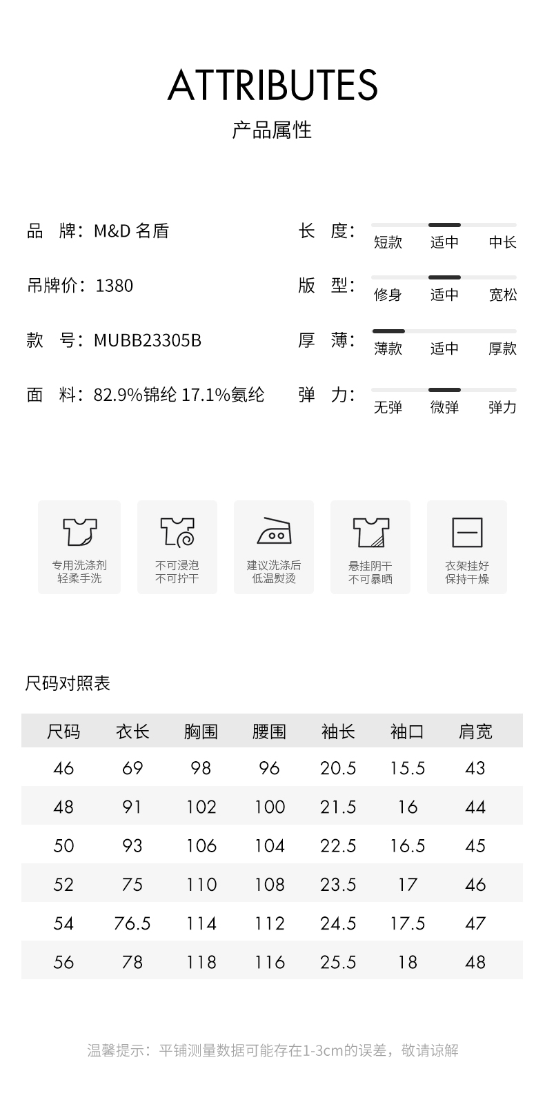 | 品牌: M&D/名盾 | 领型: 方领 |