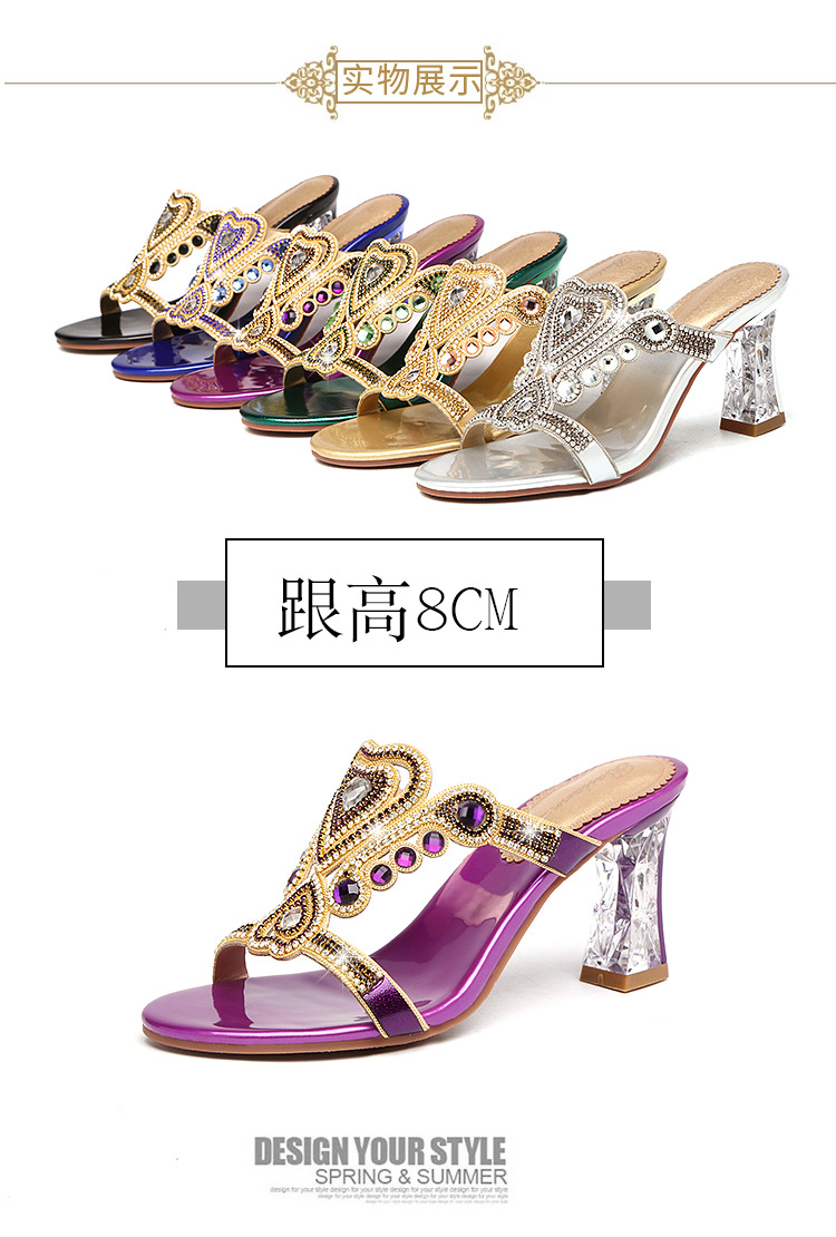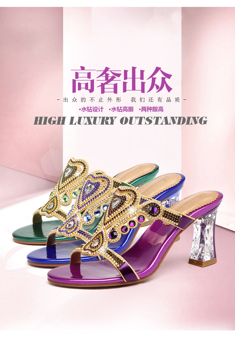 水晶高跟凉拖新款性感罗时尚水钻拖鞋 LX202054545