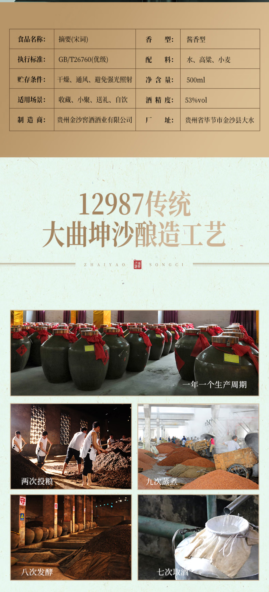 【整箱4瓶】0.5L-53度金沙摘要酒-宋词