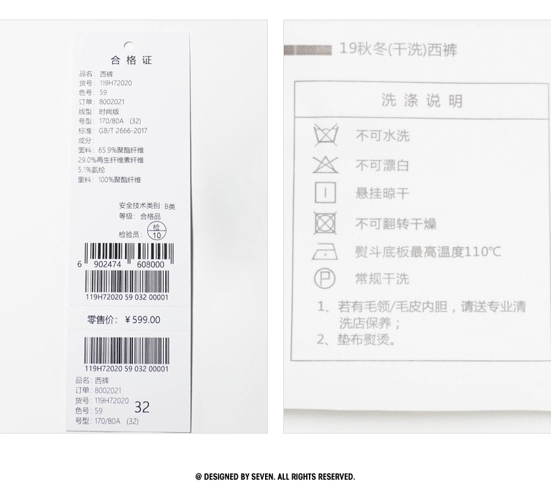 【特价】柒牌男装新品男士商务时尚西裤抗皱耐磨青年职场西服裤子w 119H7202W