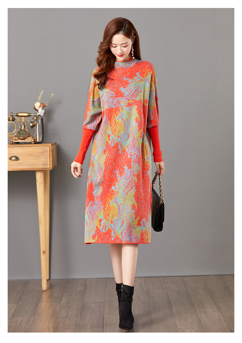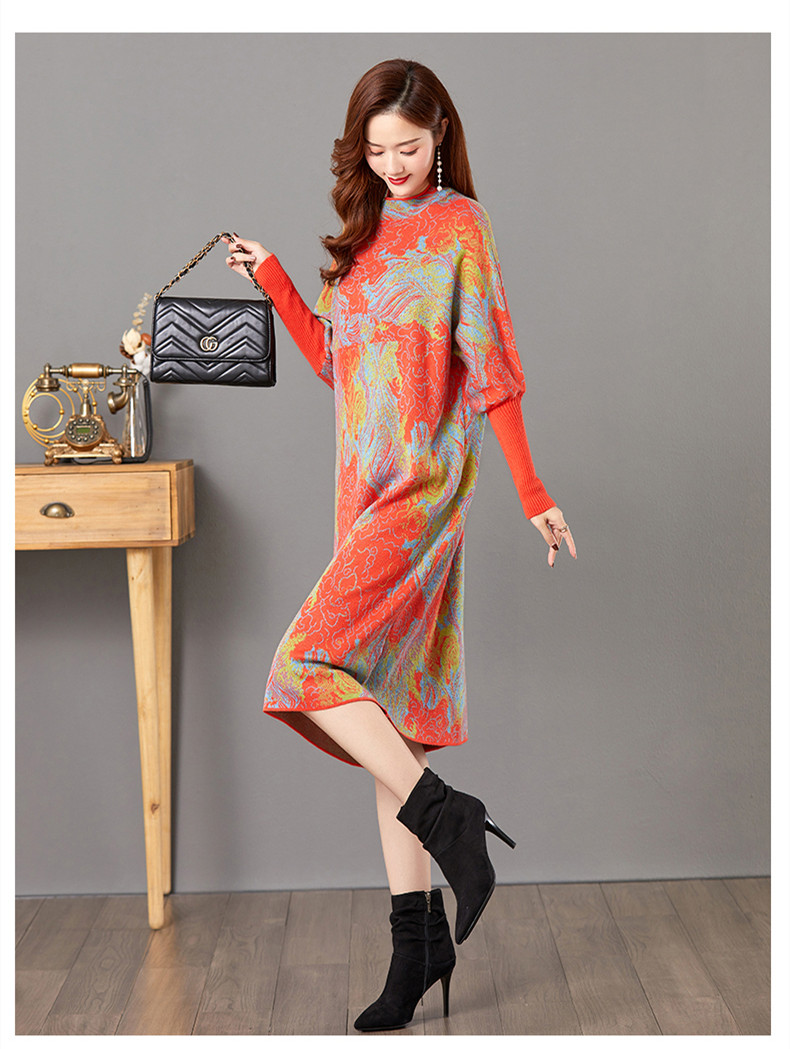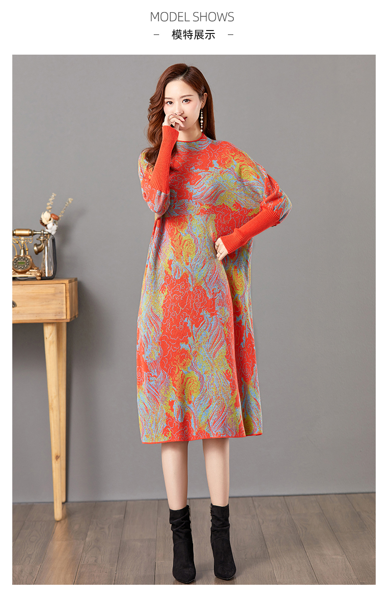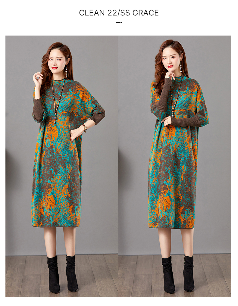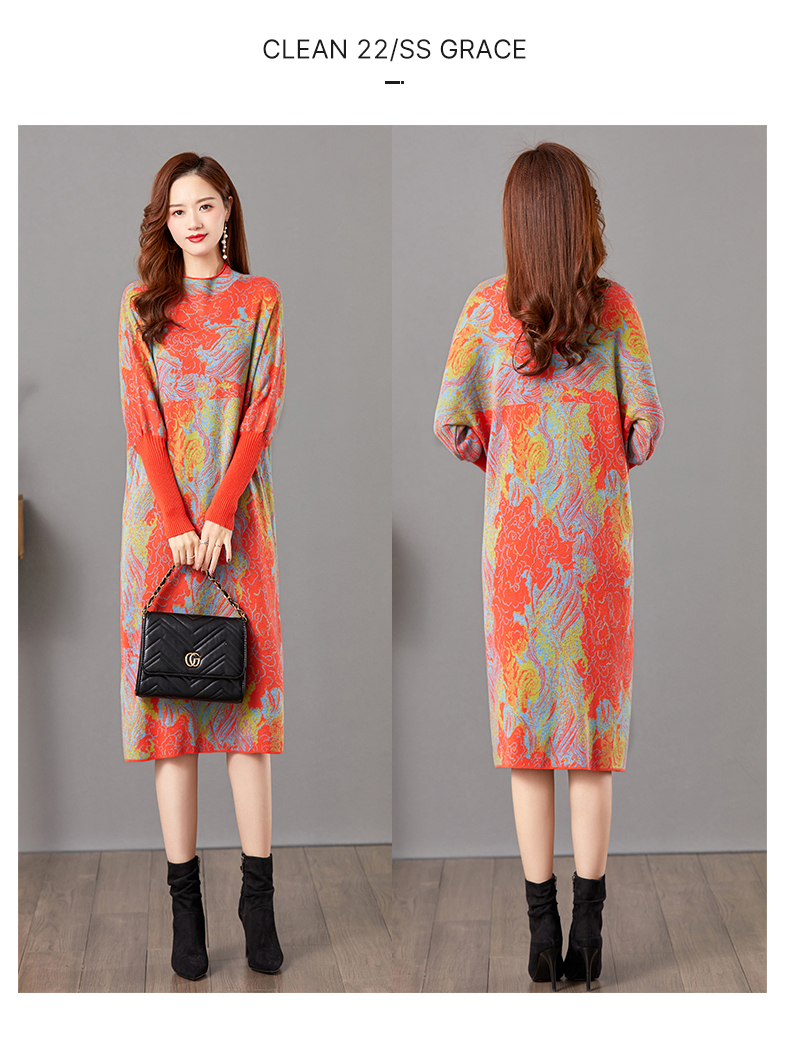 配大衣毛衣裙,中长款高冷御姐风针织打底裙子CC-E-5208