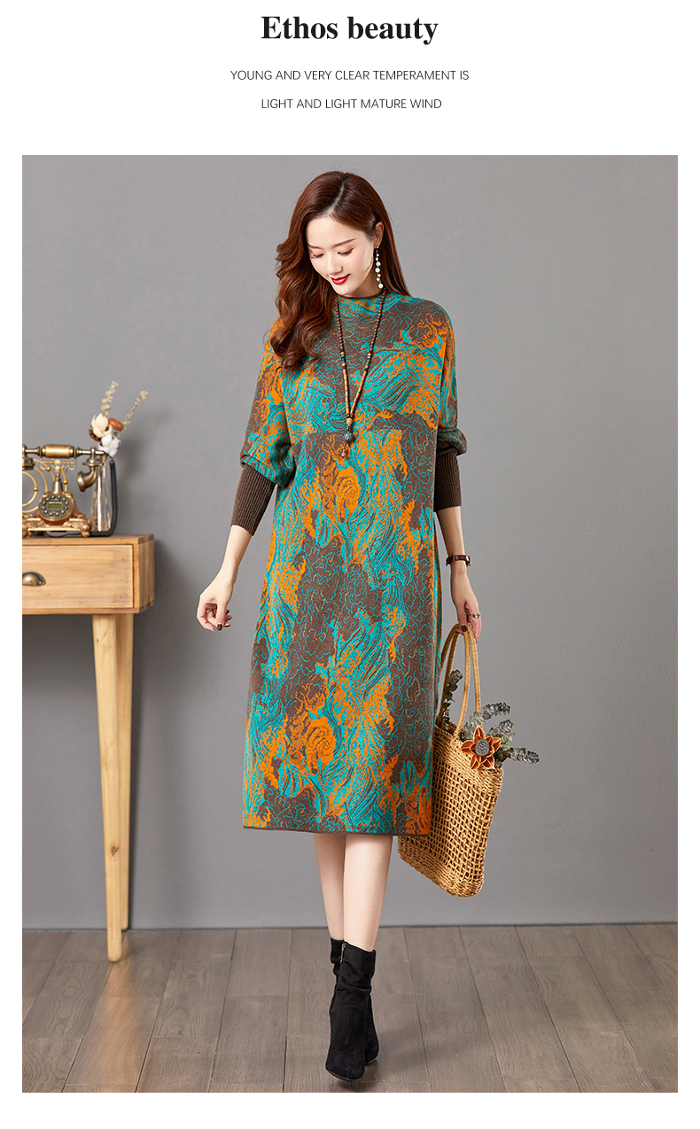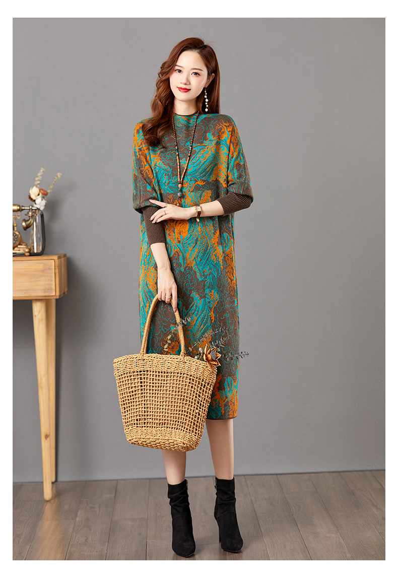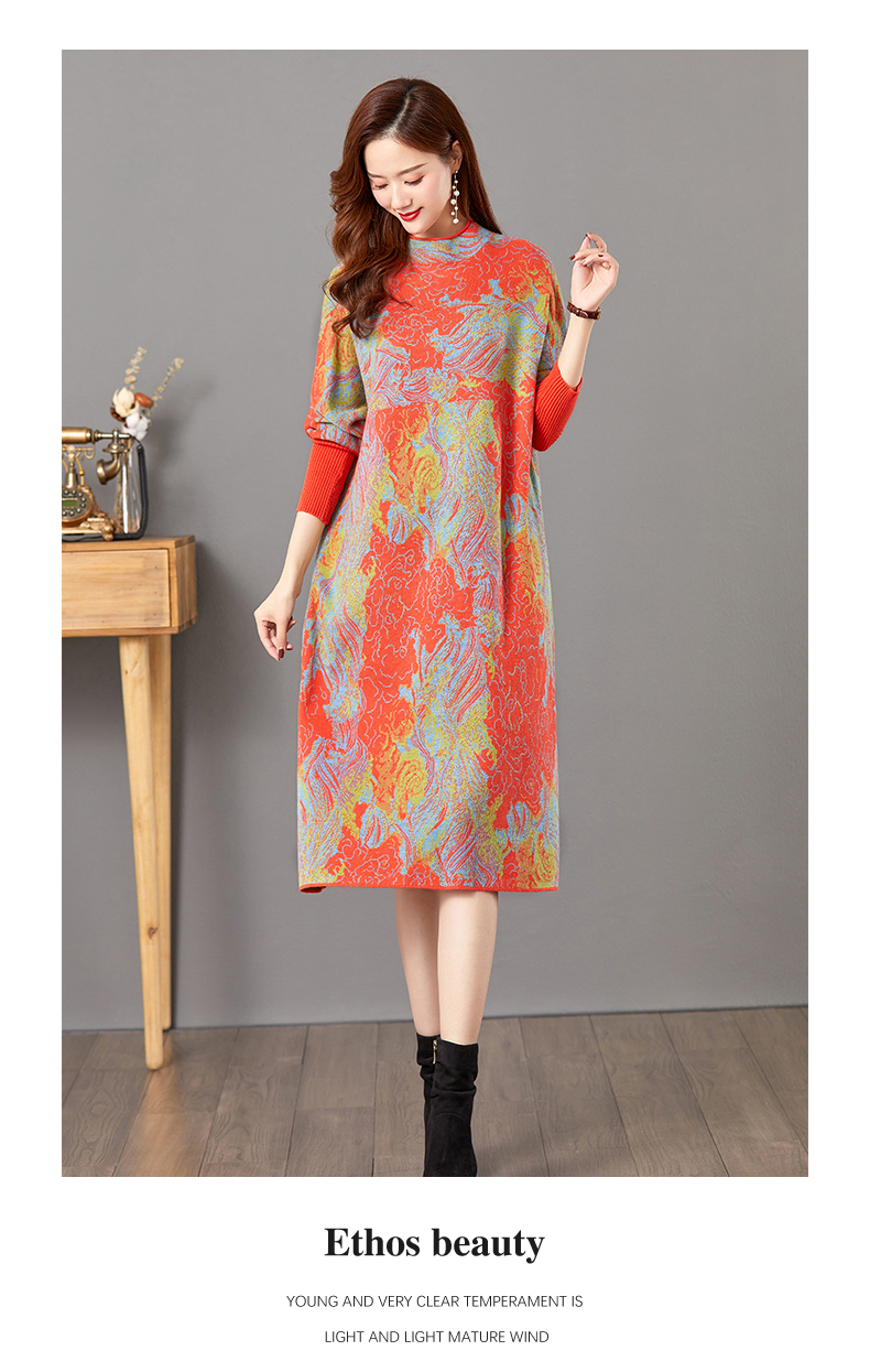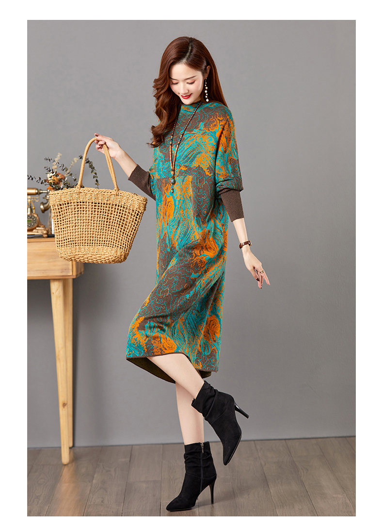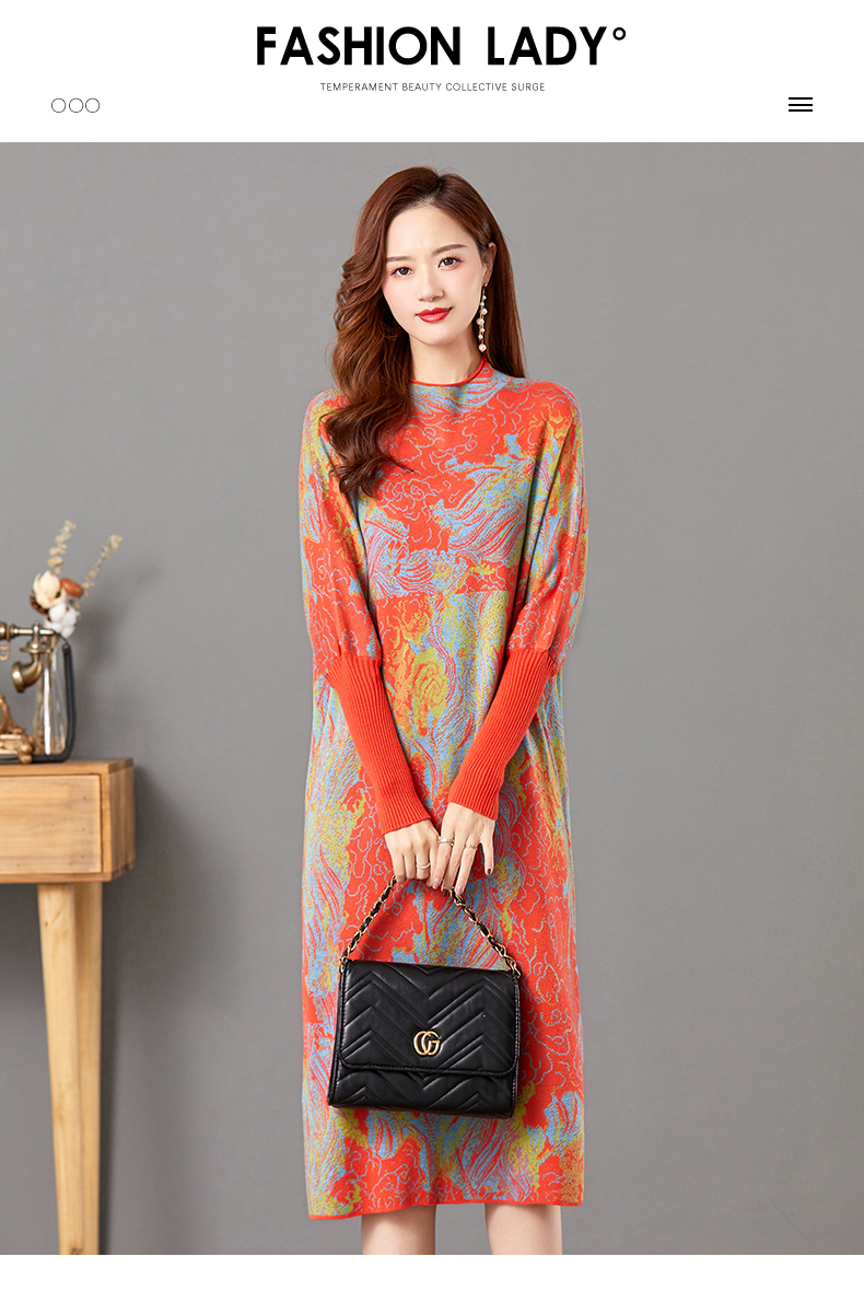 配大衣毛衣裙,中长款高冷御姐风针织打底裙子CC-E-5208