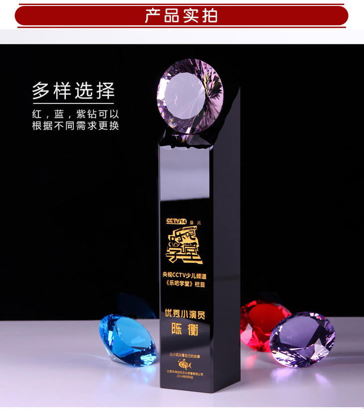水晶奖杯奖牌钻石奖杯水晶定制创意荣誉奖座琉璃奖杯授权牌