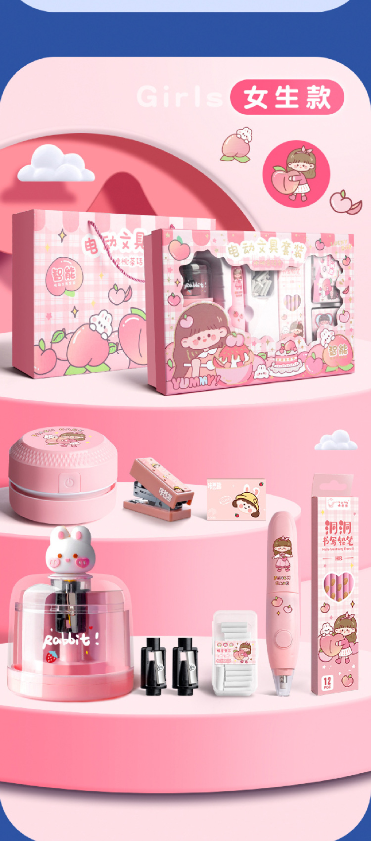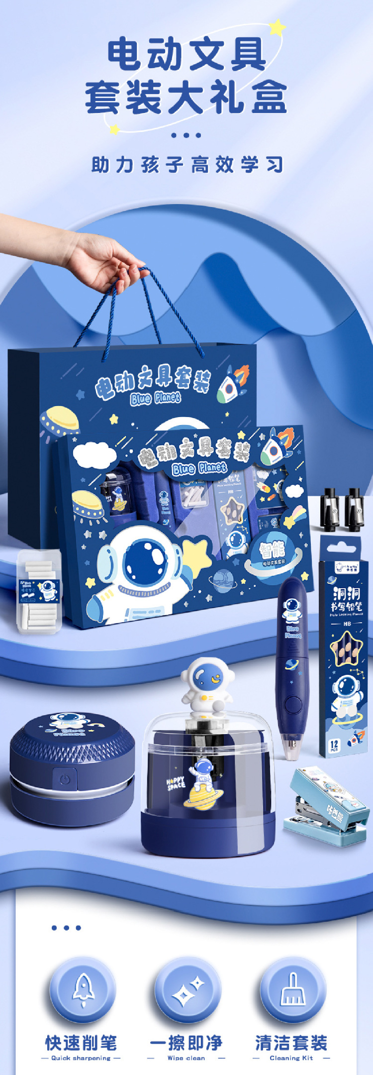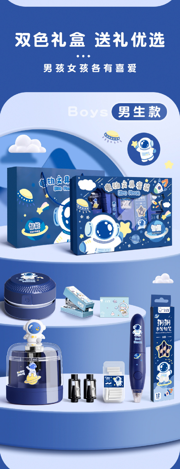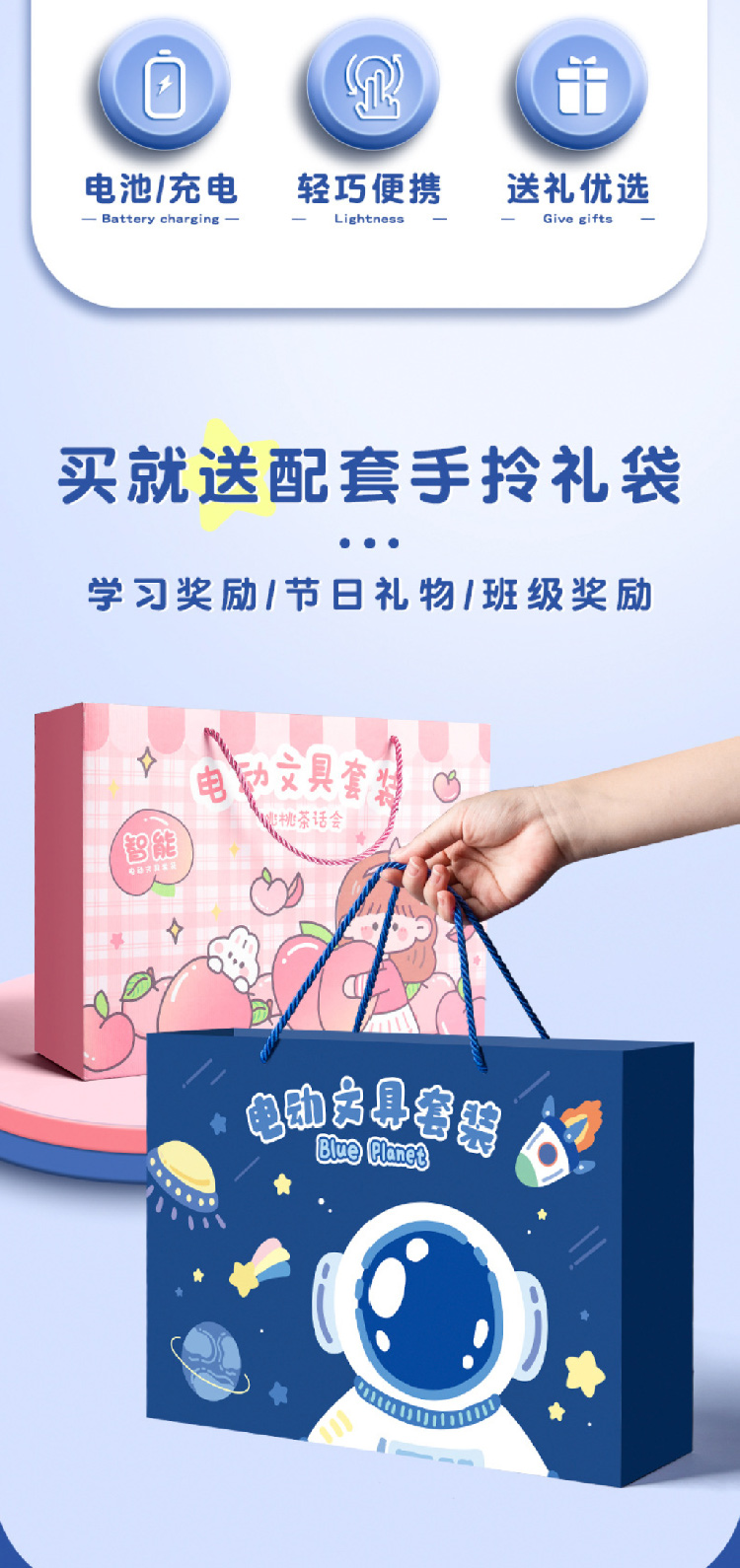 儿童电动文具礼盒套装小学生学习用品开学礼品学生奖励礼物