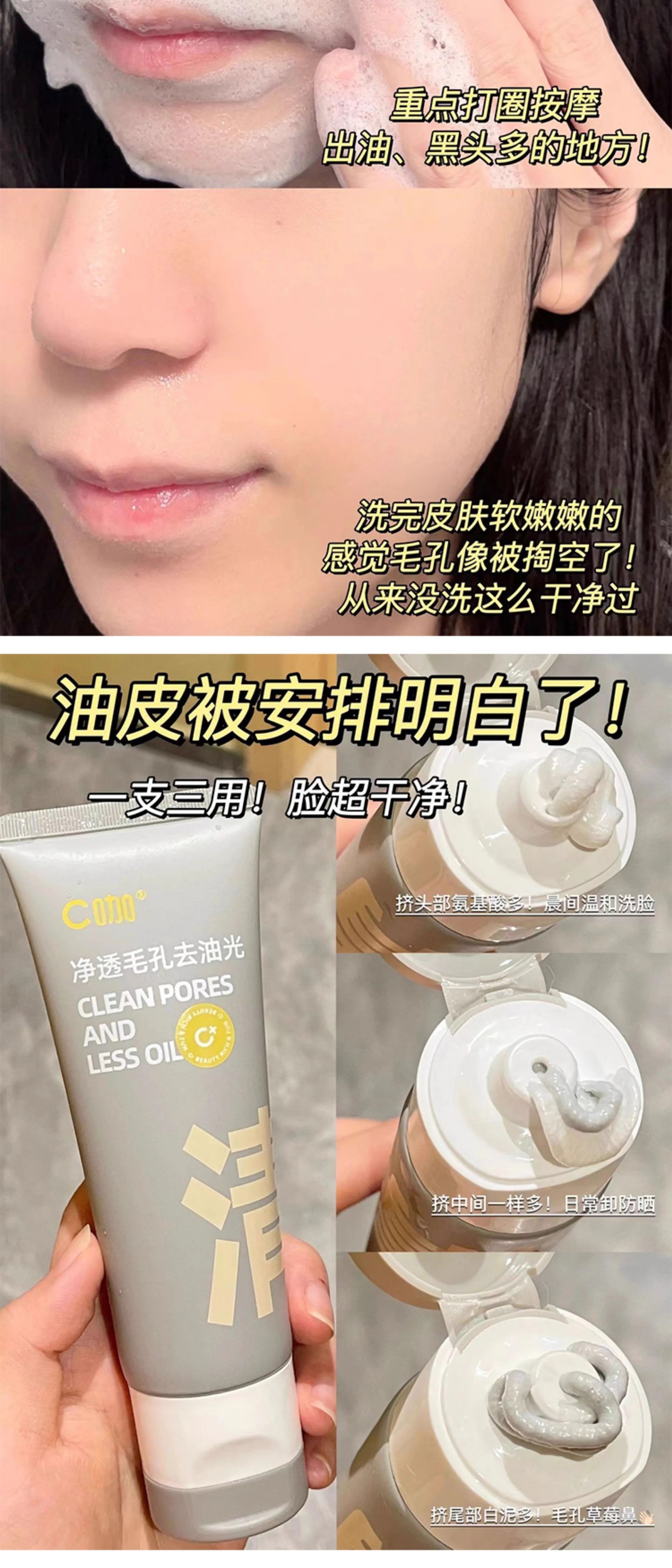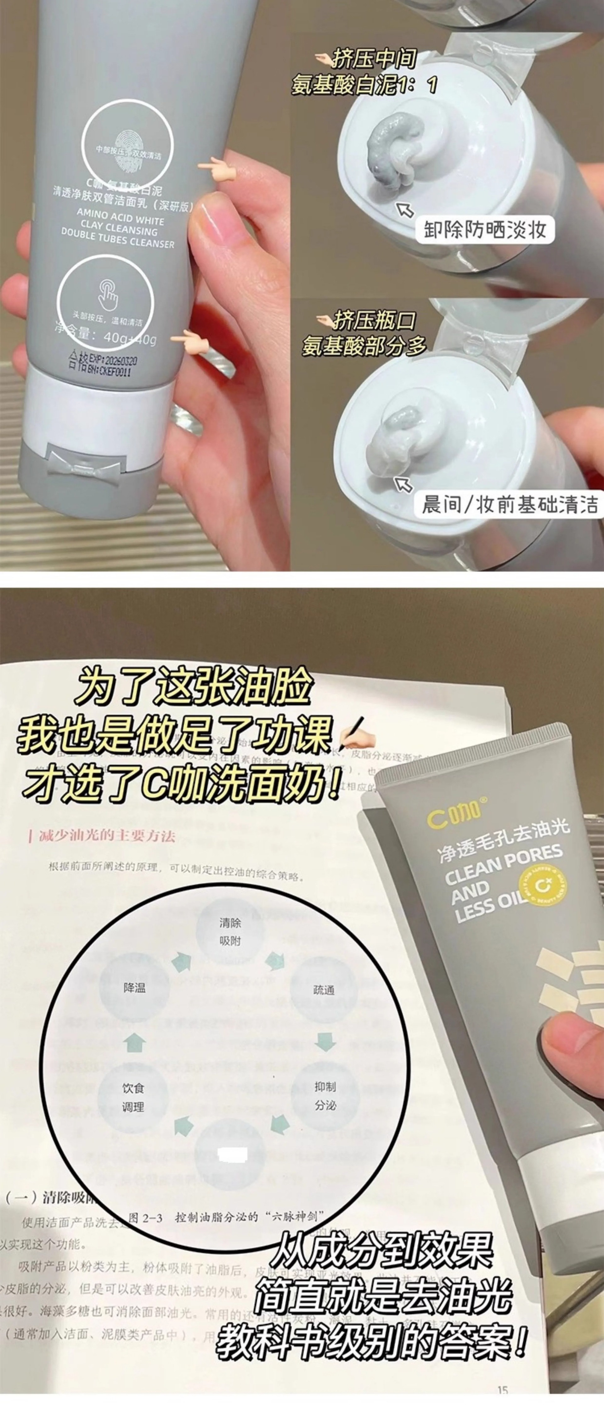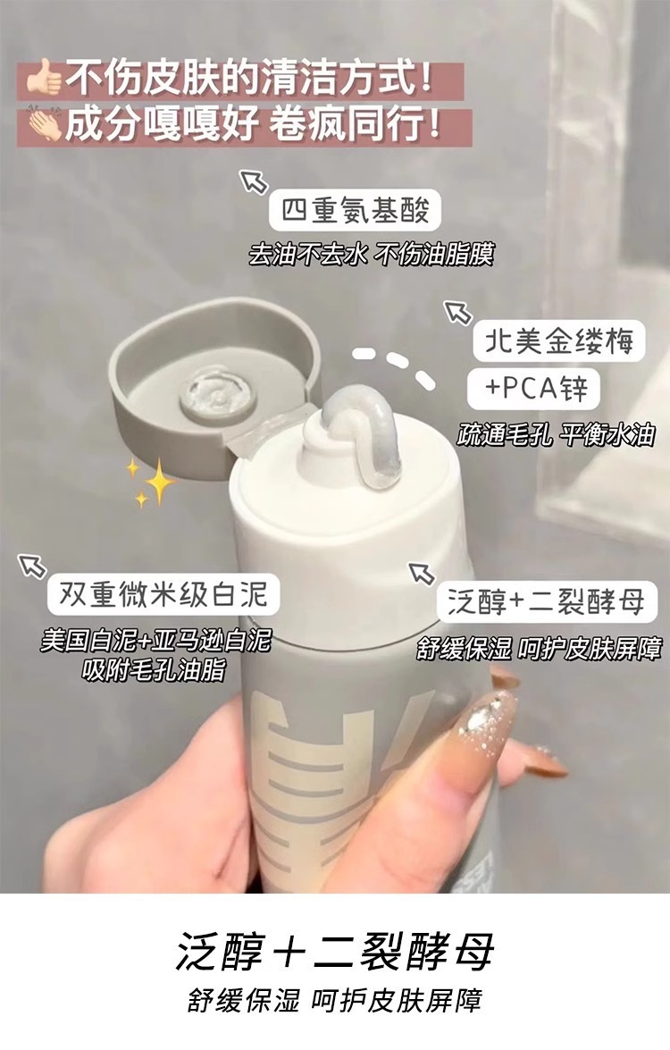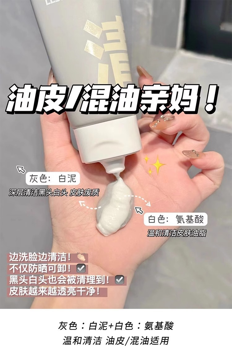 【洗卸合一!再也不怕防晒卸不干净!】C咖氨基酸双管洗面奶二合一控油深层毛孔保湿洁面乳温和清洁卸妆。ry
