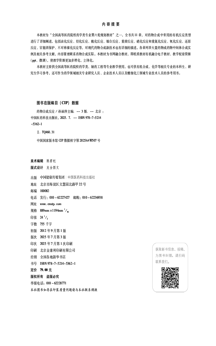 药物合成反应 第3三版(全国高等医药院校药学类专业第六轮规划教材)孙丽萍 供药学类 制药工程等专业使用 中国医药科技出版社
