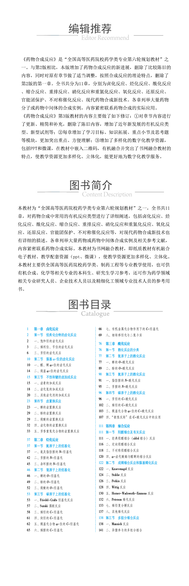 书名:药物合成反应(第3版)(全国高等医药院校药学类专业第六轮规划教材)