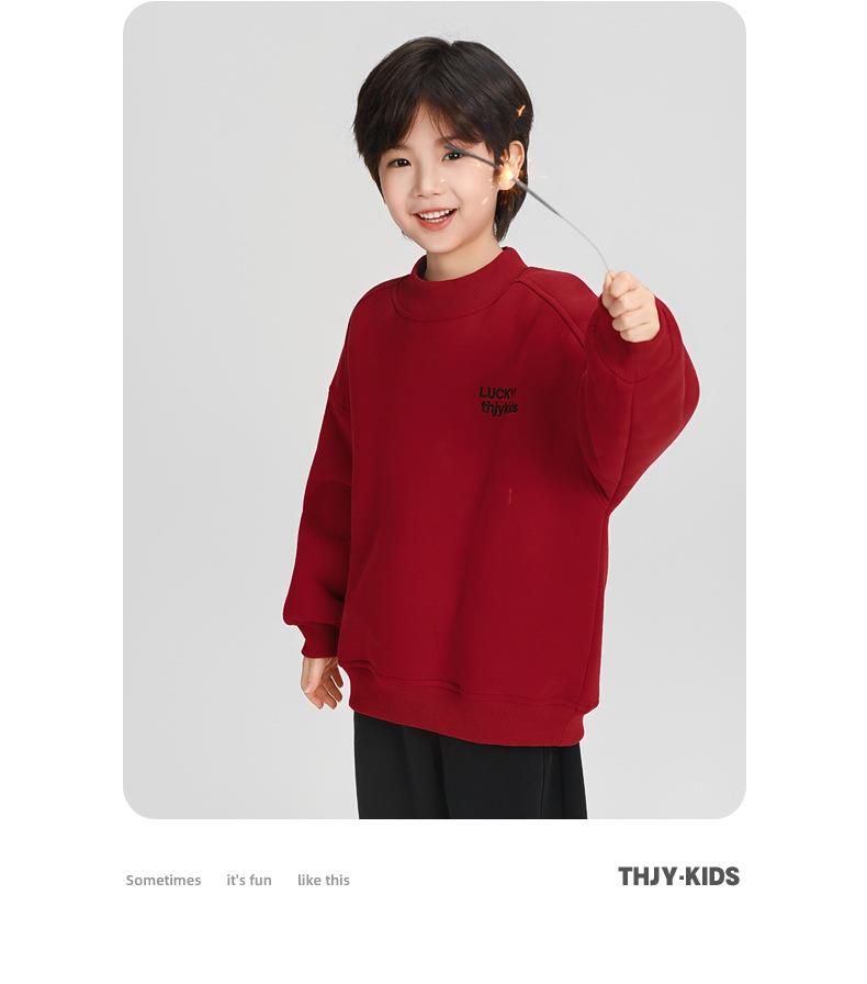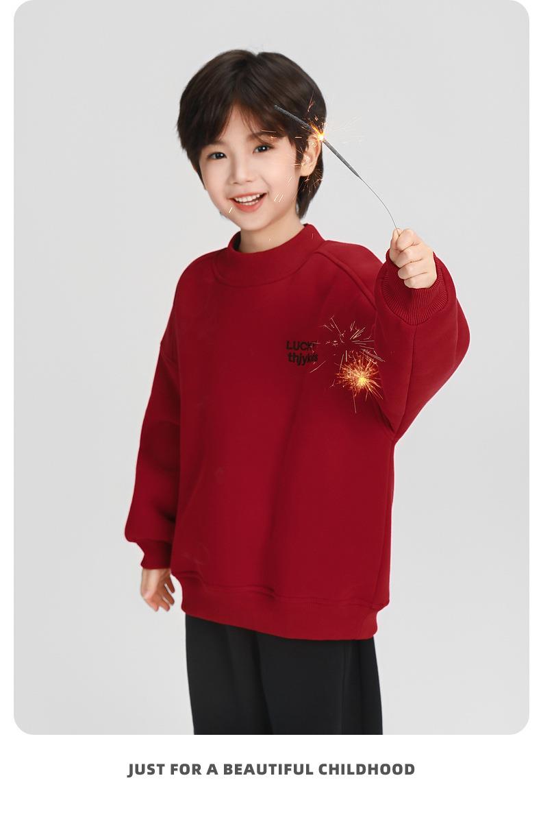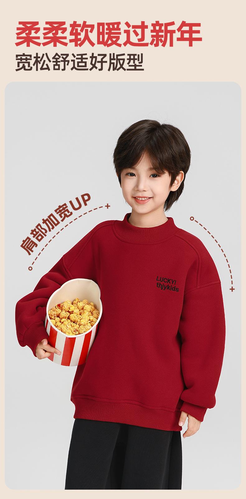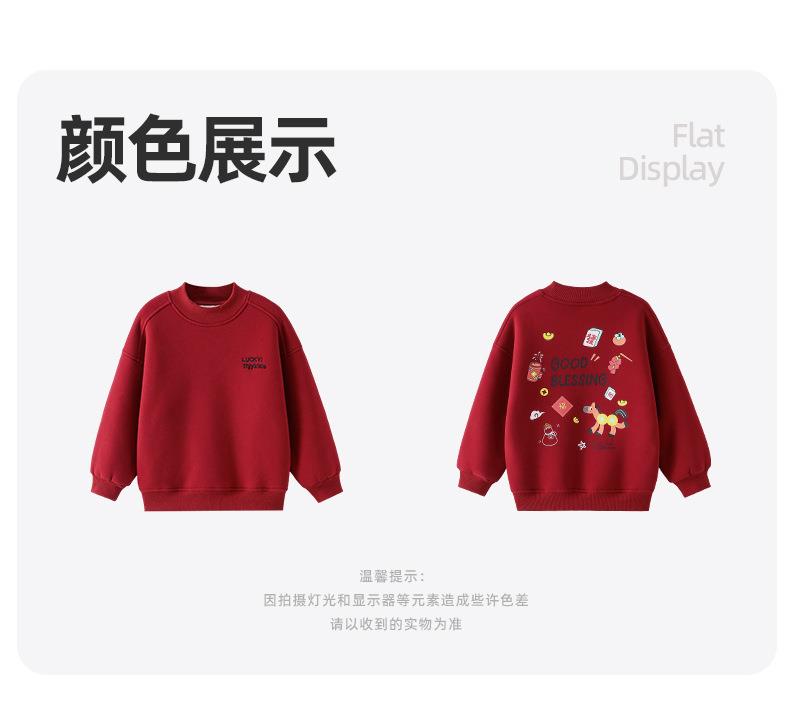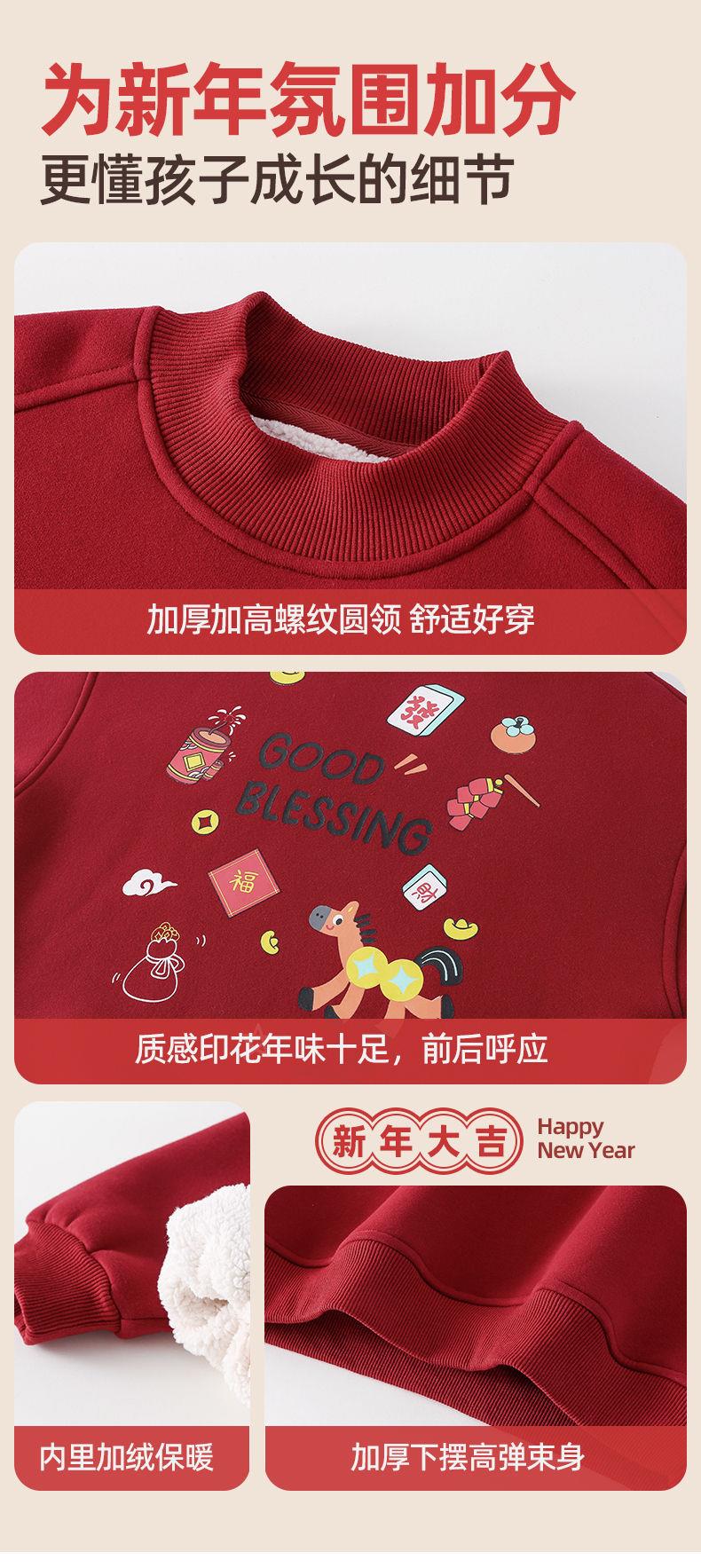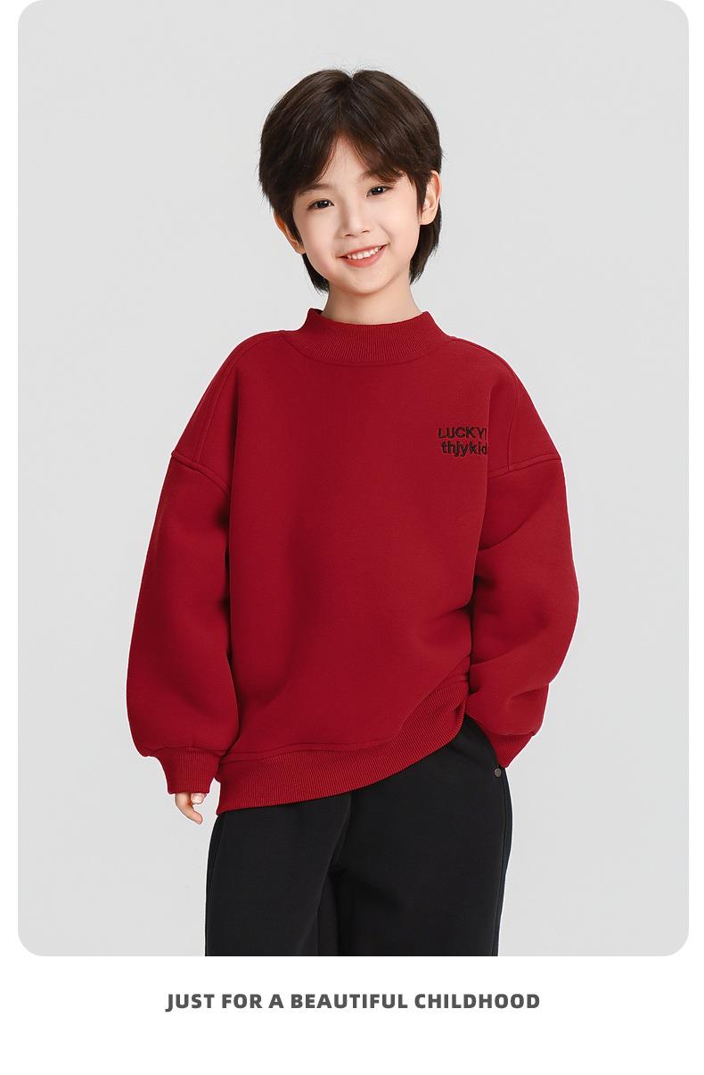 男童加绒卫衣2025冬装新款冬款儿童加绒一体绒保暖红色圆领上衣