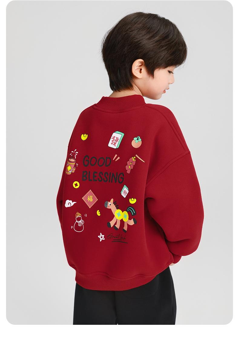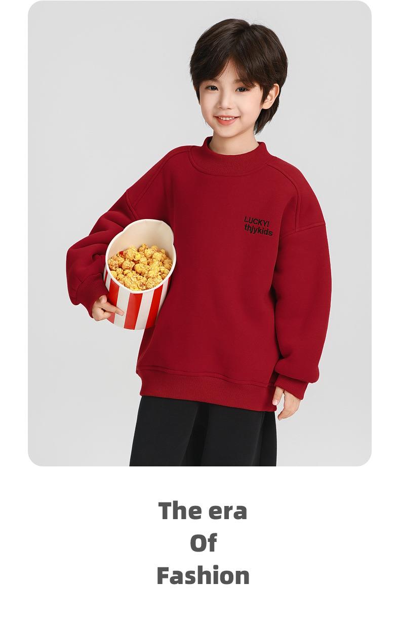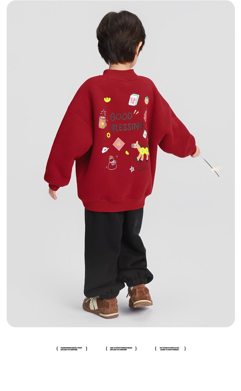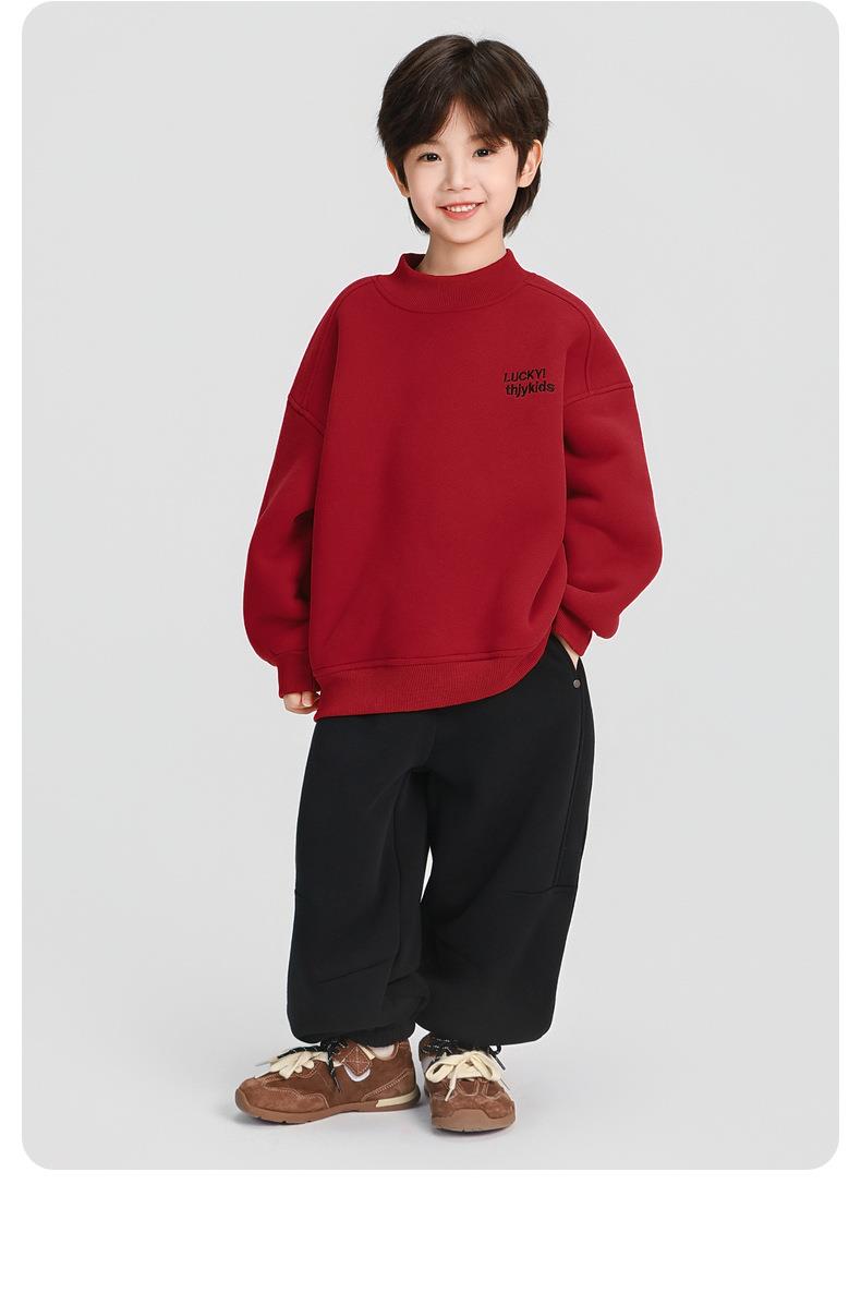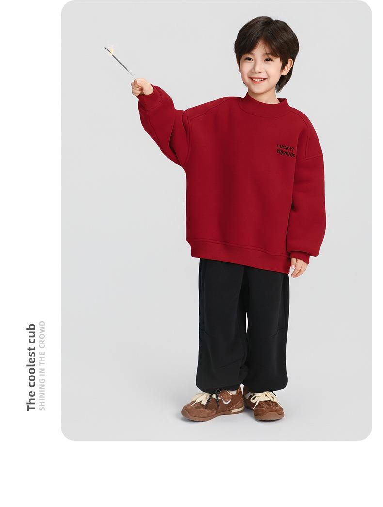 男童加绒卫衣2025冬装新款冬款儿童加绒一体绒保暖红色圆领上衣