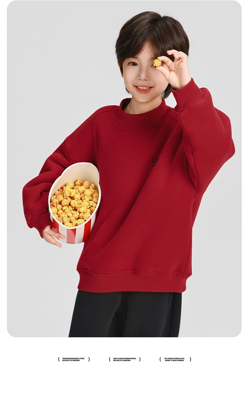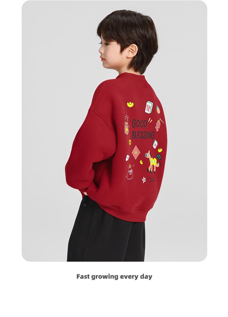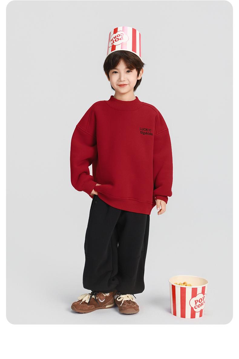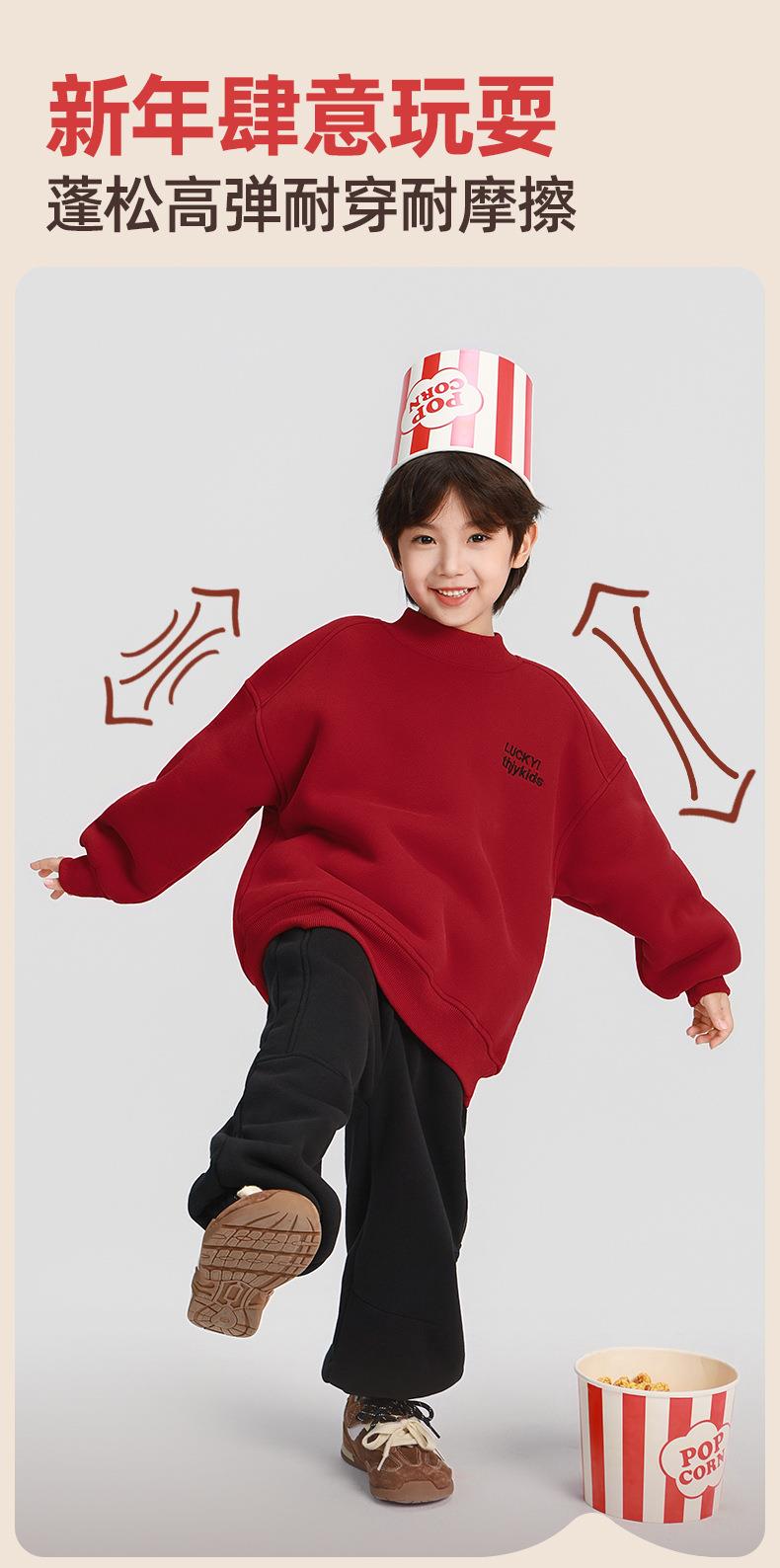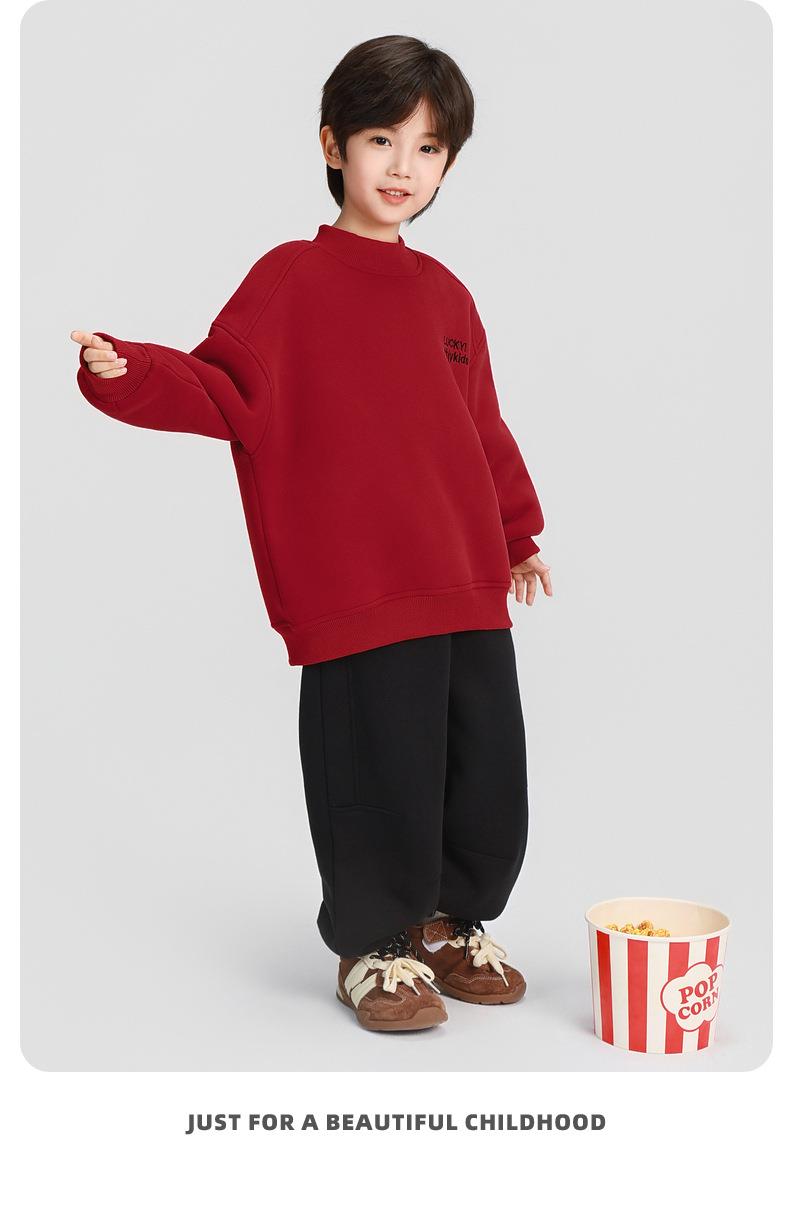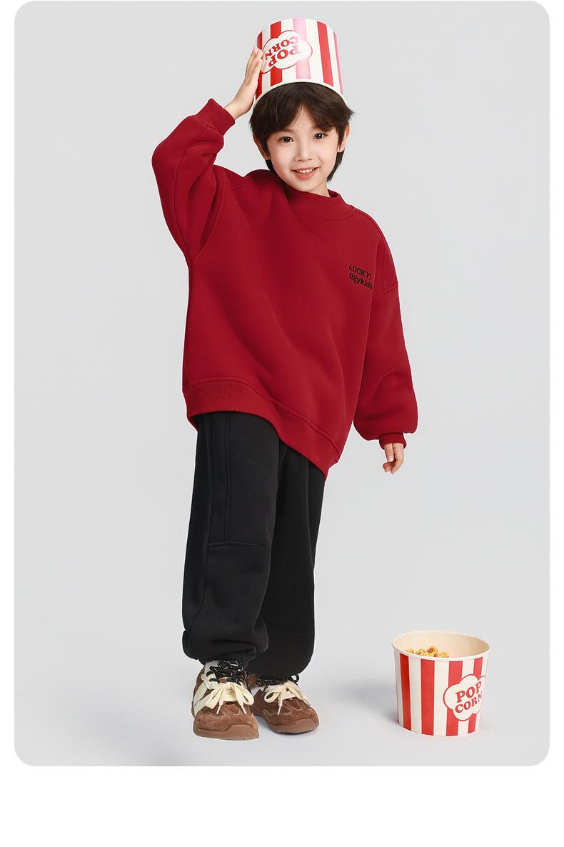 男童加绒卫衣2025冬装新款冬款儿童加绒一体绒保暖红色圆领上衣