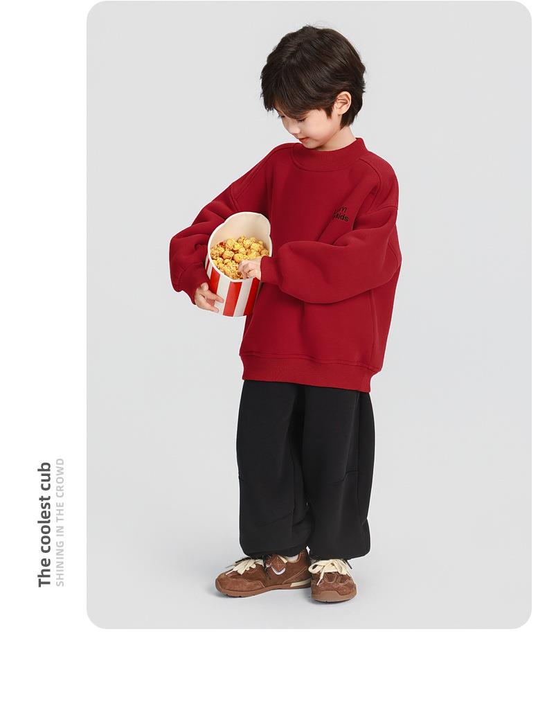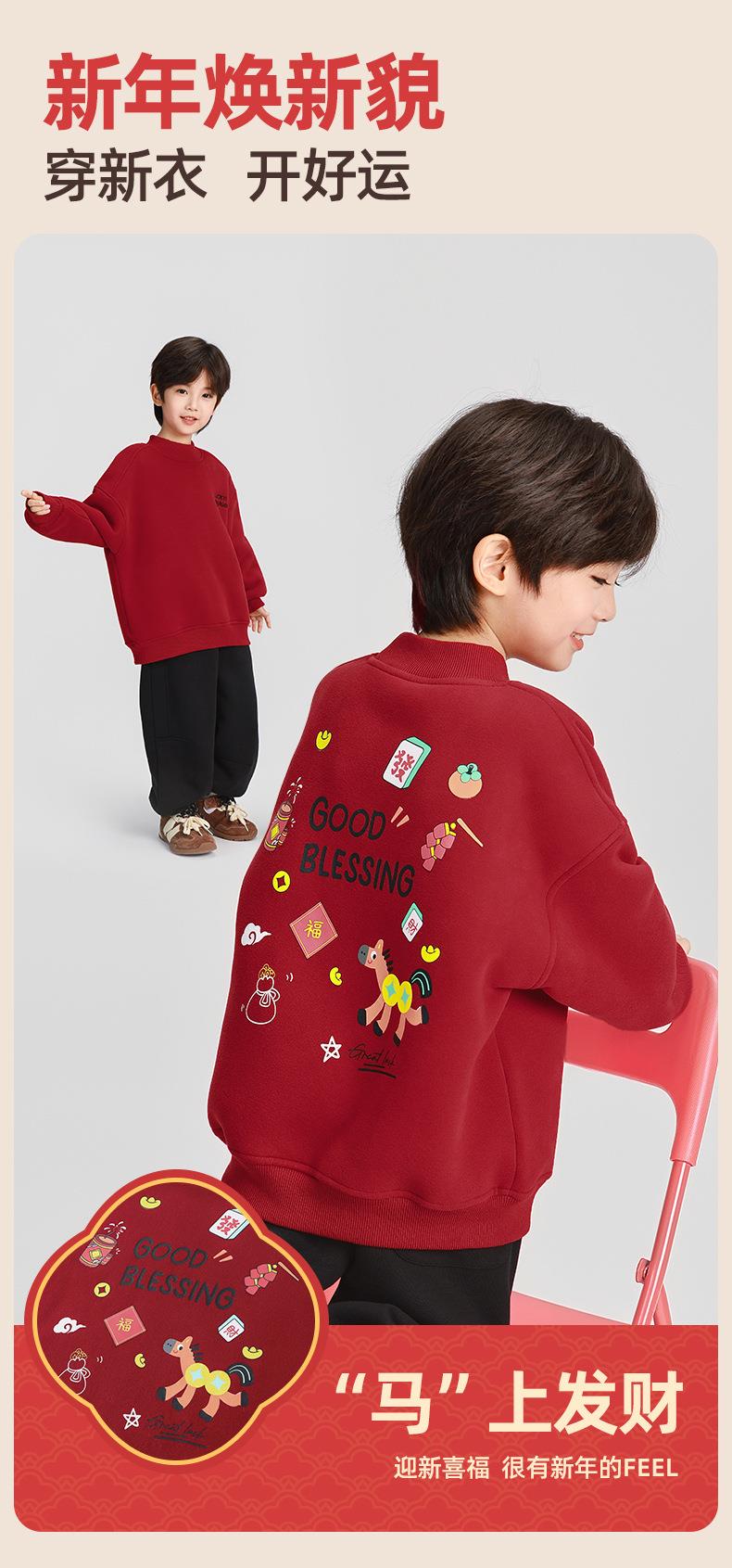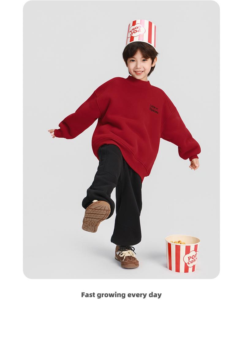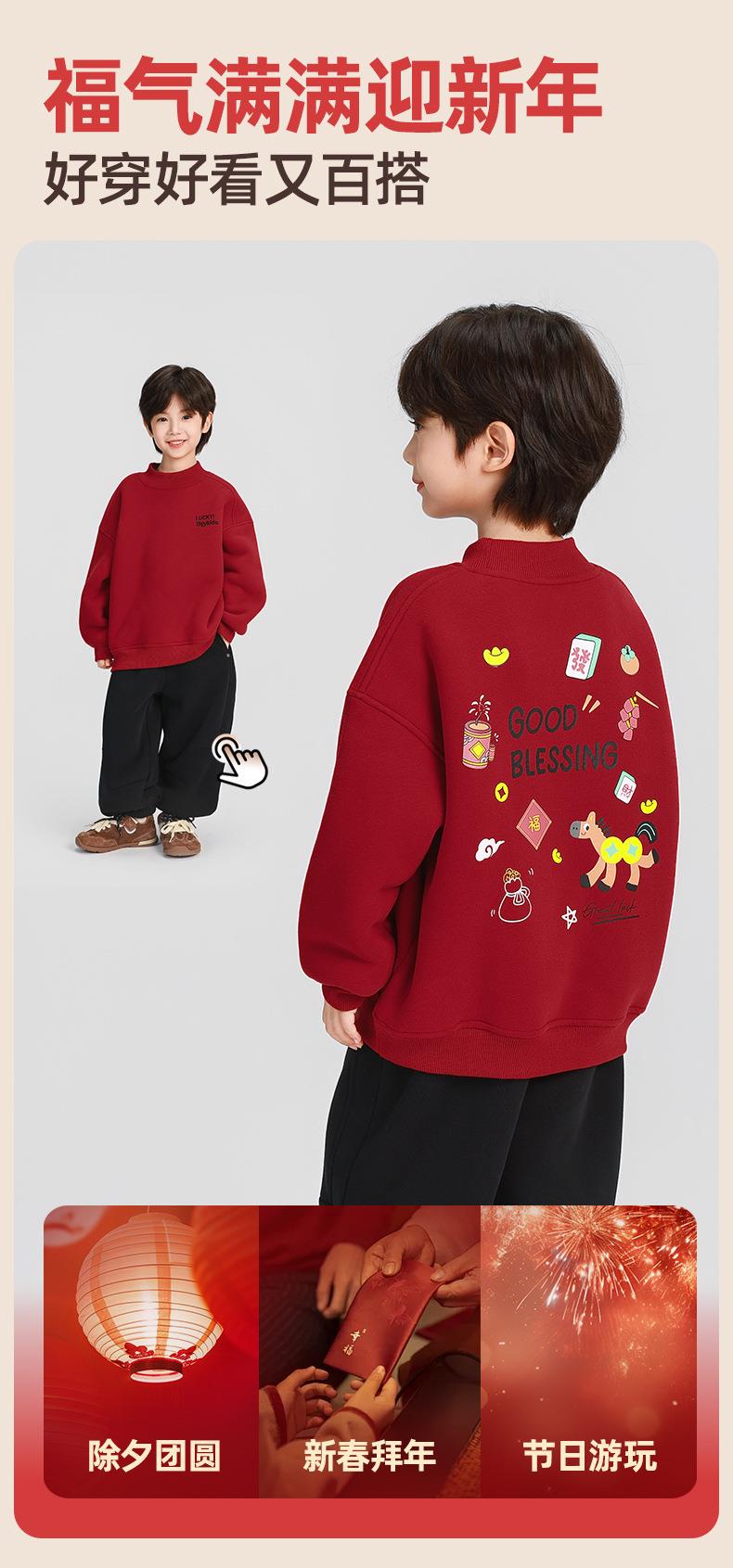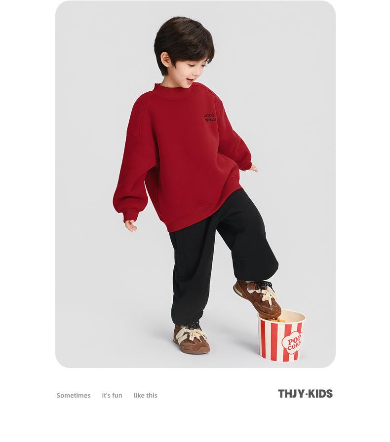 男童加绒卫衣2025冬装新款冬款儿童加绒一体绒保暖红色圆领上衣