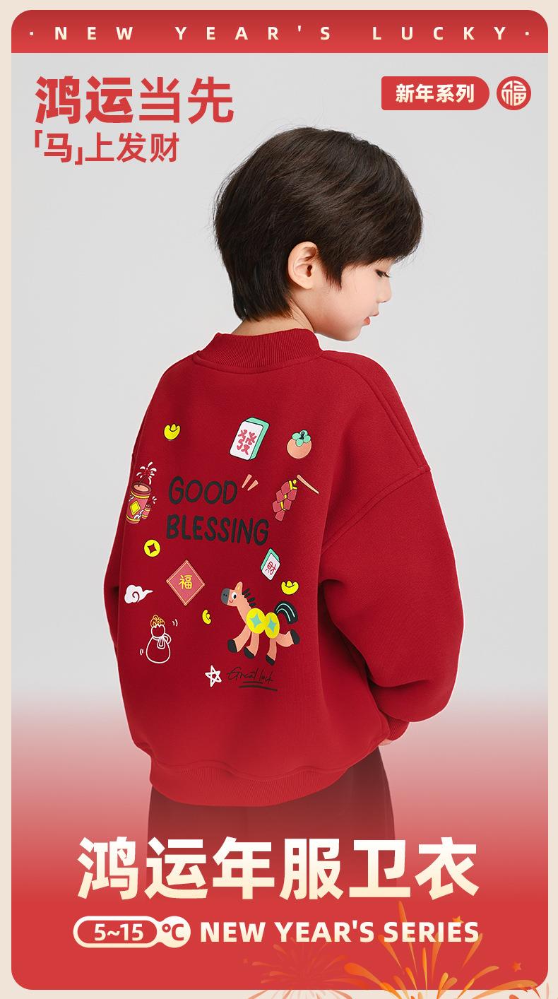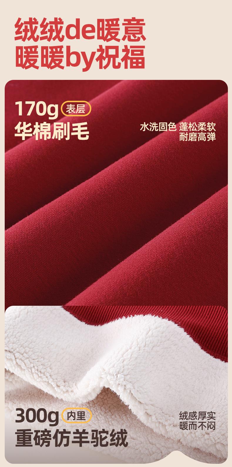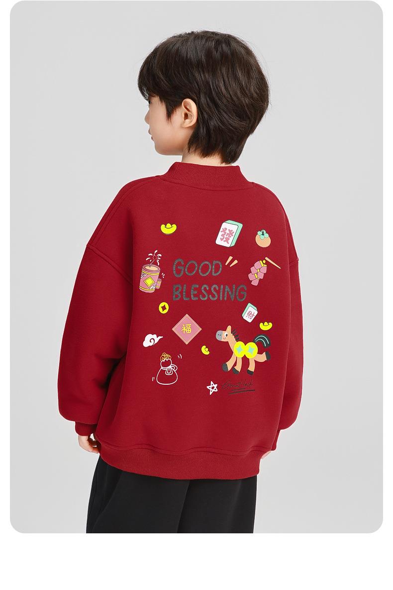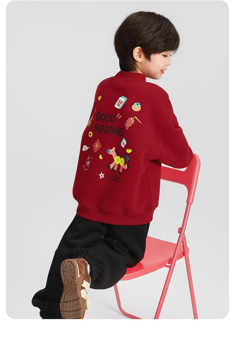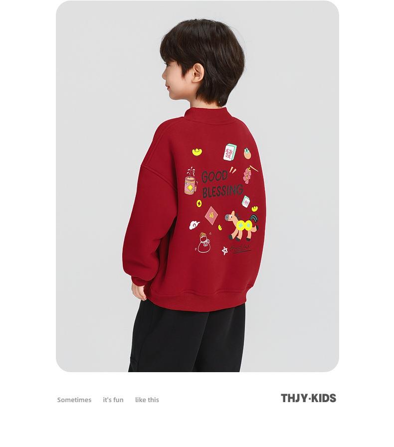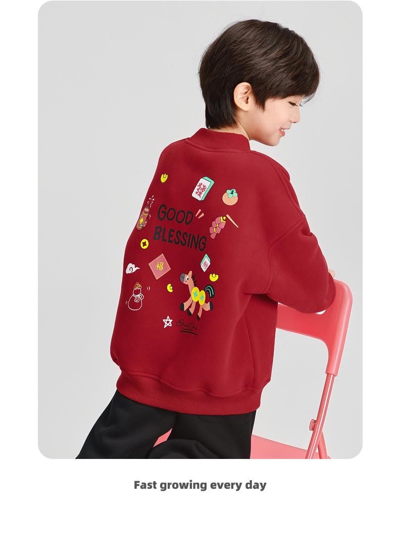 男童加绒卫衣2025冬装新款冬款儿童加绒一体绒保暖红色圆领上衣
