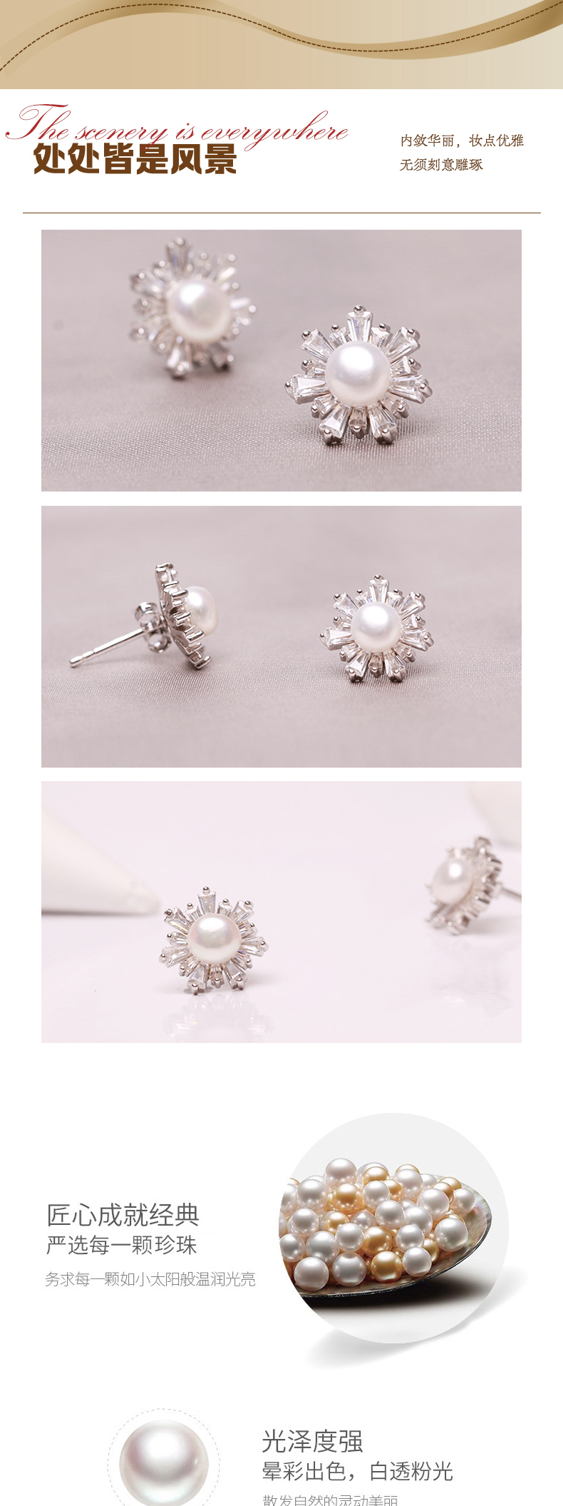 美裕 银925淡水珍珠耳钉 9-10mm白106569