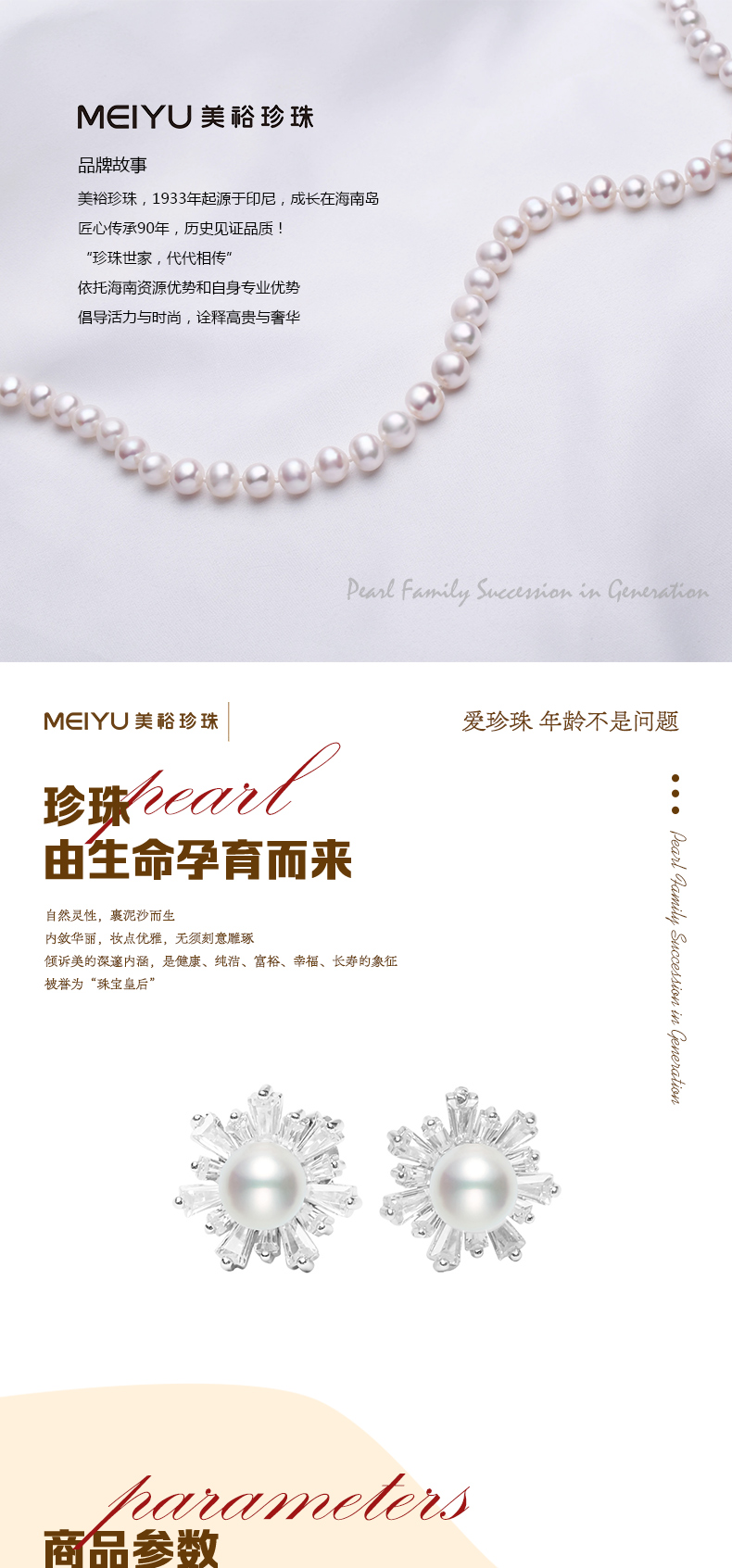 珍珠世家,代代相传。美裕珍珠,1933年起源于印尼,成长于海南岛。依托海南资源优势和自身专业优势,以经营南珠、南洋珠为主,专注于珍珠文化的挖掘和传播,把珍珠代表的爱意,永不间断地传承下去。