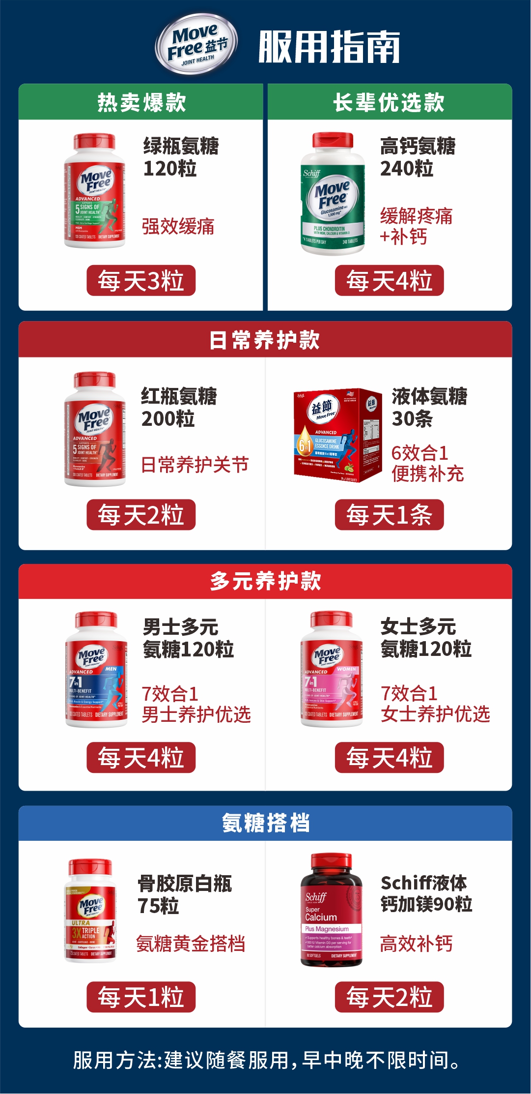 【氨糖专场】美国进口Move Free益节氨糖软骨素系列 红瓶日常养护 绿瓶添加缓痛因子 高钙氨糖添加钙和维生素D3 骨胶原 液体钙加镁吸收钙利用钙