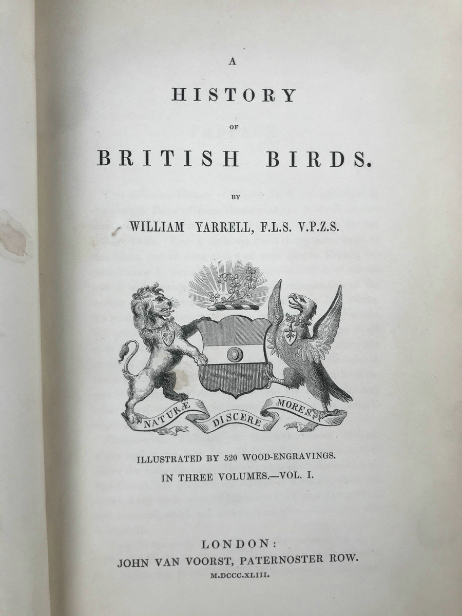 1843年 亚雷尔 英国鸟类史(卷1) 约170幅木版画插图 漆布精装18开