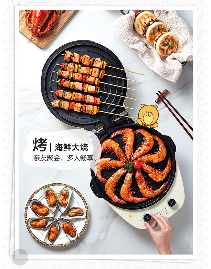 小熊/BEAR电饼铛家用加大加深可拆卸拆洗双面加热悬浮可定时调温烙饼 DBC-C13F1