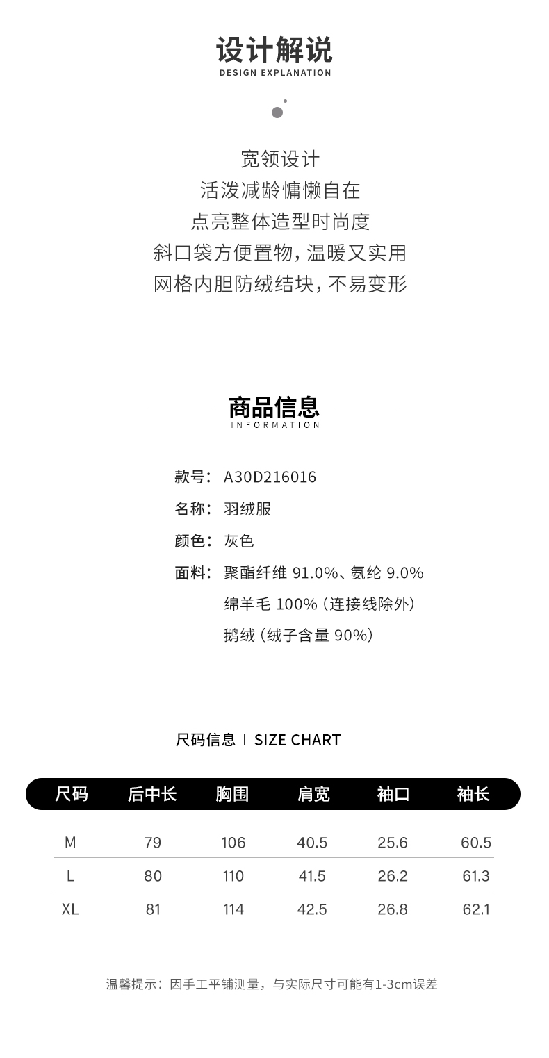【商场同款】阿菁娜冬季新款宽领羽绒服减龄不臃肿A30D216016