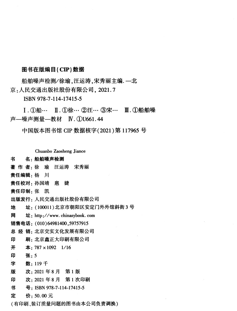 书名:船舶噪声检测 船舶检修检测服务人员培训教材丛书