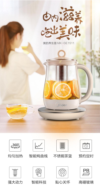 美的(510713)MK-GE1511)电水壶 MK-GE1511 GE1511a 纯色注塑