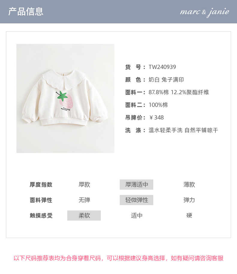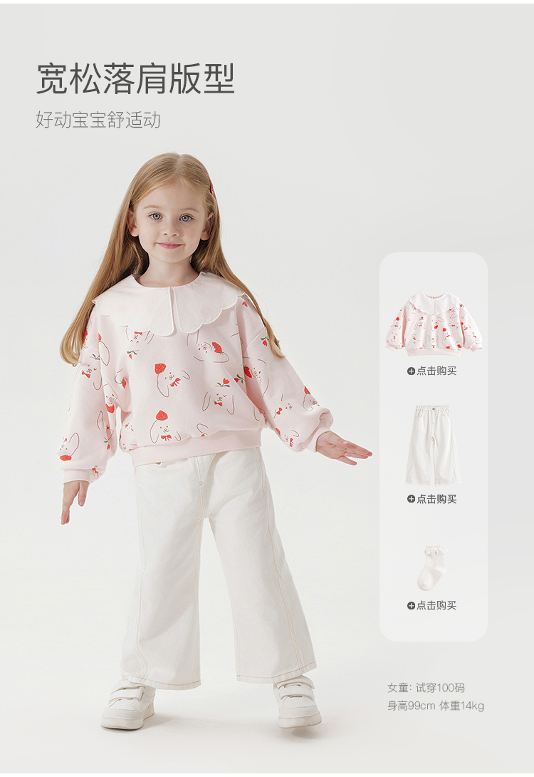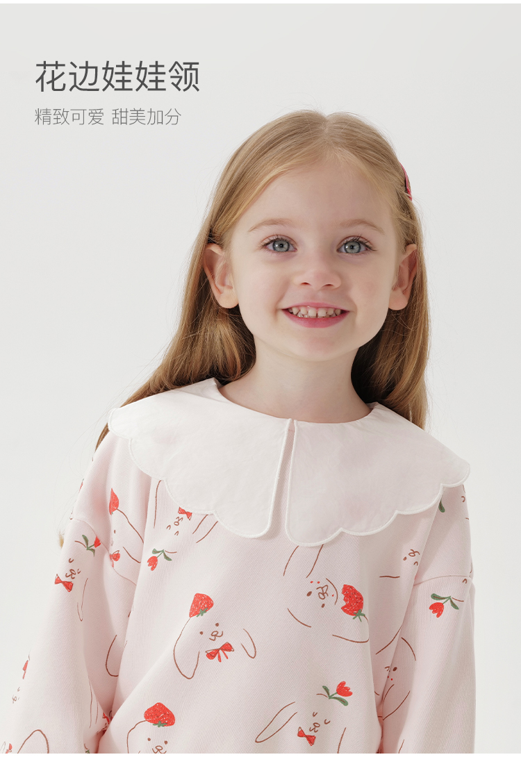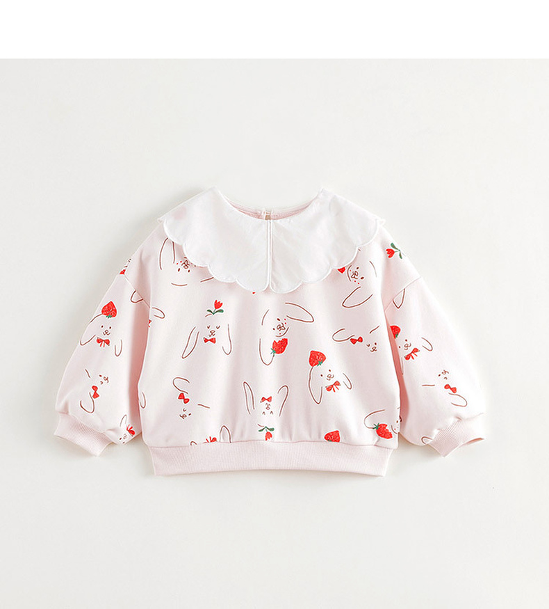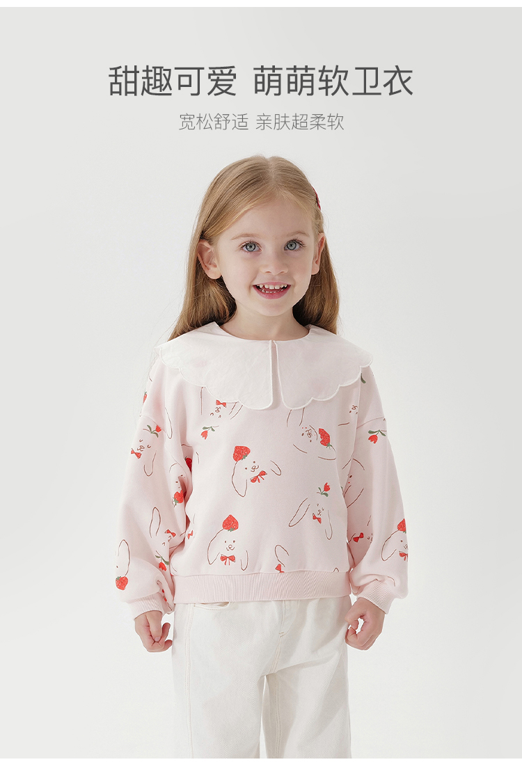 马克珍妮女童甜美兔子满印娃娃领卫衣儿童上衣2024秋装新款240939