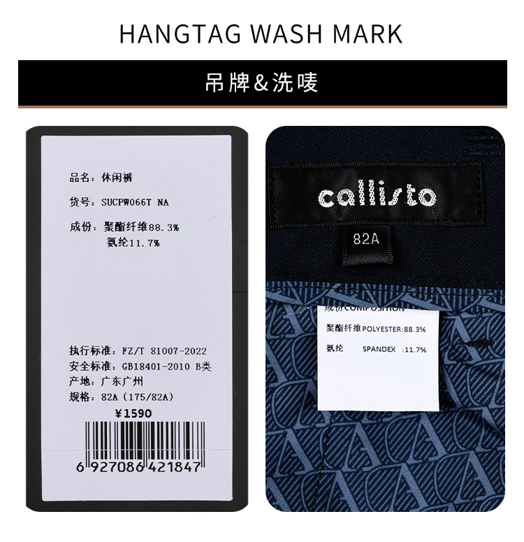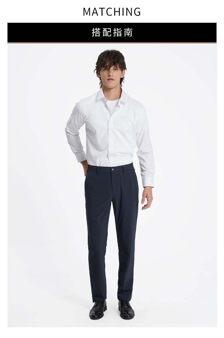callisto藏青色高弹力直筒休闲裤