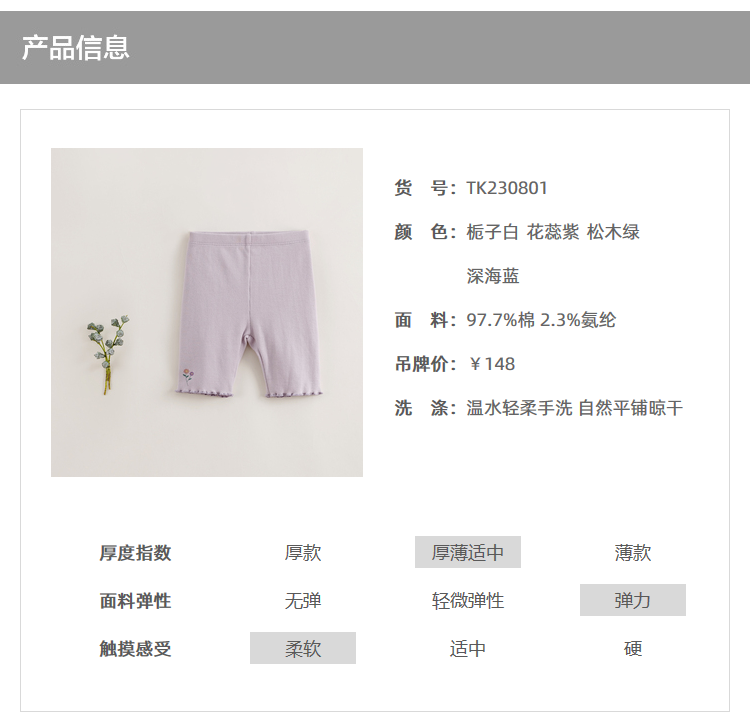 【马克珍妮 芦芙】夏装新款 女童弹力针织五分打底裤230801