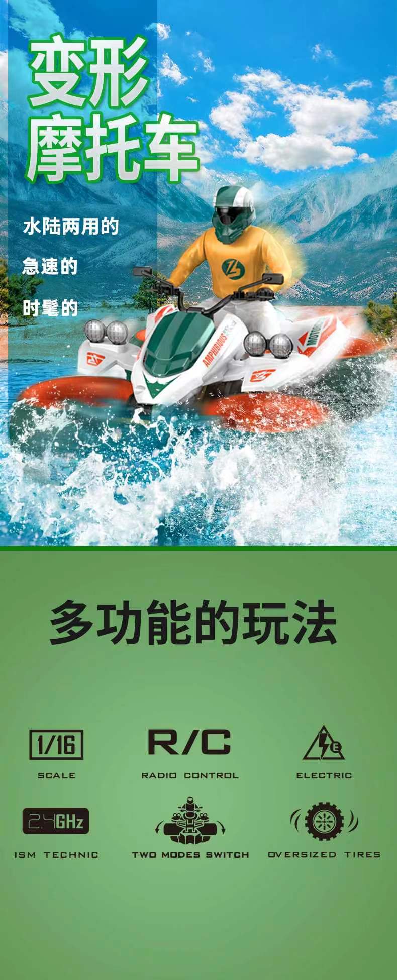 Crazon振成 水陆两用遥控摩托车 101516