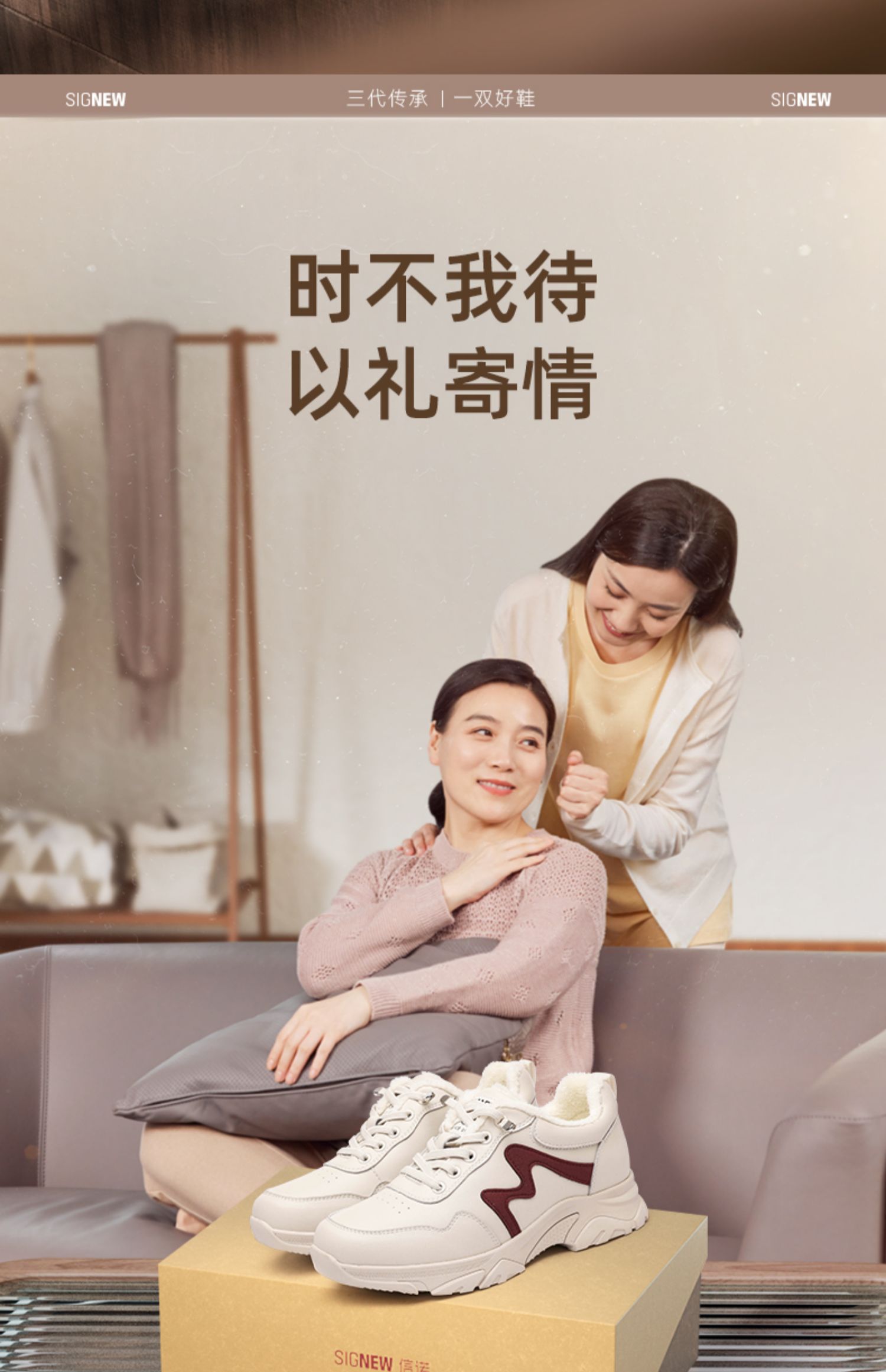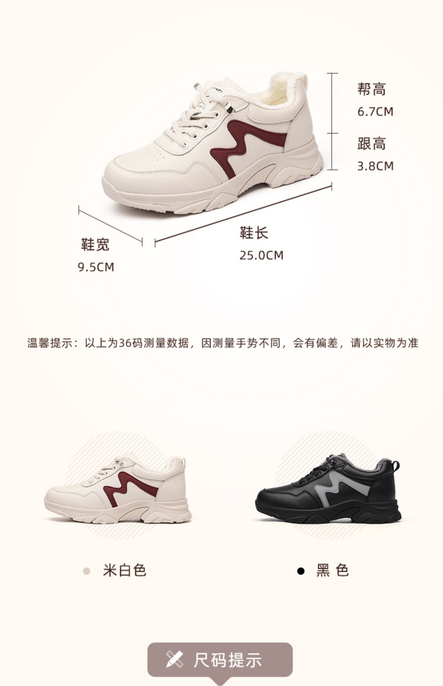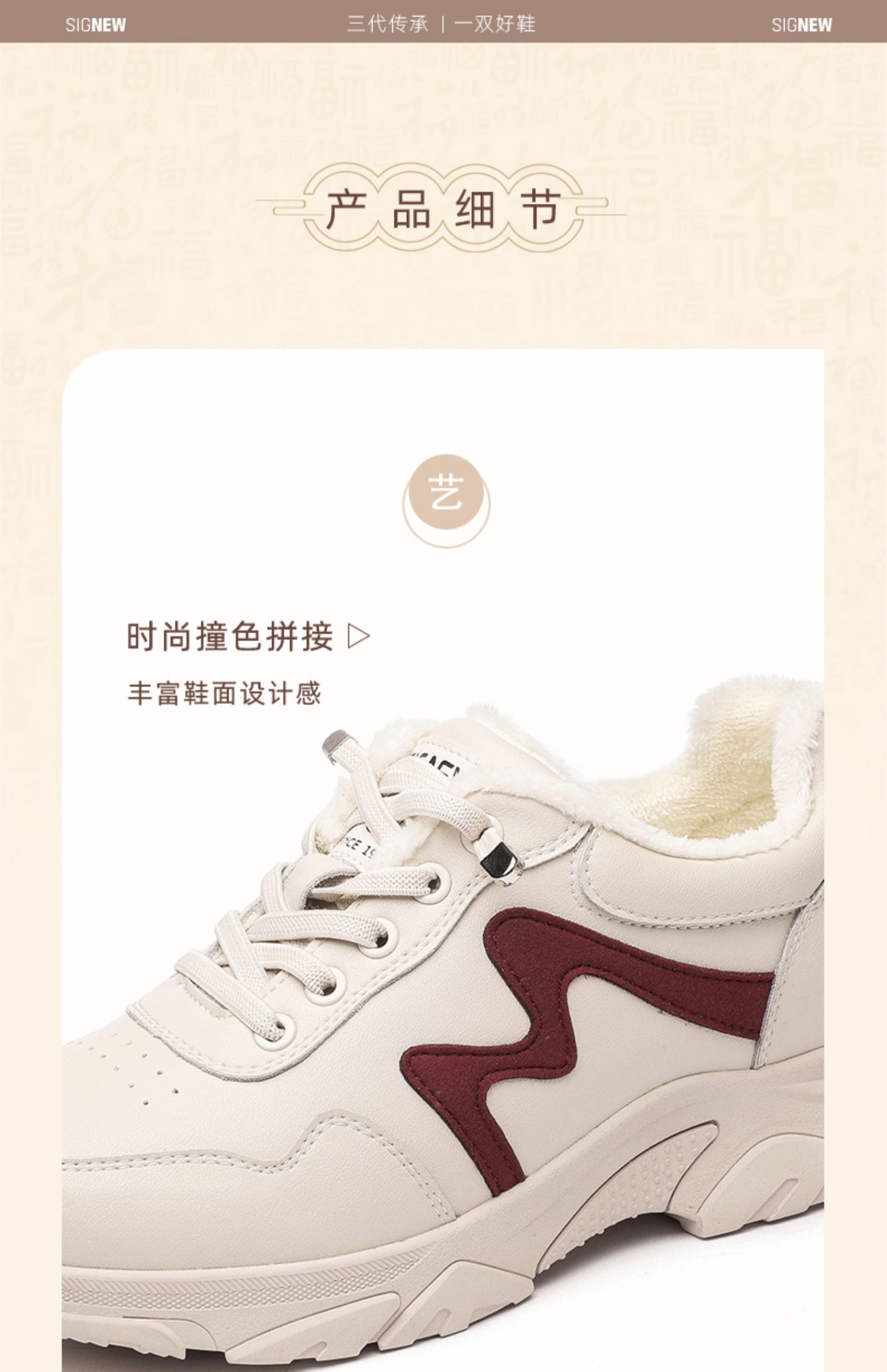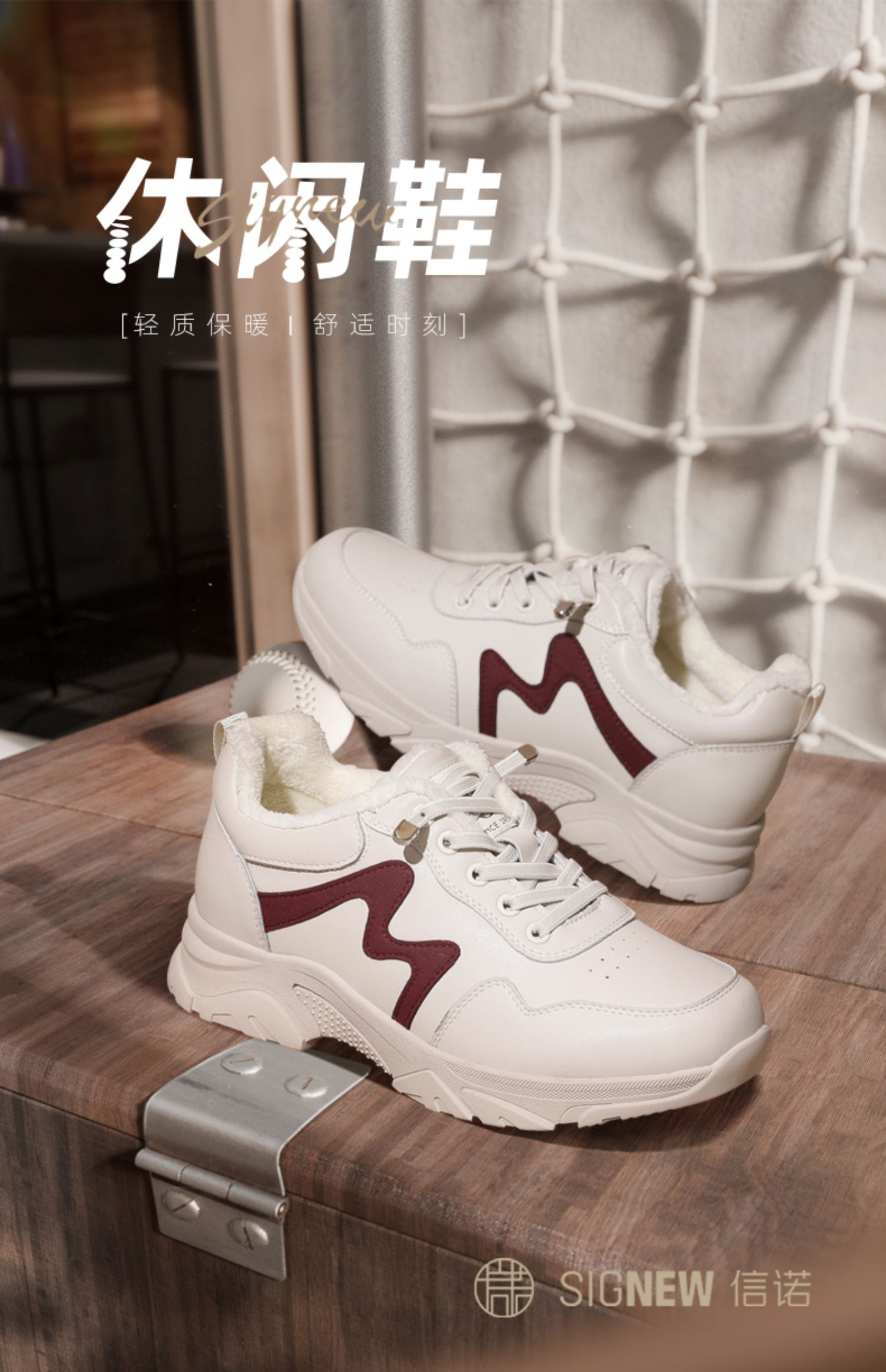 信诺舒适休闲鞋女款2024冬季新款加绒棉鞋妈妈鞋小白鞋软底运动鞋M198-15Z