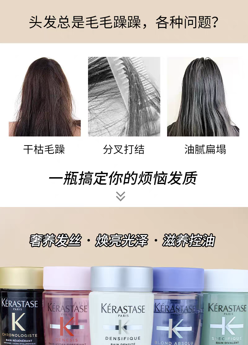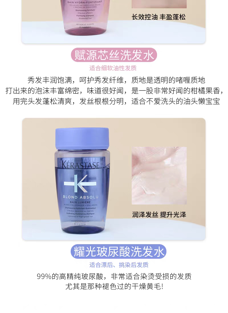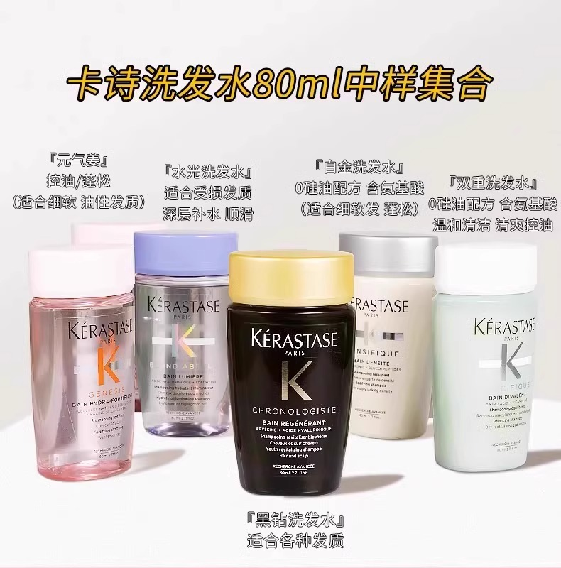 卡诗 洗发水中样 80ml*3 双重白金元气姜耀光控油柔顺修护