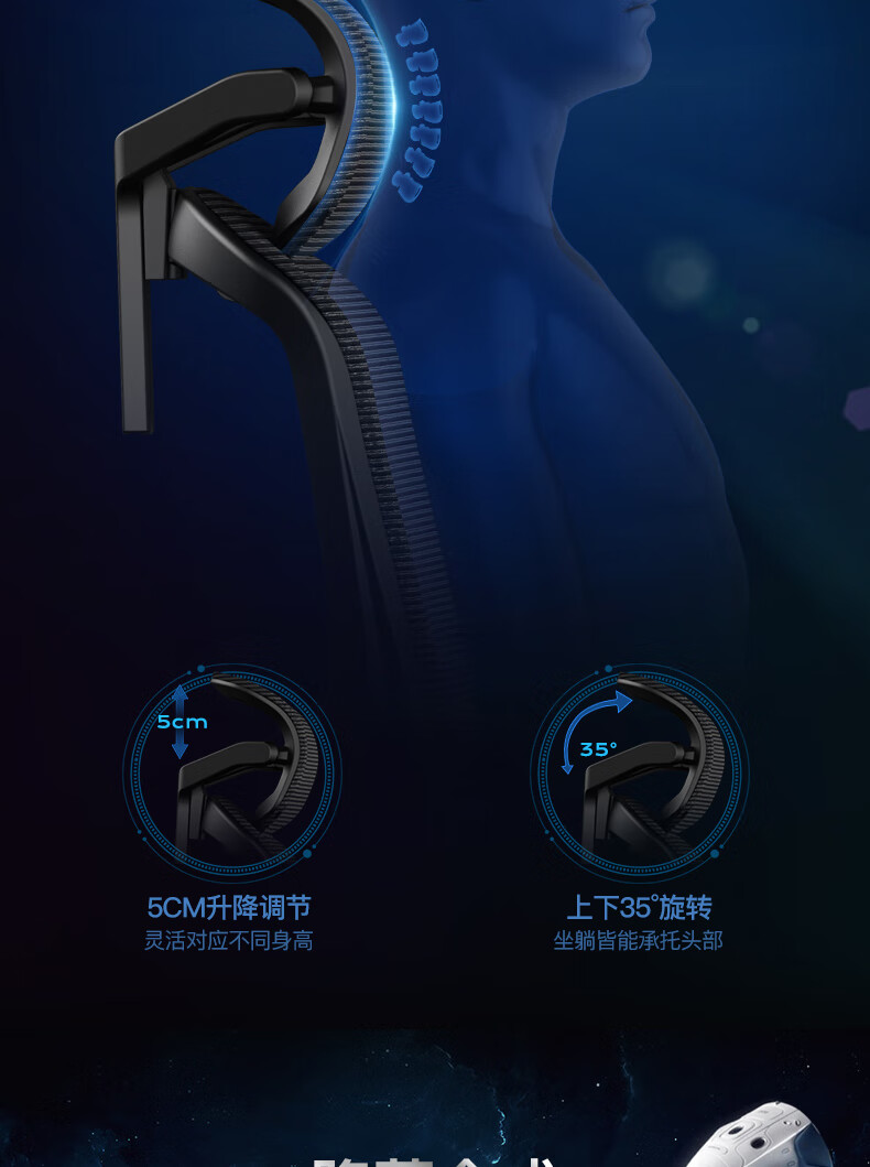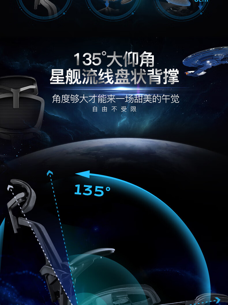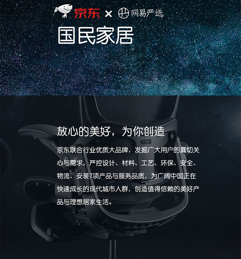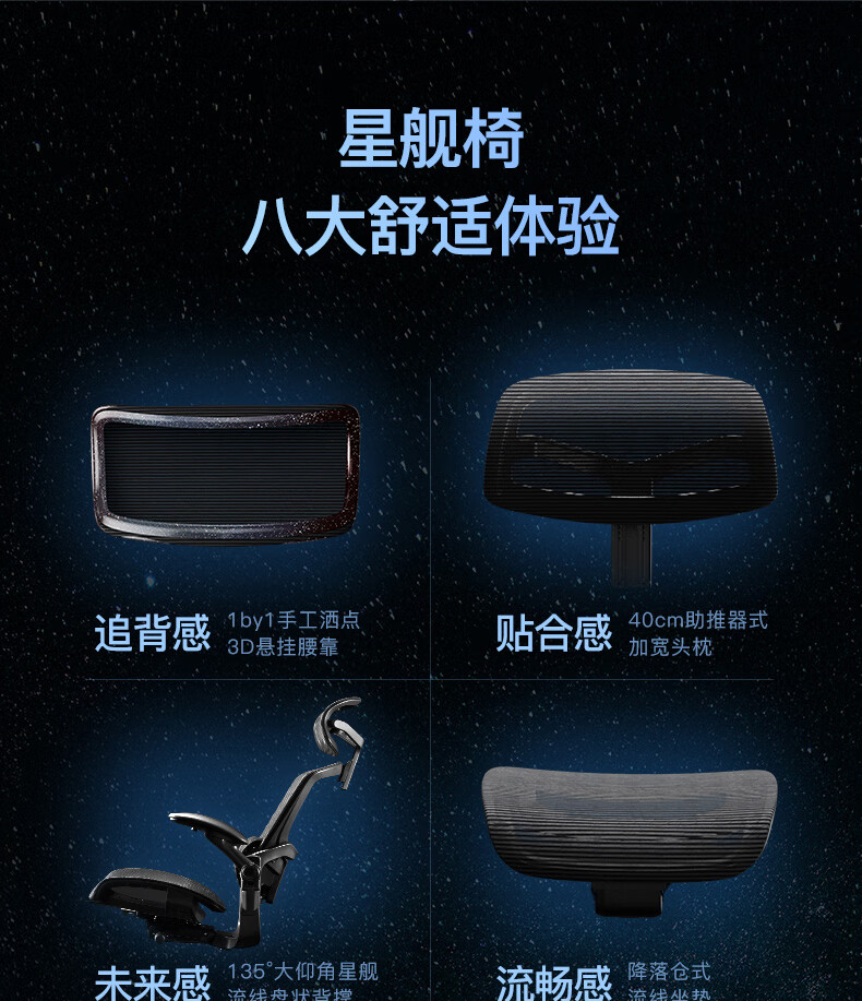 网易严选星舰椅人体工学电脑椅3D悬挂腰靠办公椅老板椅电竞椅靠背家用可躺旋转椅子 坐躺两用【国民家居】