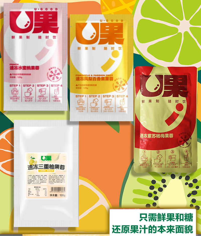 U果速冻三重柚果蓉柚子浓缩汁餐饮咖啡奶茶店商用果汁即冲定量包