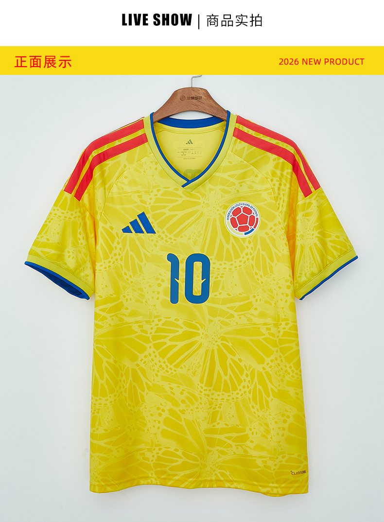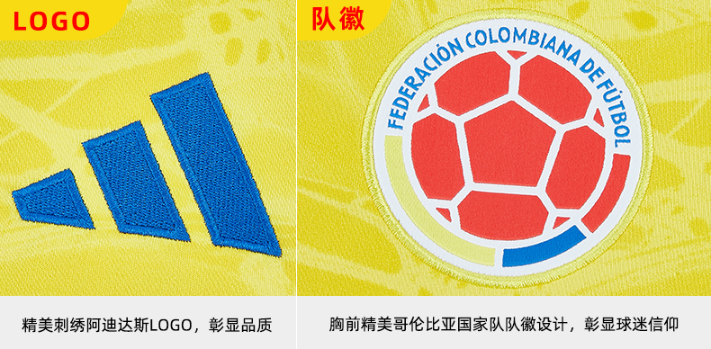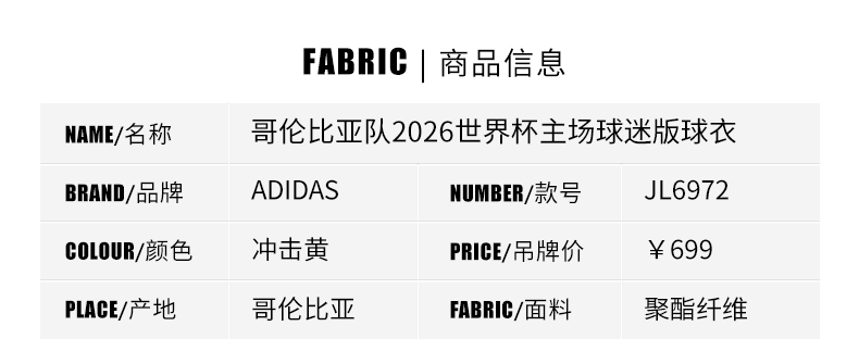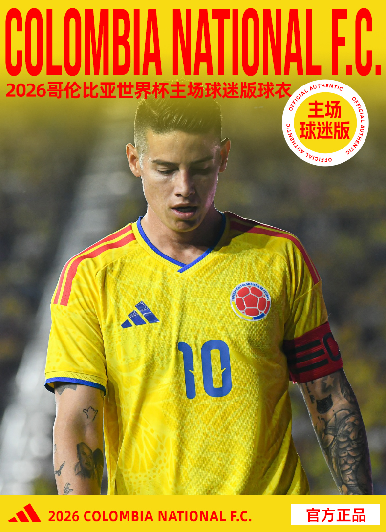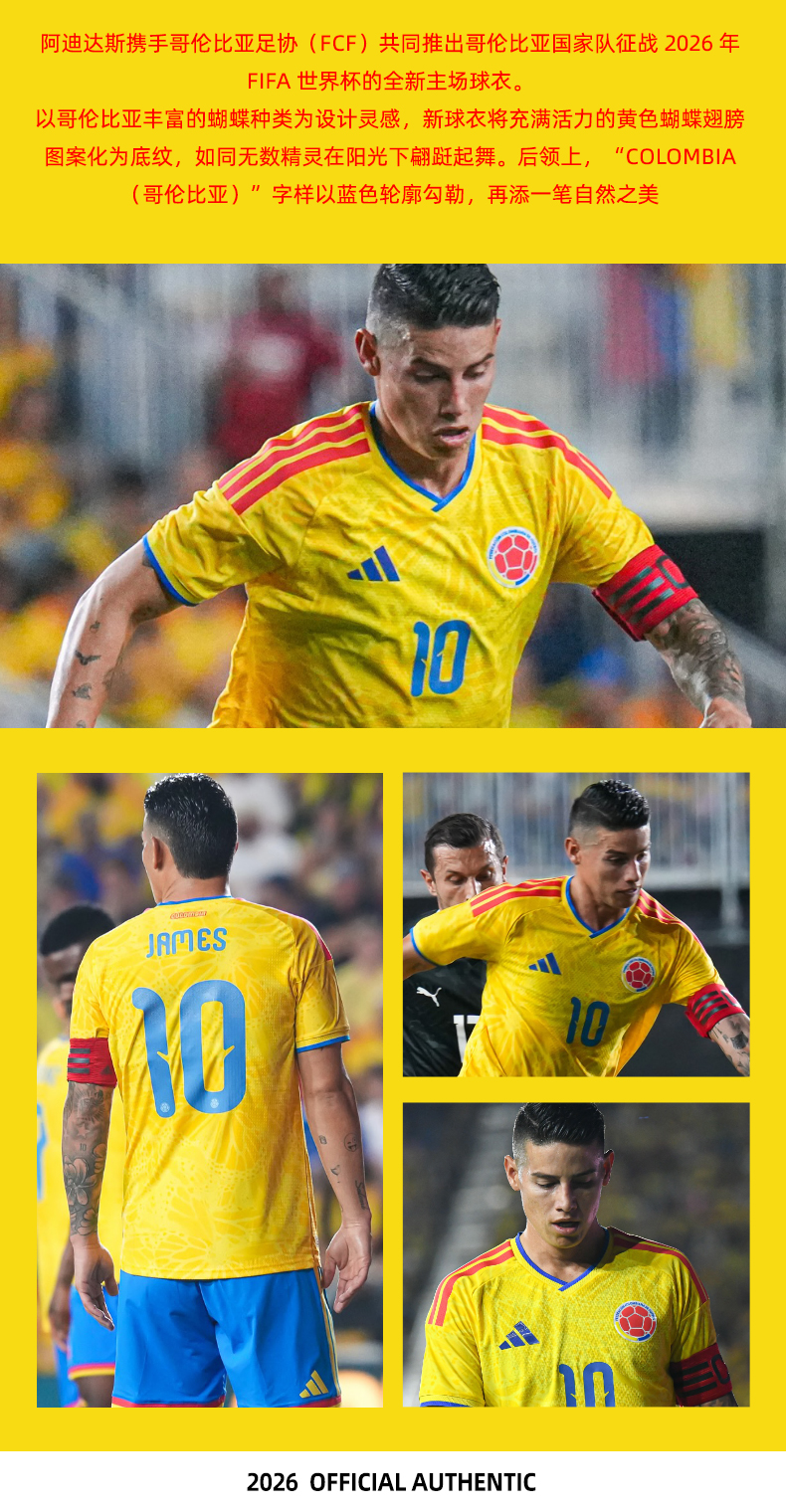SFS阿迪达斯2026世界杯哥伦比亚主场球迷版球衣足球服男子 JL6972