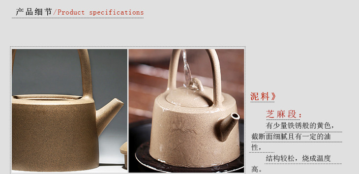 原矿紫砂茶壶宜兴名家全手工功夫茶具芝麻段泥曼生提梁茶壶