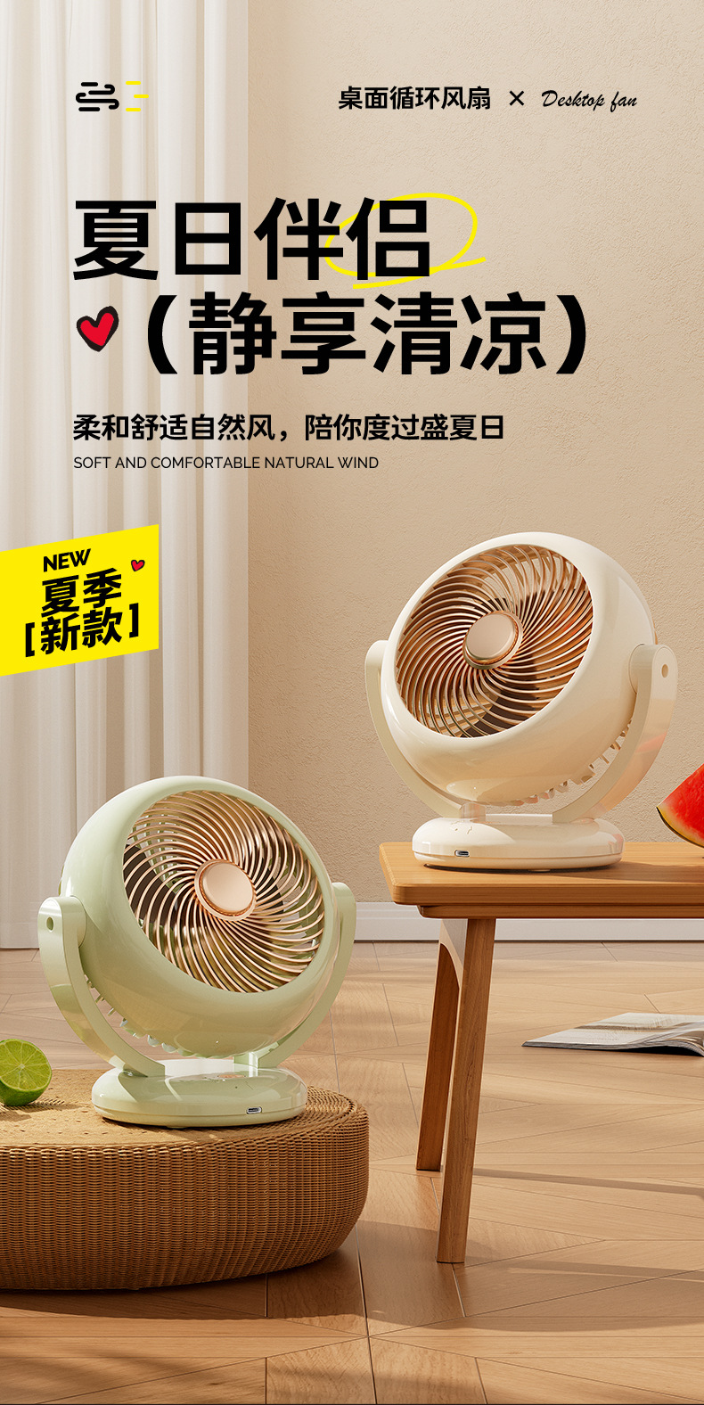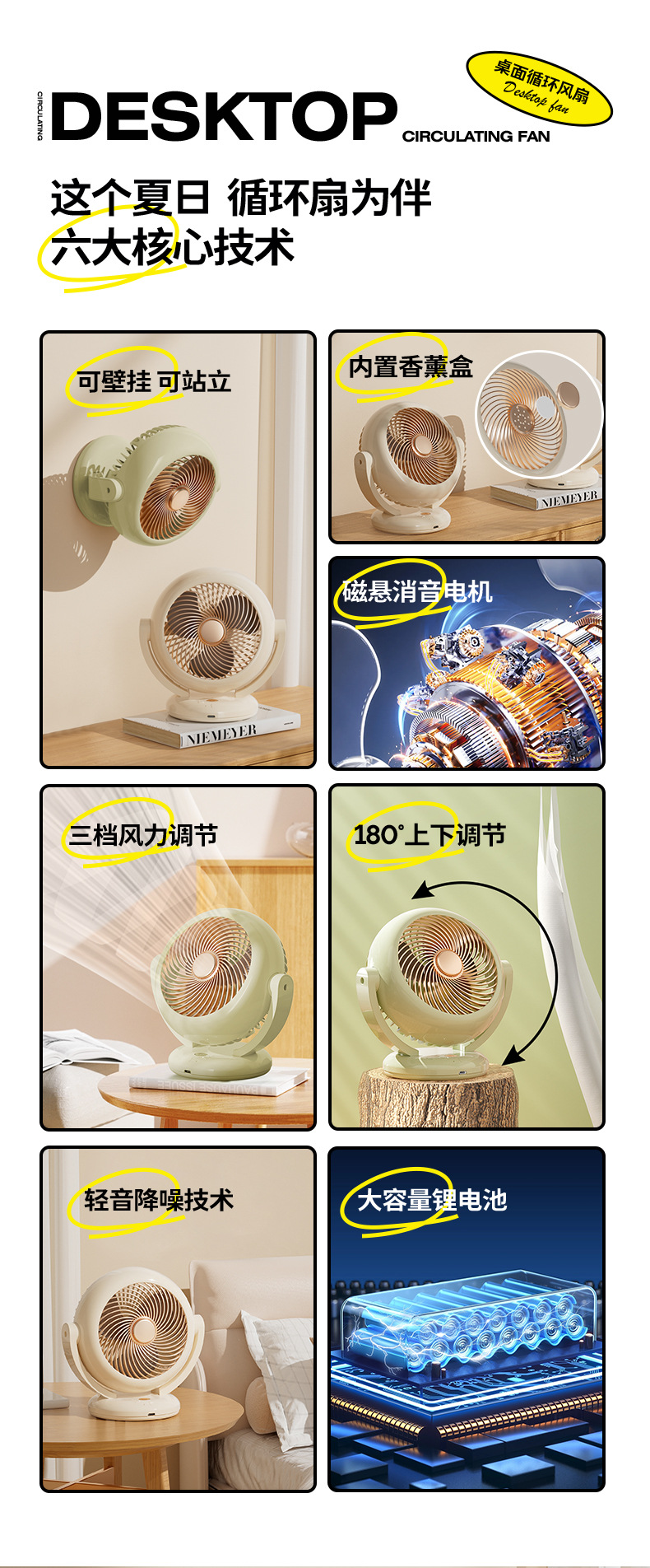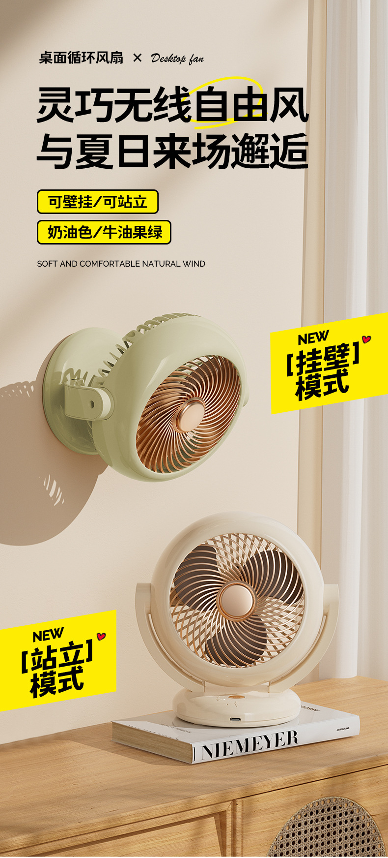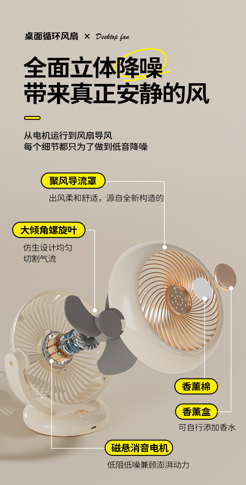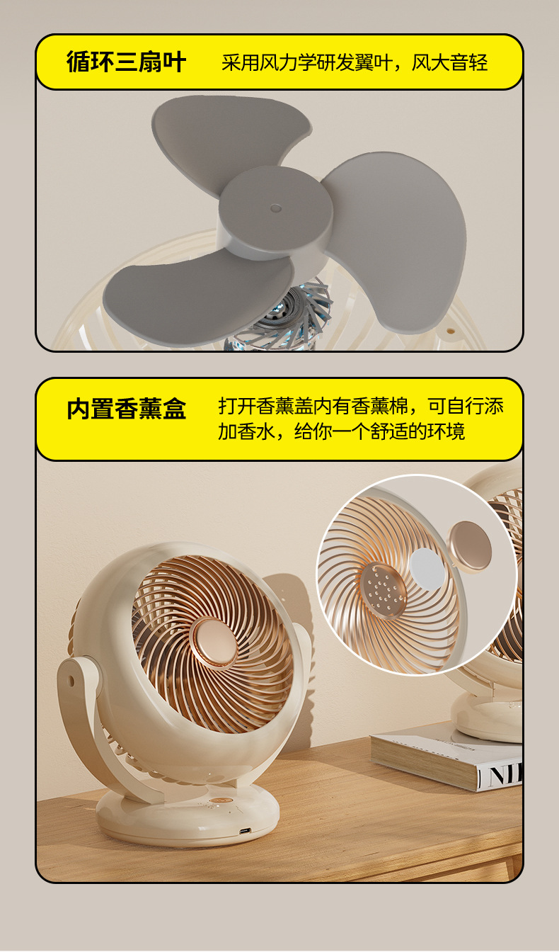 【夏季新品❗️空气循环桌面风扇】轻音无噪,可香薰/可挂壁/可站立,摇头迷你充电款长续航便携式小风扇台式usb
