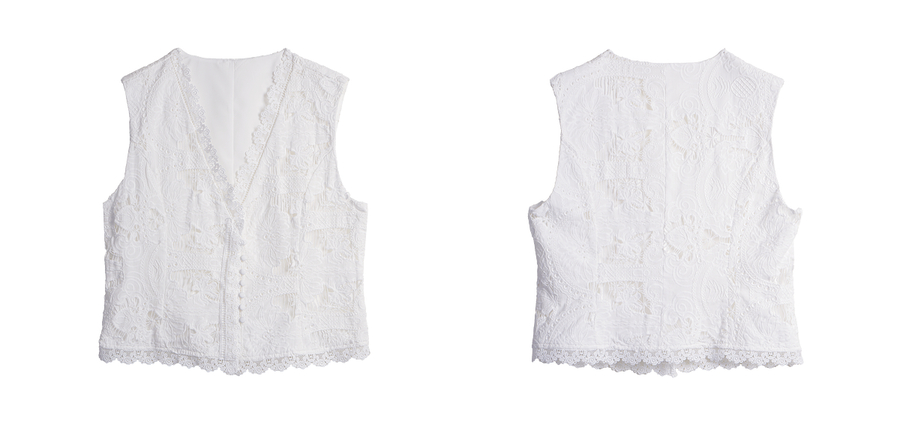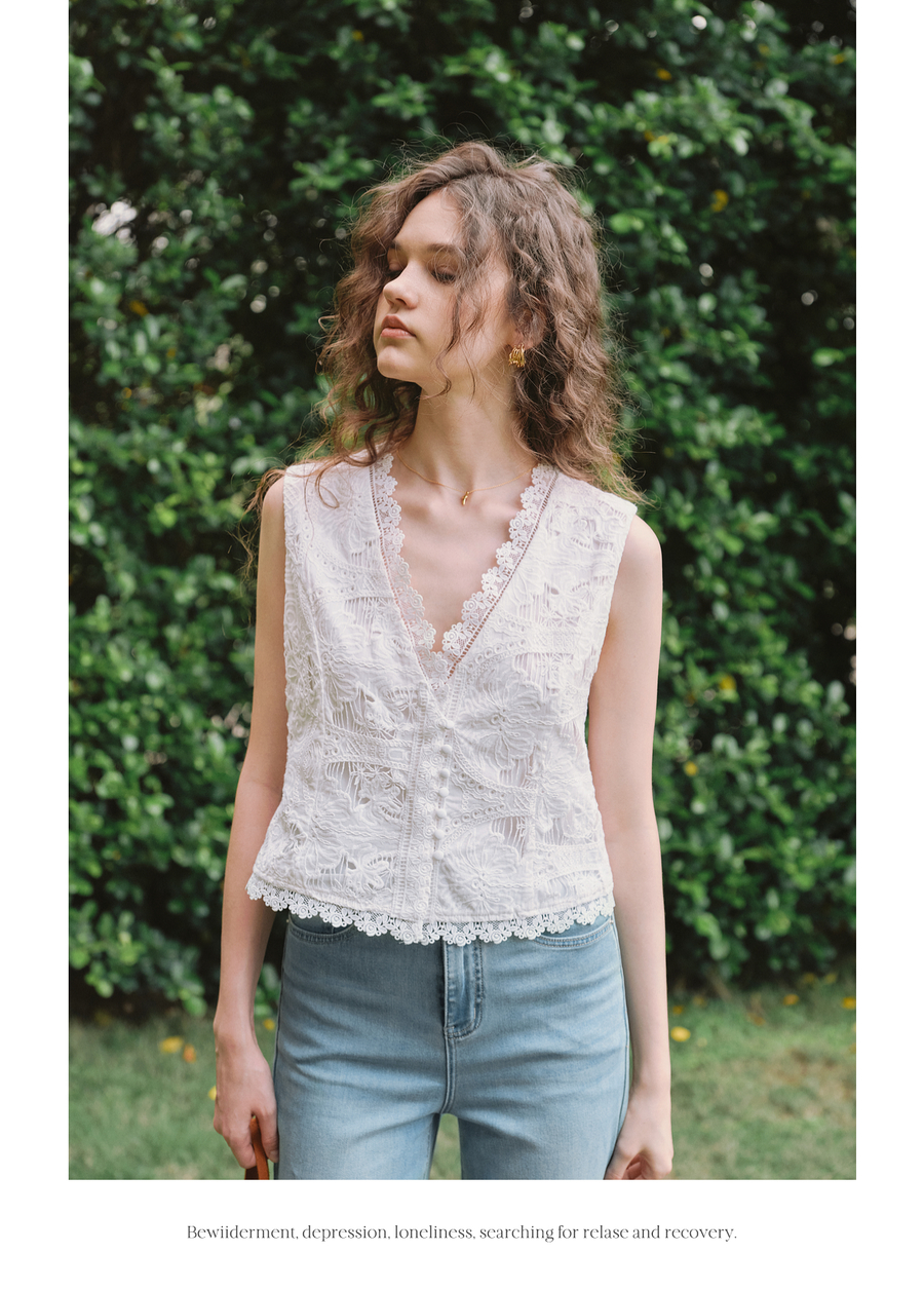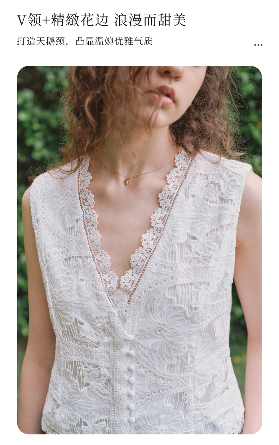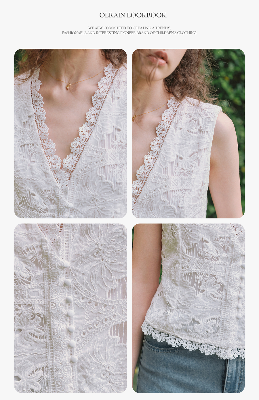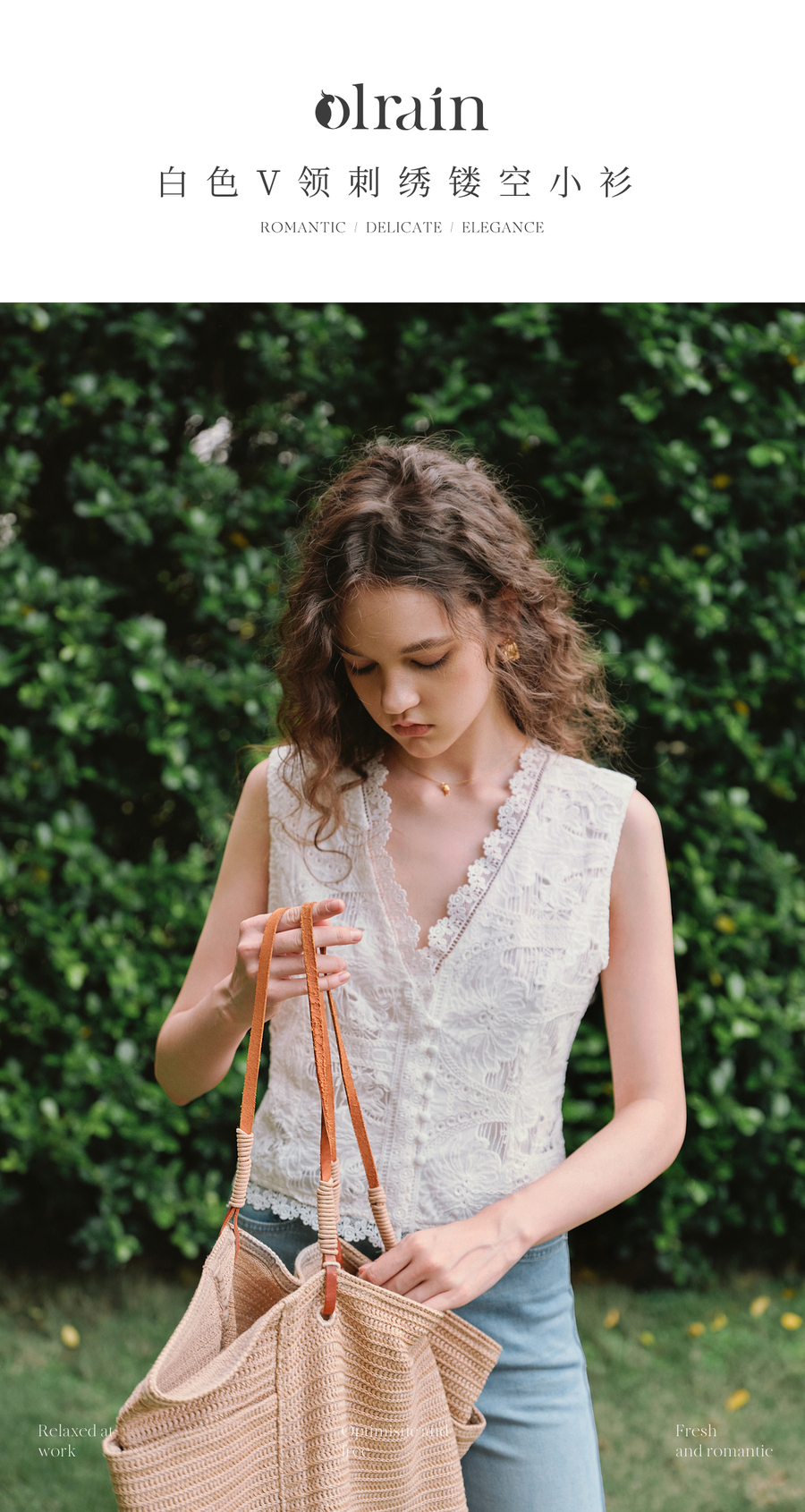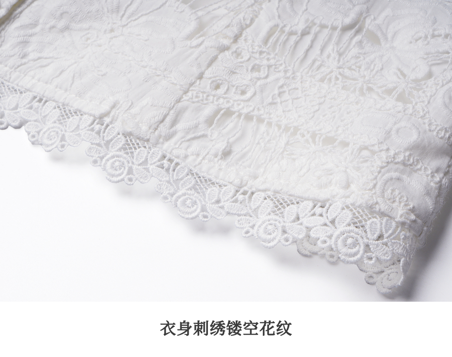 OLrain欧芮儿2025夏季新款白色V领刺绣镂空小衫V领精緻花边上衣女
