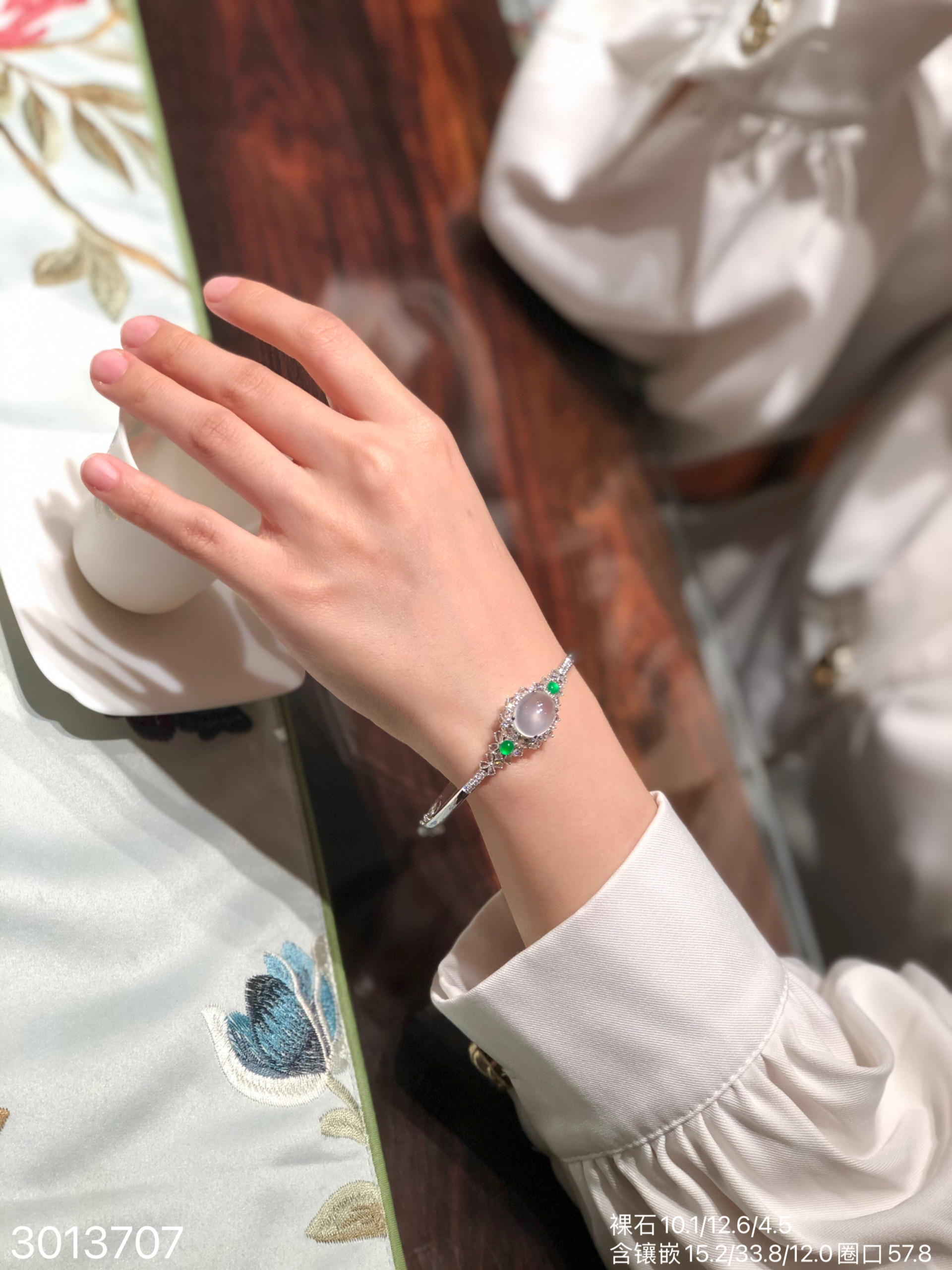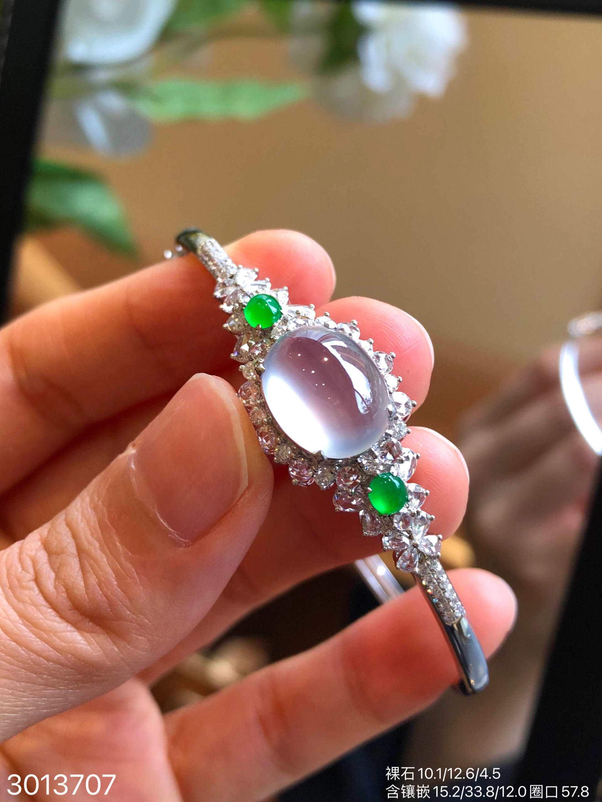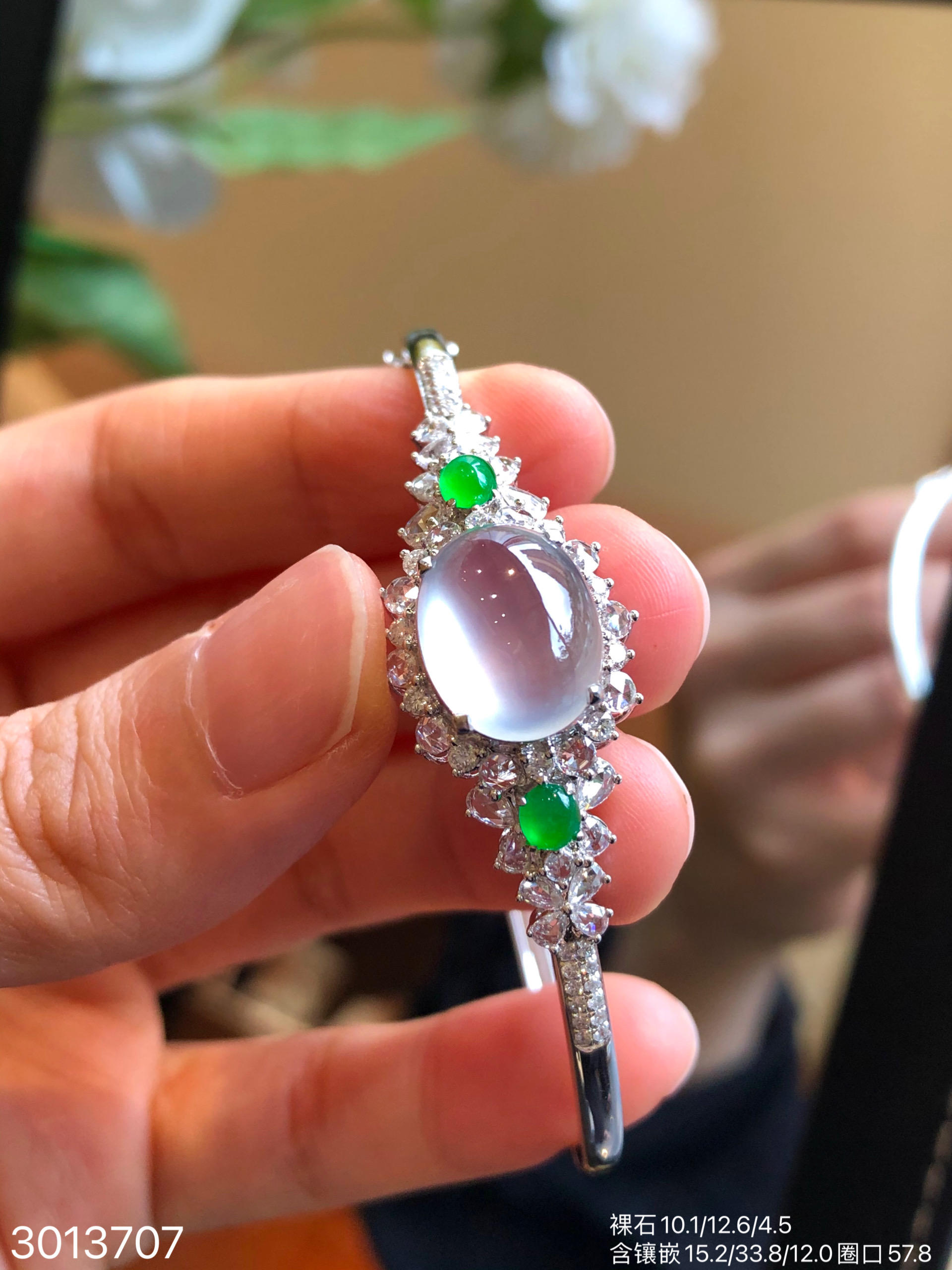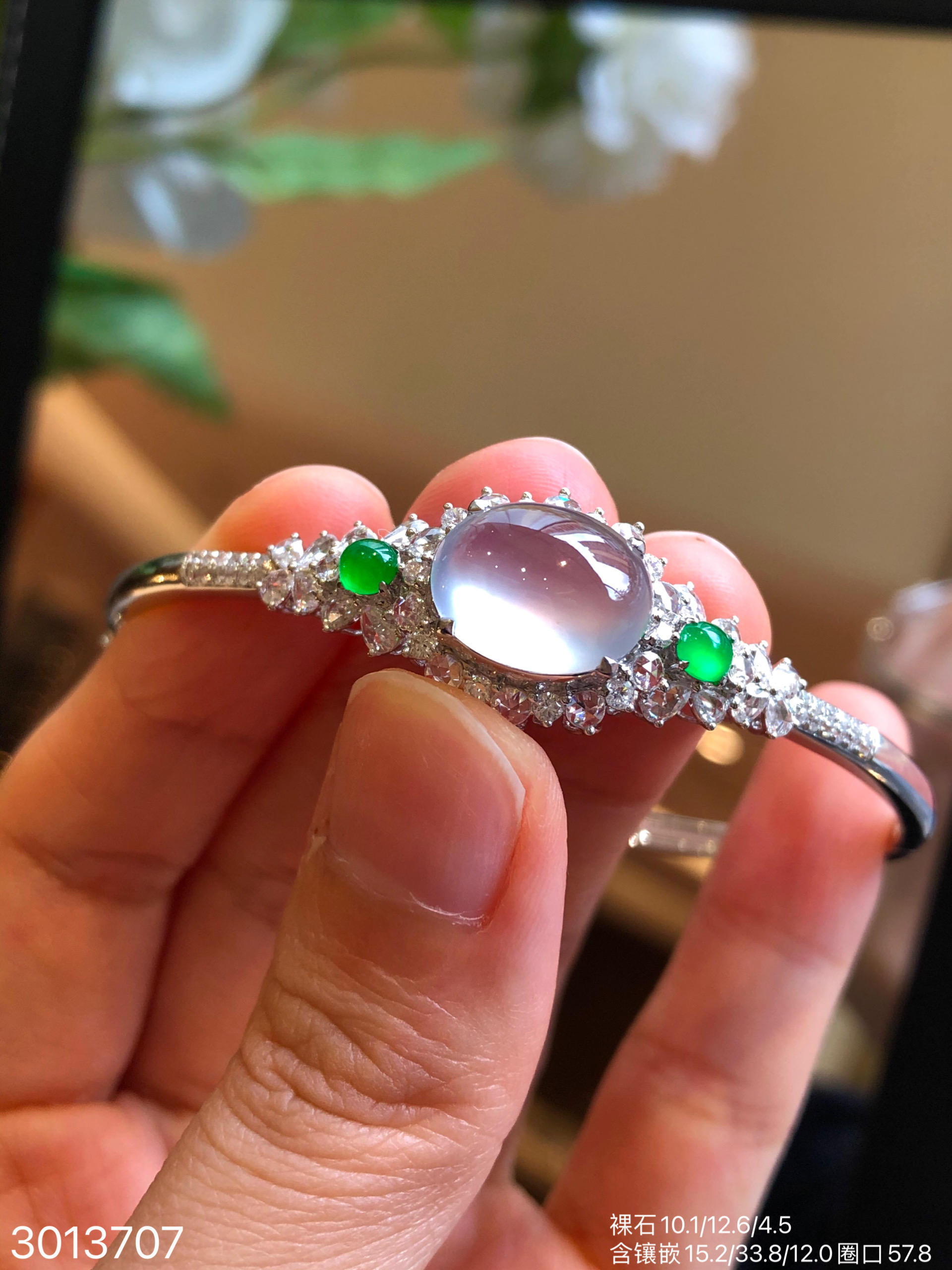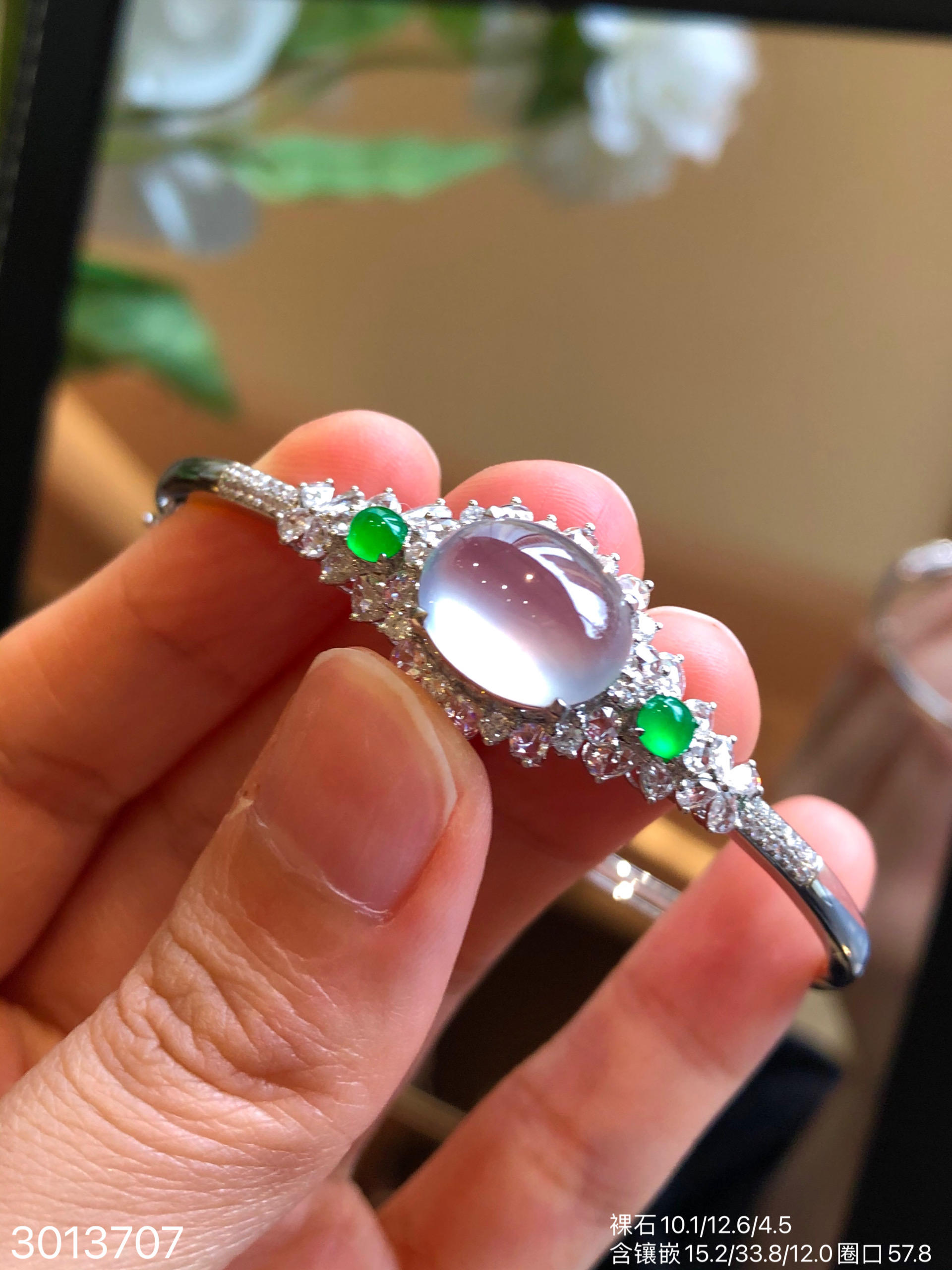 3013707,玻璃蛋面手镯。圈口57.8。 具体价格微信咨询