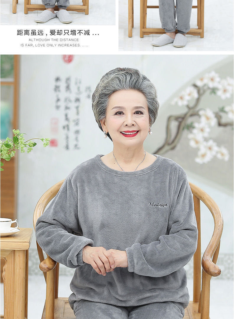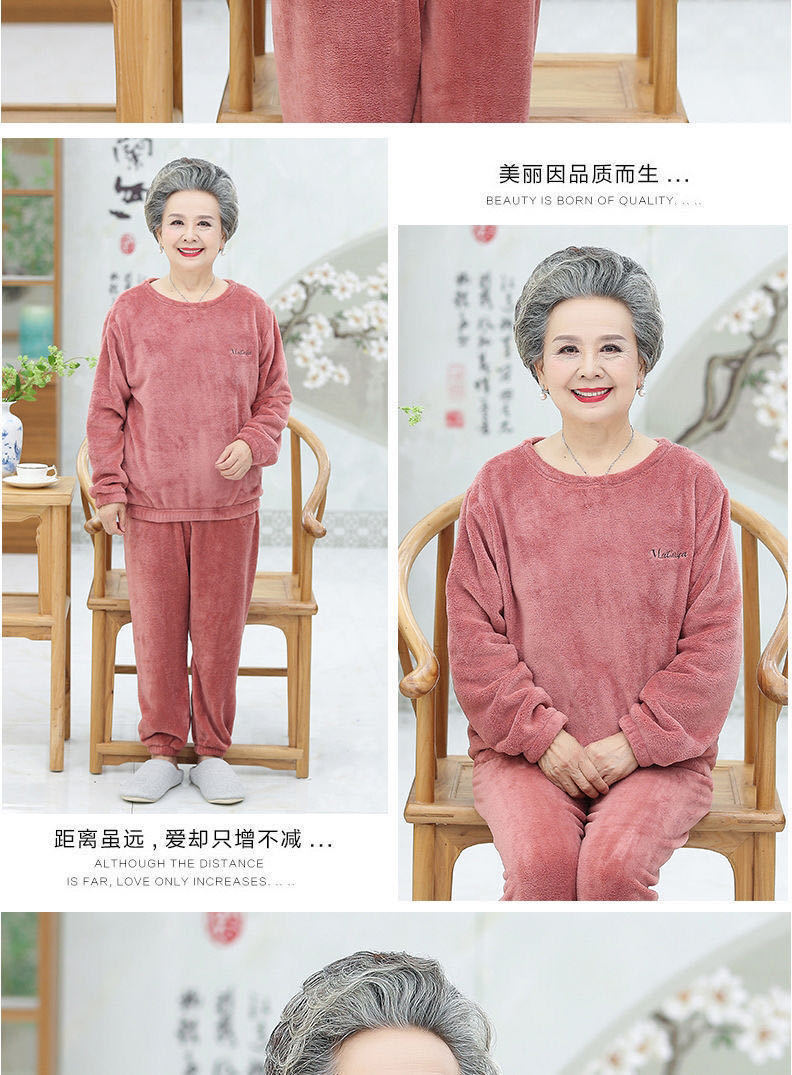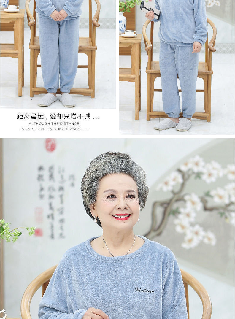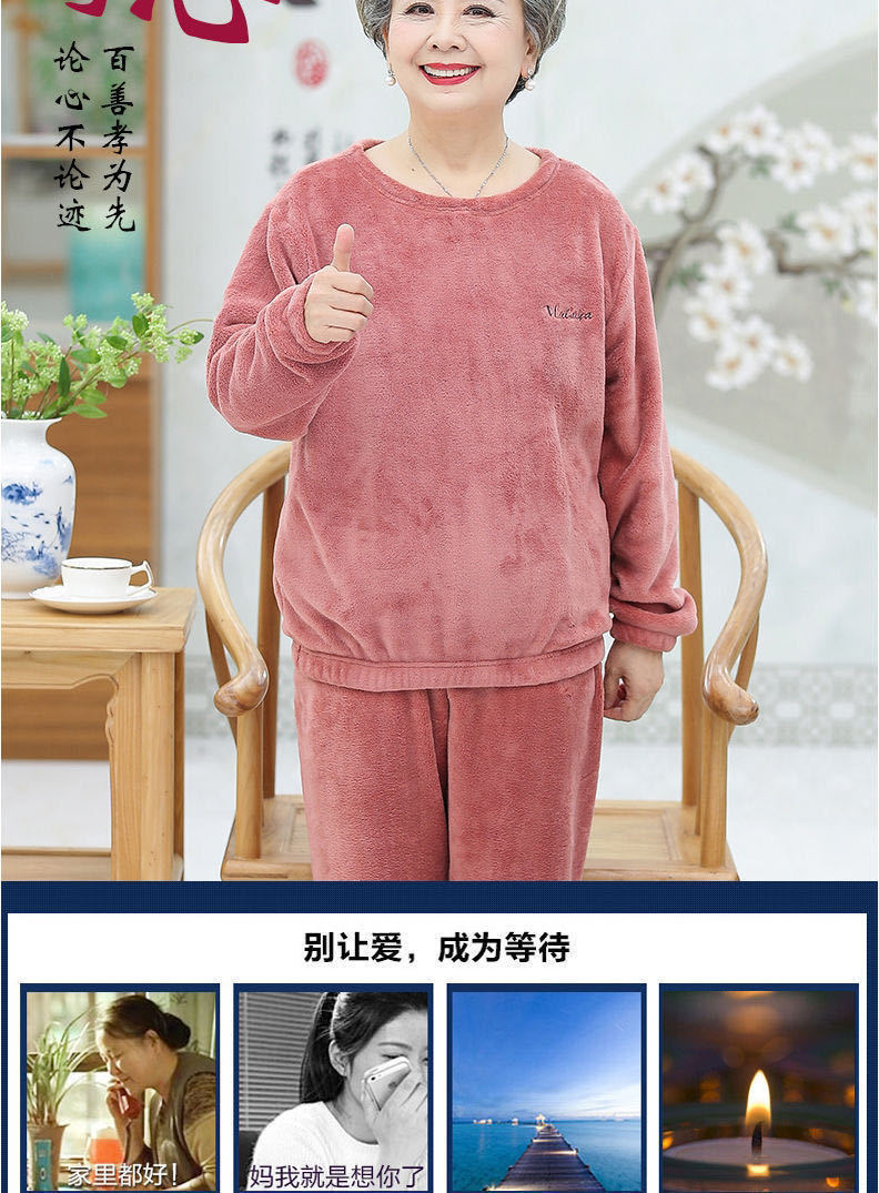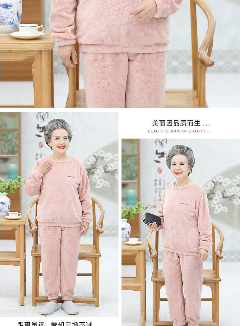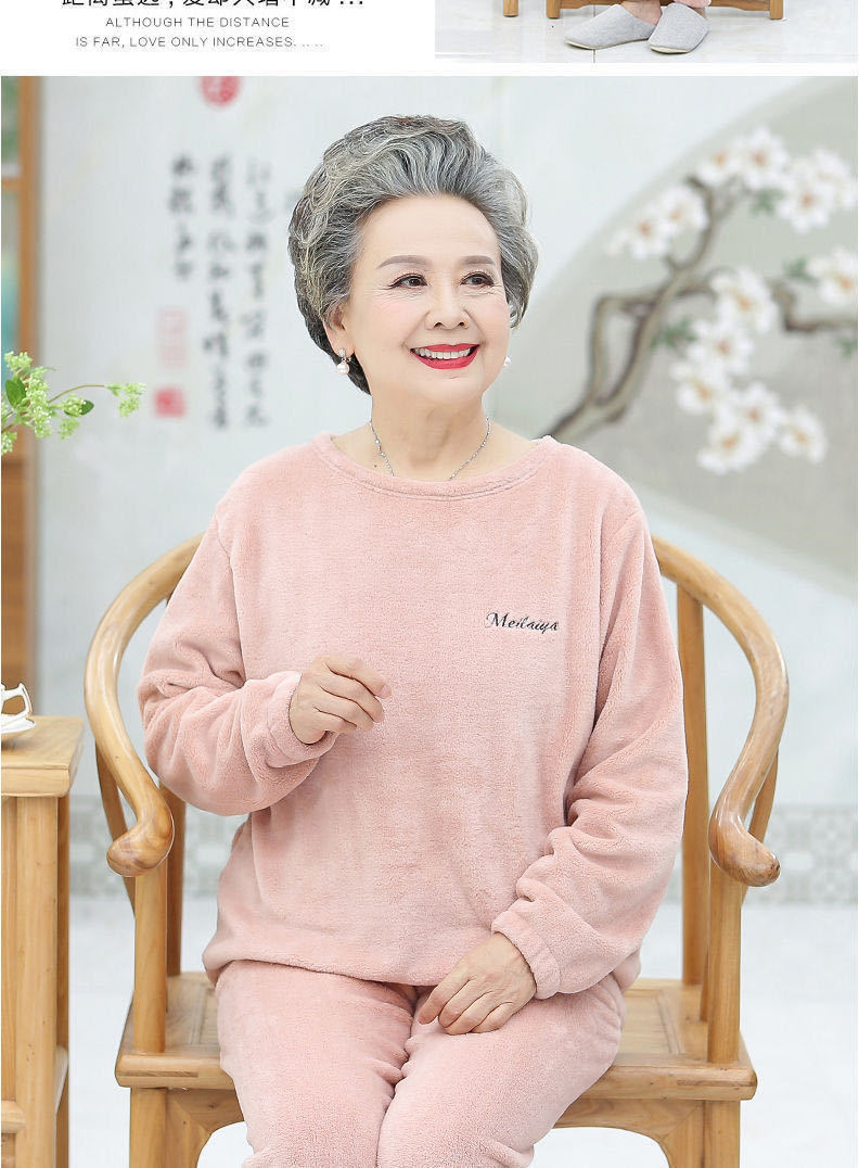 中老年人睡衣女珊瑚绒家居服冬季加绒加厚保暖套装奶奶装大码睡衣
