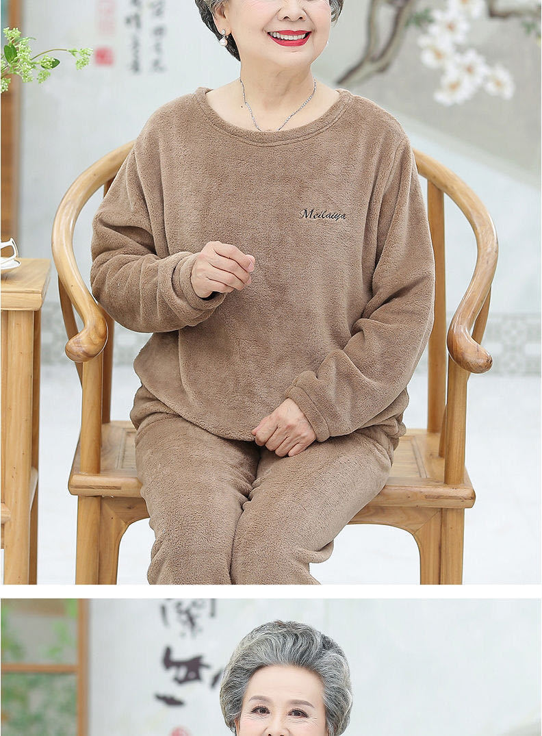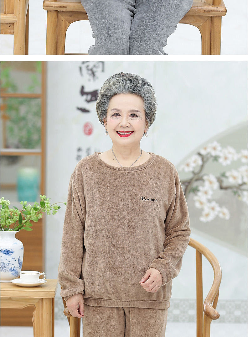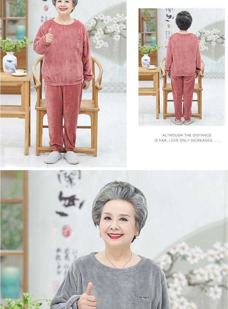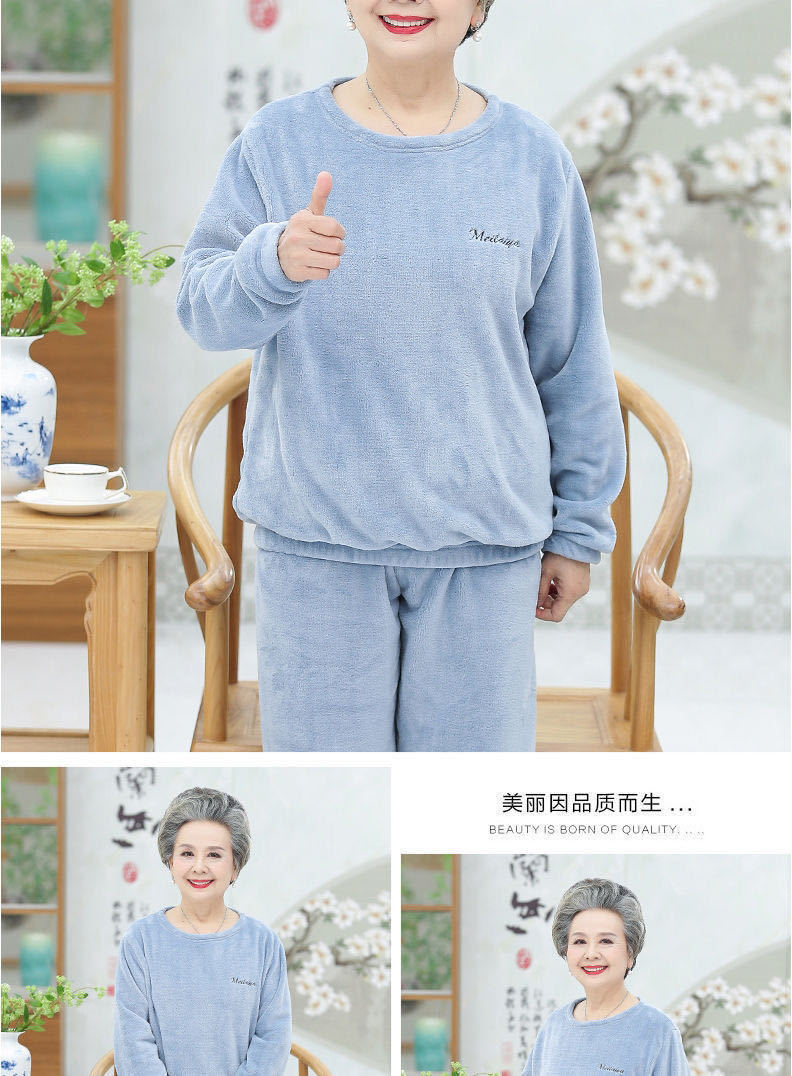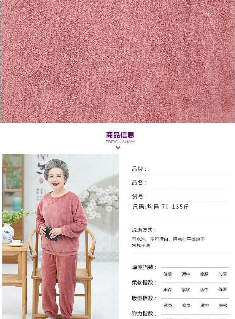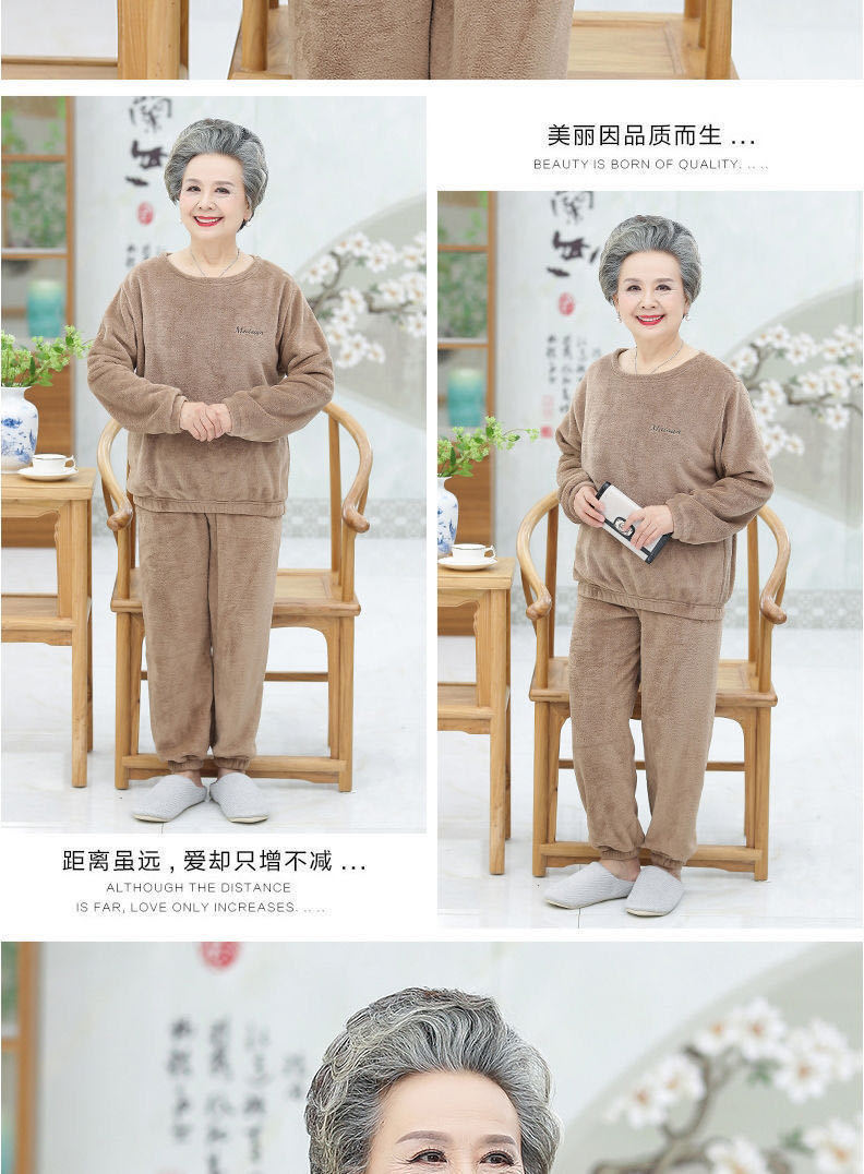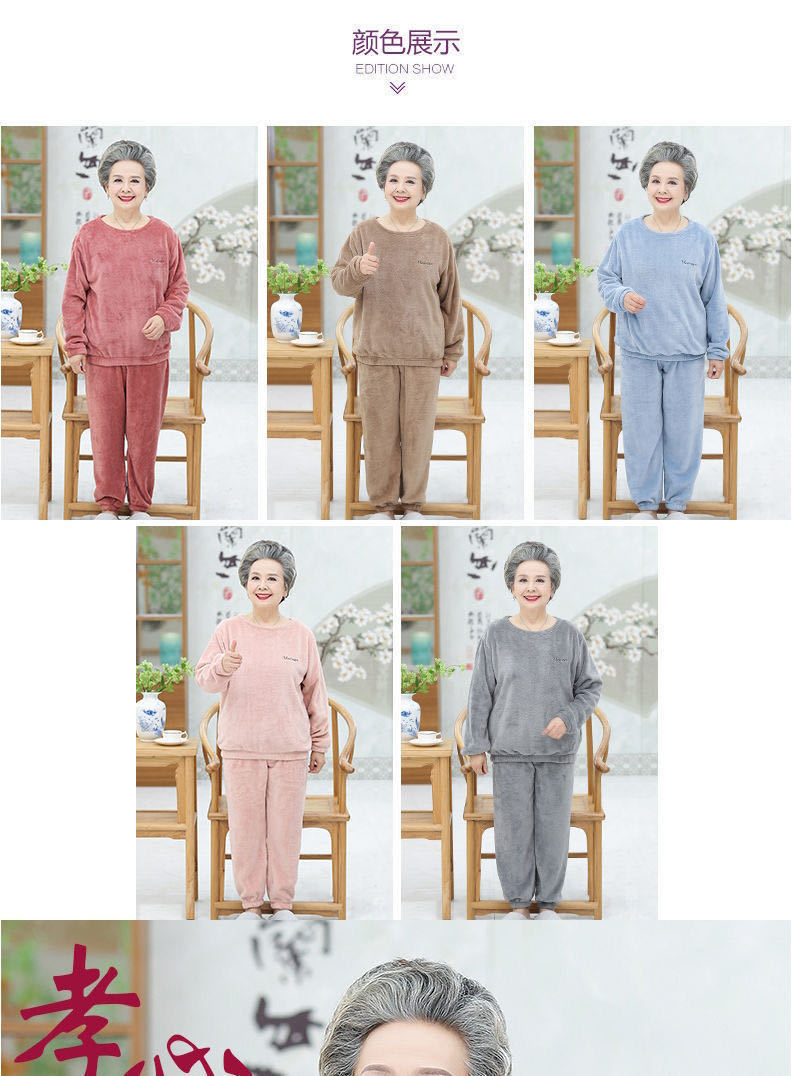 中老年人睡衣女珊瑚绒家居服冬季加绒加厚保暖套装奶奶装大码睡衣