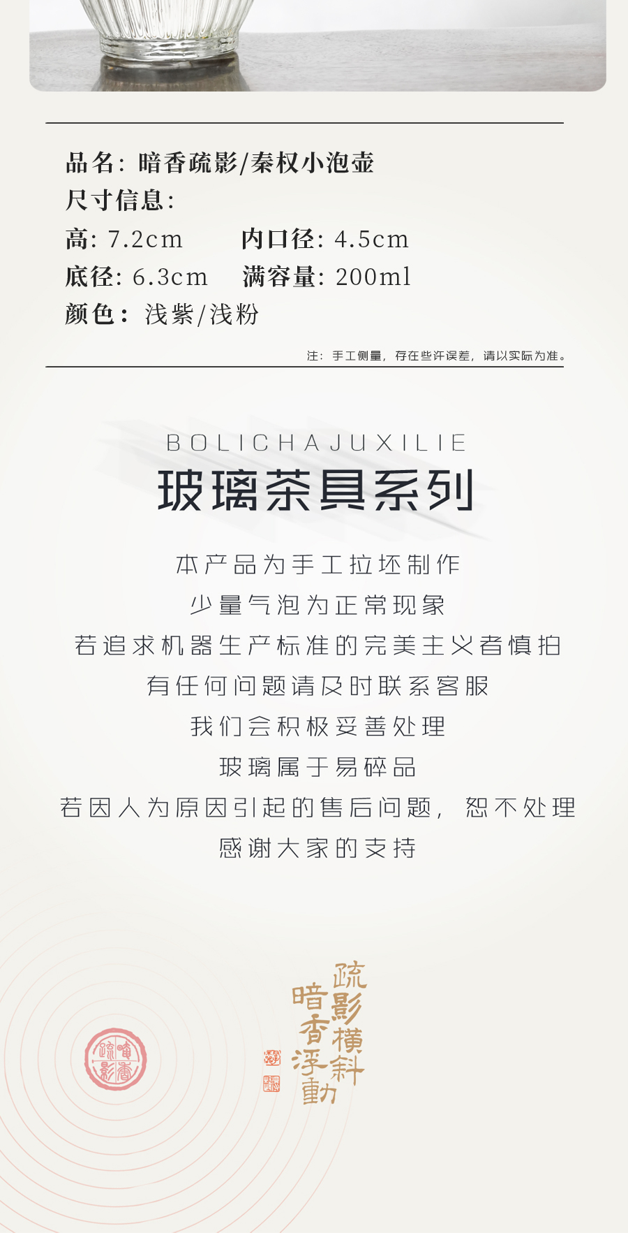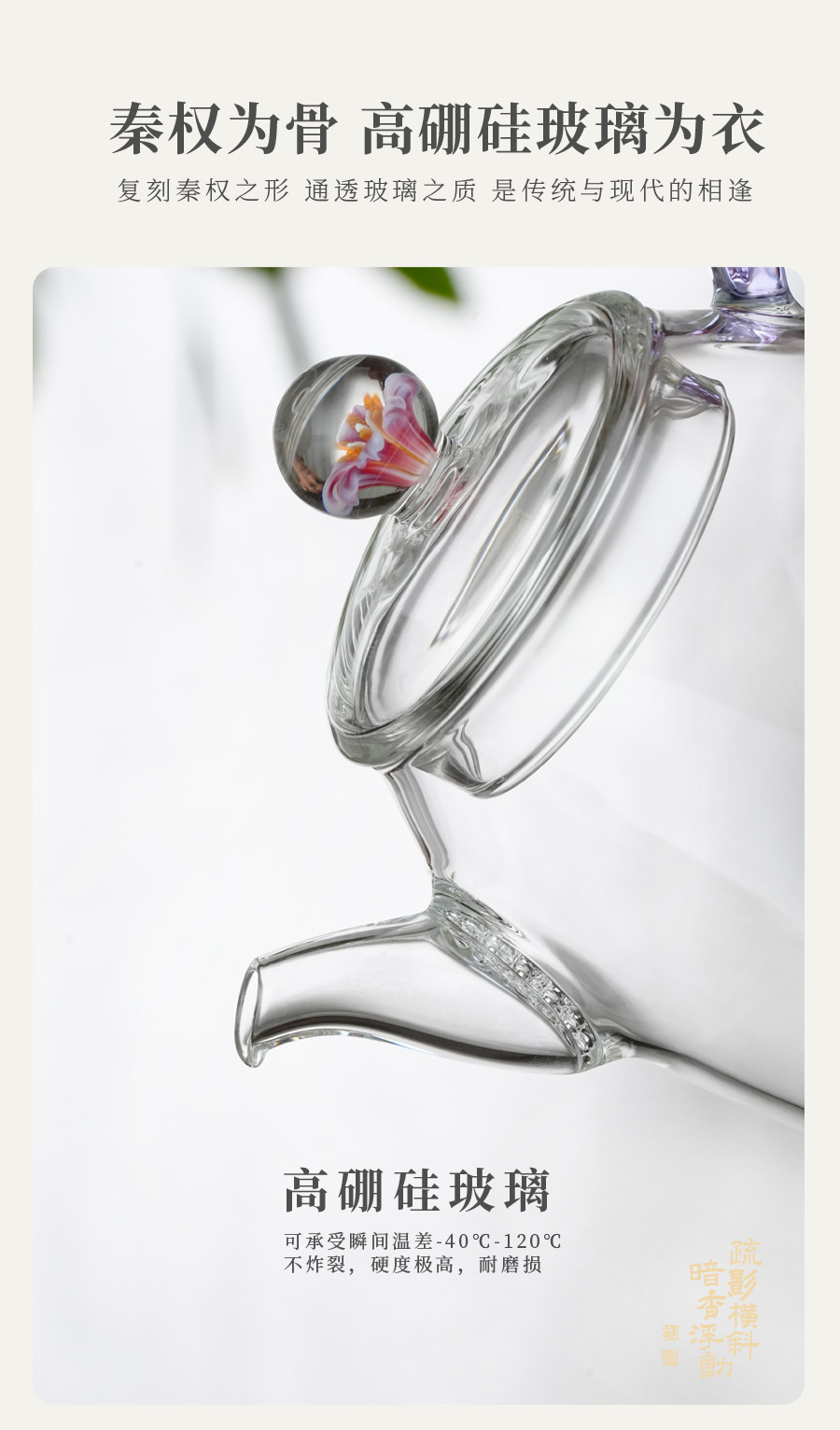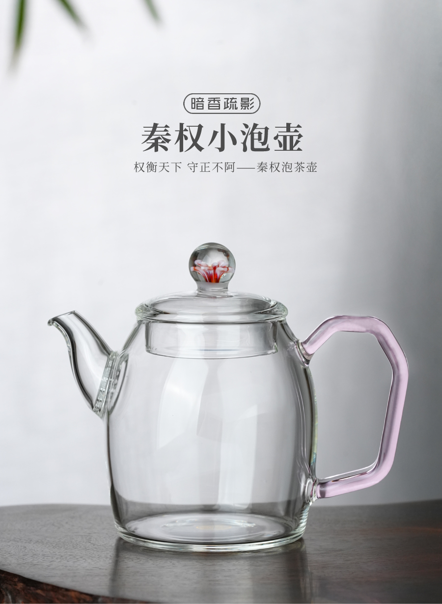 暗香疏影/秦权小泡壶/高硼硅玻璃耐热泡茶壶家用耐高温可煮200ml