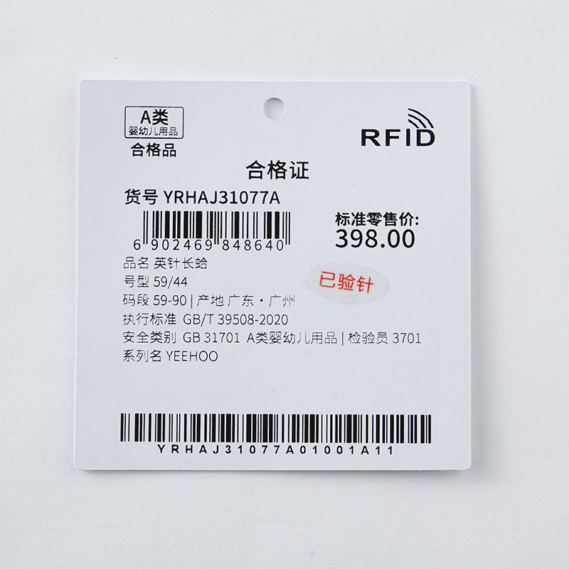 英氏-童衣类(秋)E1英针长蛤英氏白90CM