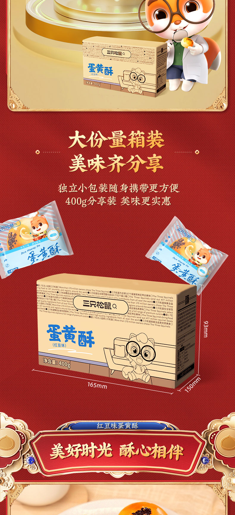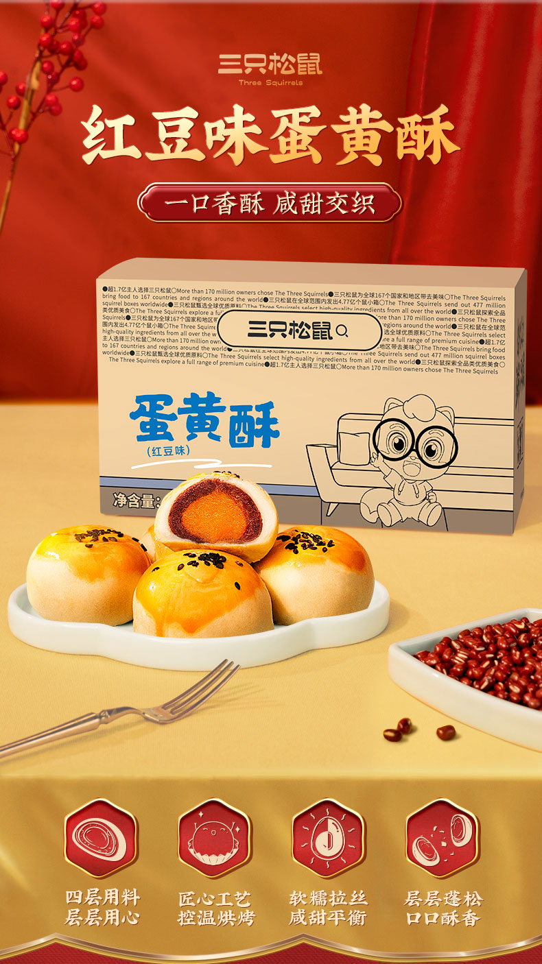 三只松鼠 红豆味蛋黄酥400g/箱 一口香酥 咸甜交织 48小时发货
