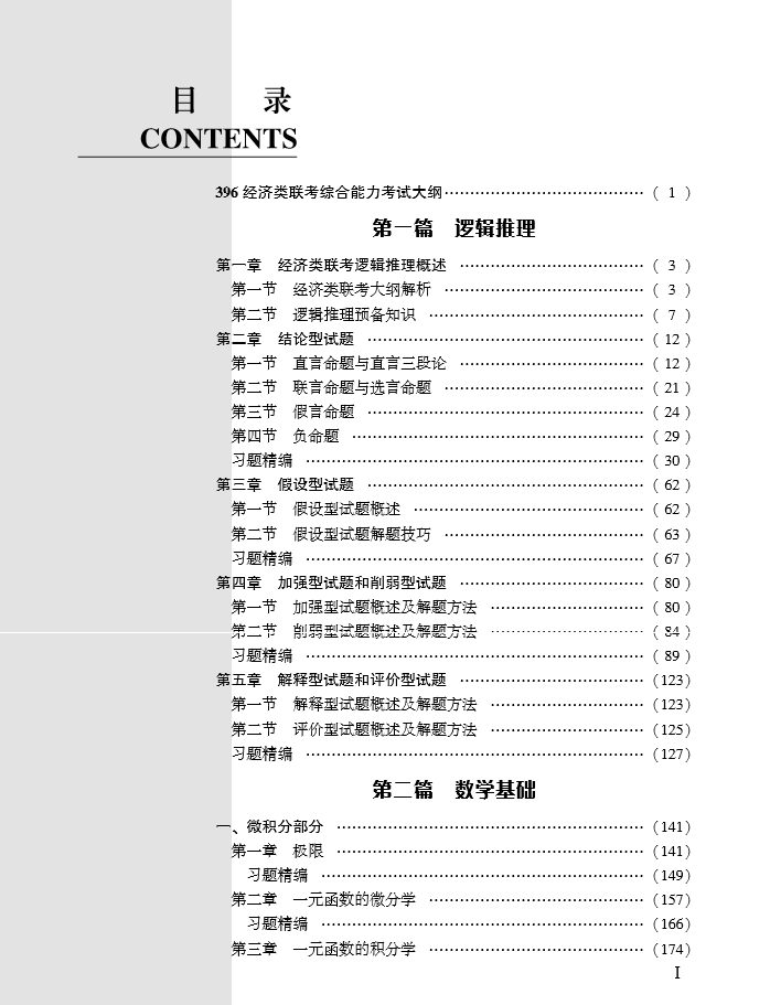 《经济类联考综合能力复习指南》是配合攻读全日制金融硕士、应用统计硕士、税务硕士、国际商务硕士、保险硕士及资产评估硕士研究生入学考试中第三个考试科目396经济类联考综合能力大纲而编写的考试辅导用书,全书按照大纲顺序,分逻辑推理、数学基础与写作三个部分,对大纲的全部考点进行了精讲。在考点精讲中穿插了大量的例题解析与点评,总结命题规律与解题方法。每章后面精编了大量练习题(含考试真题),并提供了参考答案与解析。