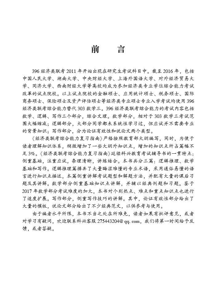 适用对象:参加2018年396经济类联考综合能力的考生,高等院校经济类专业金融、应用统计、税务、国际商务、保险及资产评估等的师生。