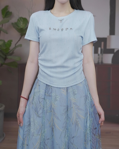 司歌针织弹力收腰短袖夏女T恤T93G1027