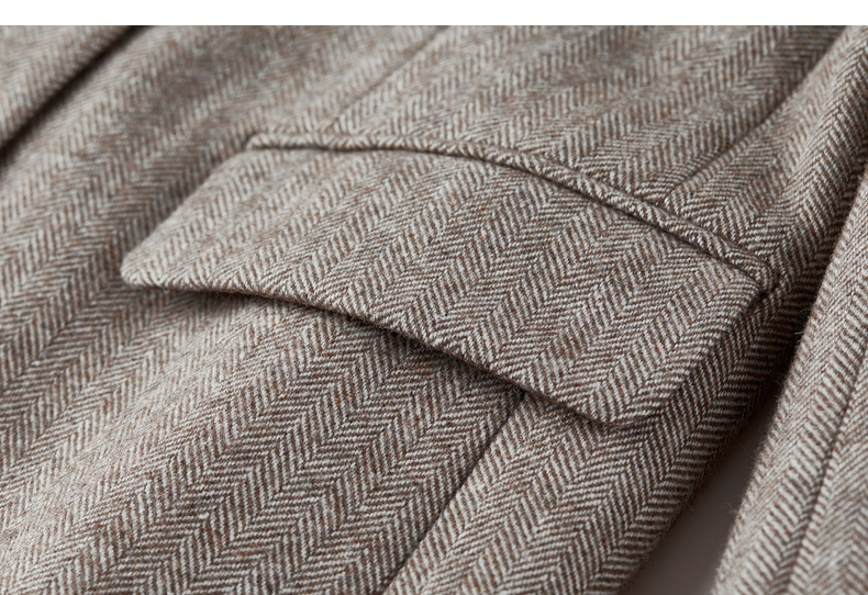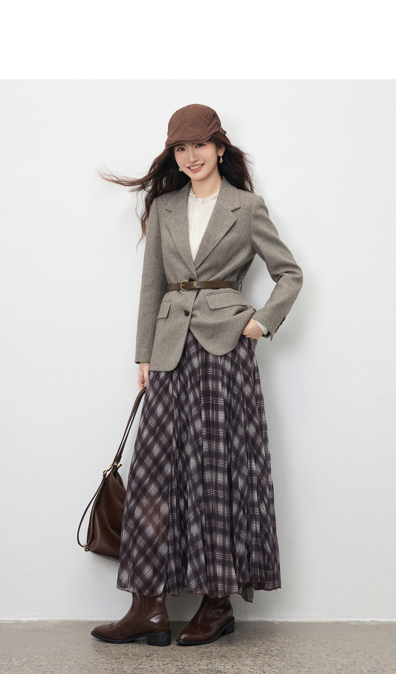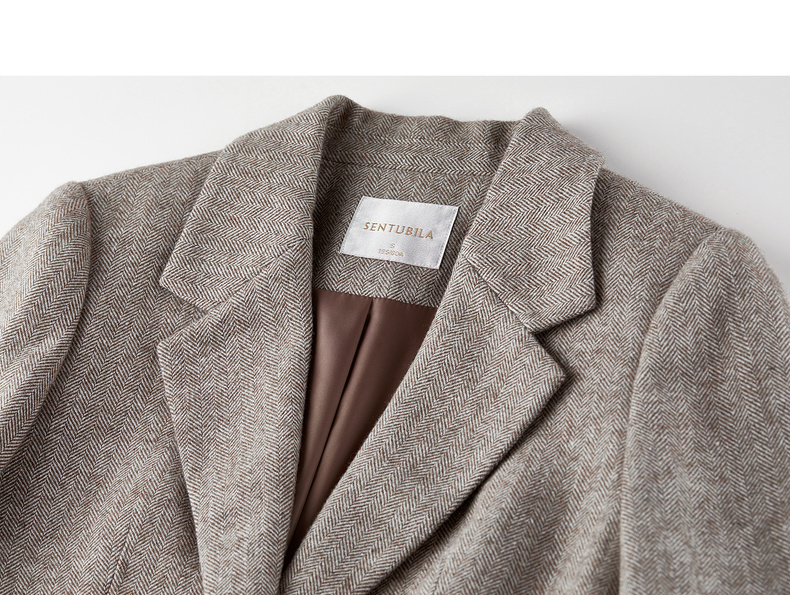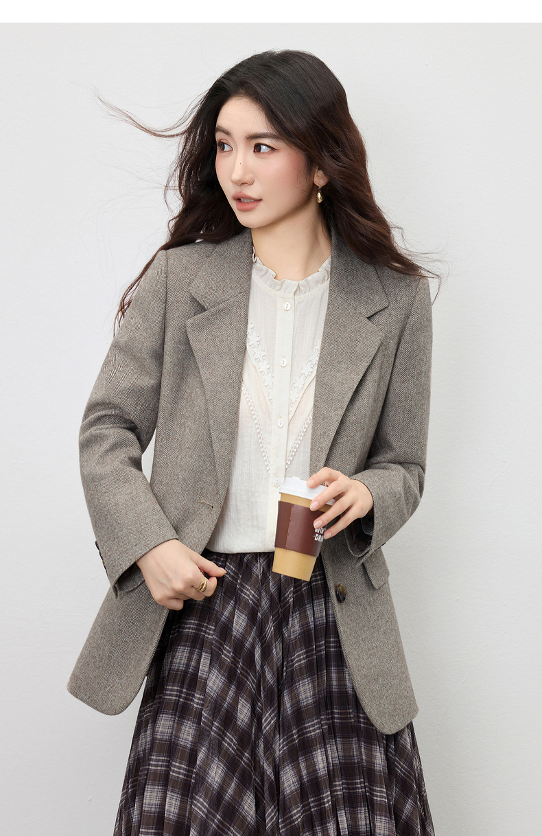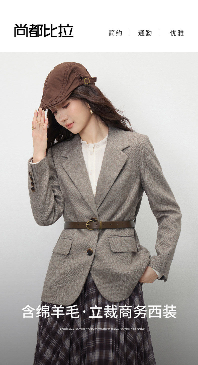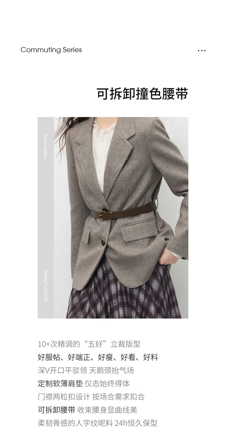 【内购】【含绵羊毛】通勤立裁平驳领两粒扣可拆卸腰带人字纹呢子商务西装-154XA3830
